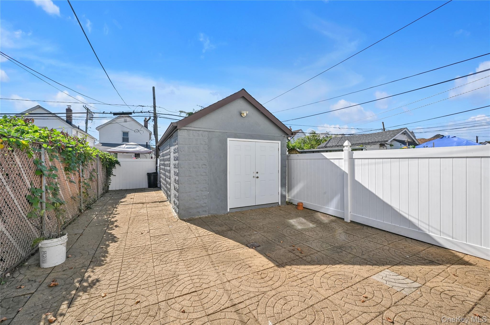 - Fenced backyard featuring a residential view