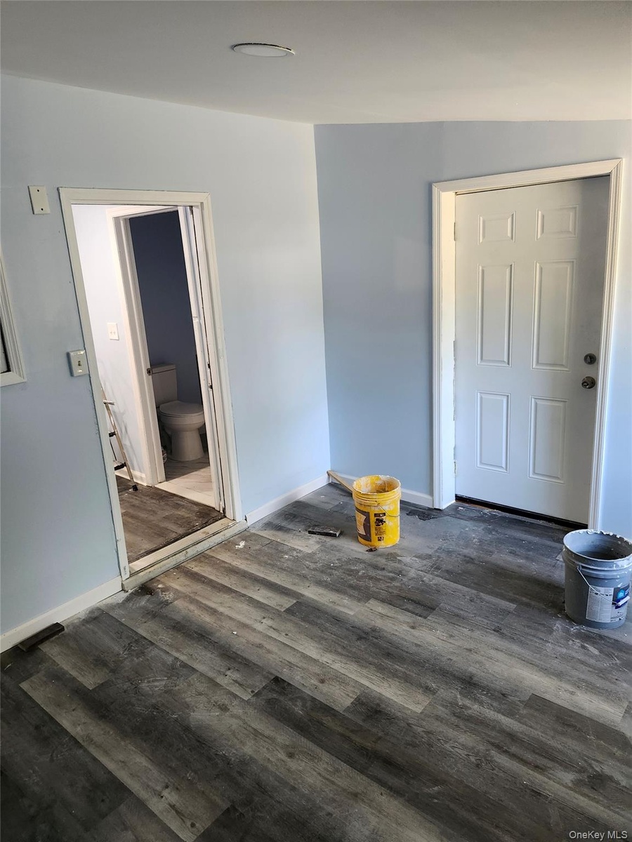 - Unfurnished bedroom with a closet and dark wood-type flooring