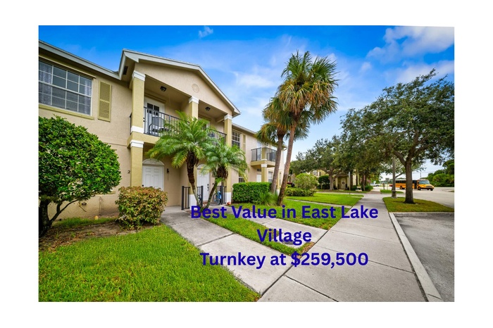DescriptionBest value in East Lake Village! This updated 2BR/2.5BA townhome with 1,350 sq. ft. is priced at $259,500--lower than nearby actives. Features include tile floors on the main level, an eat-in kitchen, private patio, 1-car garage, and upstairs bedrooms with tray ceilings. The primary suite offers a private balcony, and a new roof adds peace of mind. Enjoy sidewalks, community pool, and green spaces, all minutes from shopping, schools, and Treasure Coast beaches. Move-in ready and competitively priced, this is the most affordable turnkey option in the neighborhood!