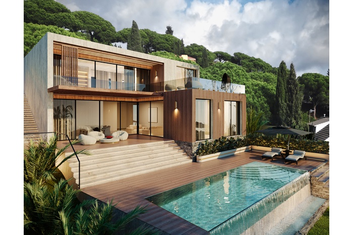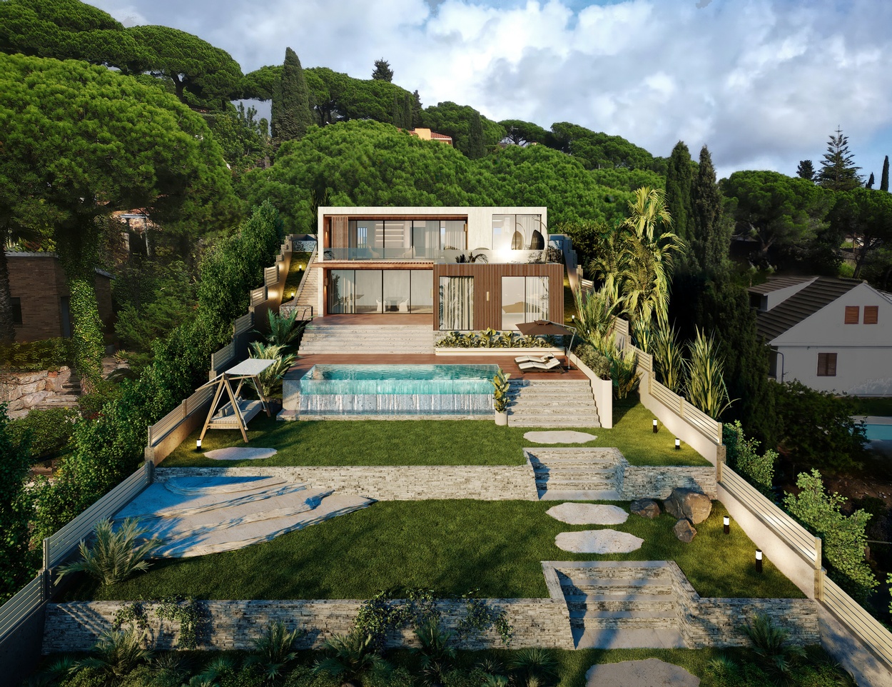 It's just 35 minutes from Barcelona, surrounded by nature and 8 minutes from the beaches, on an exclusive 1,000 m2 plot with sea views.
