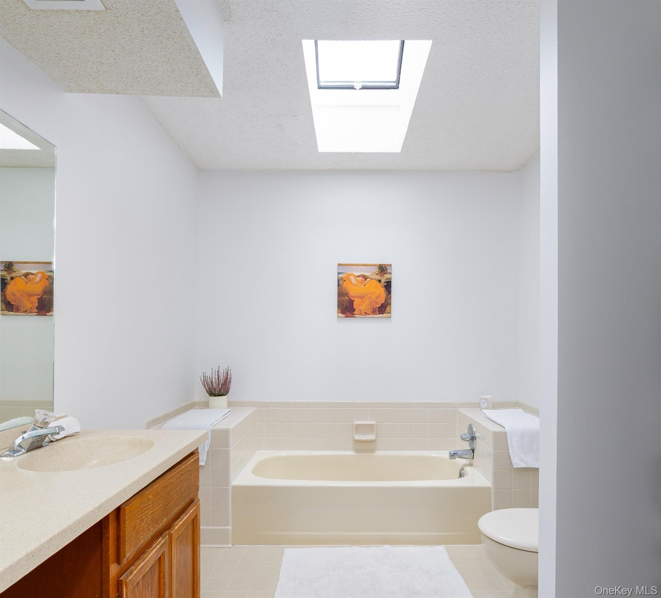 Welcome to 4 Pond Drive West at The Woods, a wonderful community offering a serene lifestyle with immaculately grounds within easy walking distance of the Village of Rhinebeck Village. This freshly painted and refreshed unit offers an eat-in kitchen with original cabinetry and appliances. The living/dining room features a fireplace, tucked away built-in storage, and access to a covered deck with a park-like view. Upstairs, the open den/office/media room leads to a second deck adjacent to a primary bedroom with a generously proportioned, skylit en suite bath with a shower and soaking tub and abundant closet space. The guest bedroom is en suite with a tiled bath. A full sized washer/dryer conveniently located on the second floor makes laundry a breeze. The unit has a generously proportioned attached 1-car garage with storage. Enjoy The Woods landscaped grounds, community clubhouse, pool and tennis courts. The Woods is located a stone's throw from Rhinebeck's farmer's market, shops, galleries, Upstate Films, Starr Library, and the town's many fabulous restaurants. Rhinecliff's Amtrak, Morton Library, and Kips Tavern are only a five minute drive and Bard's Fisher Center and Spiegeltent, featuring outstanding musical performances and theater, are less than fifteen minutes' drive.