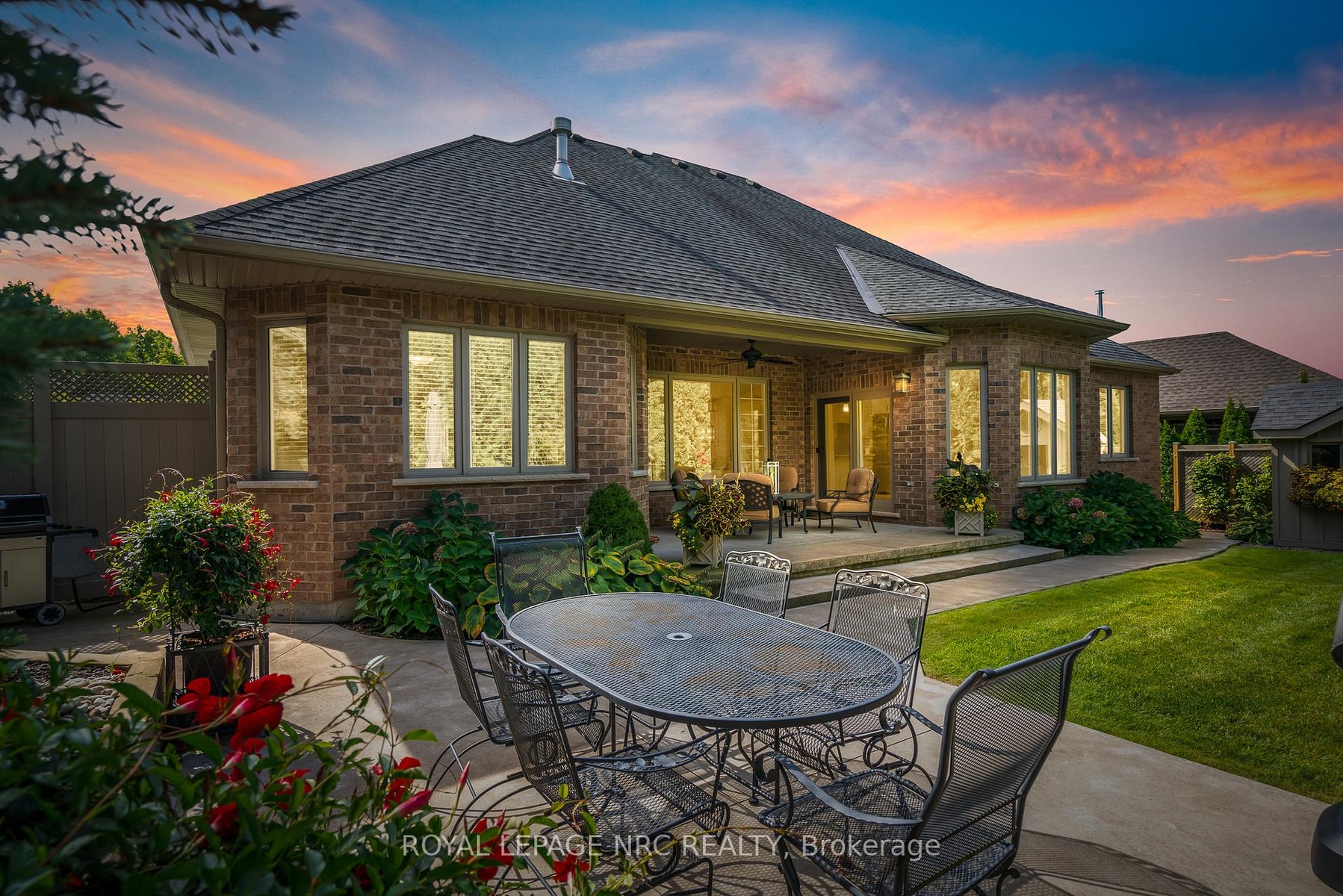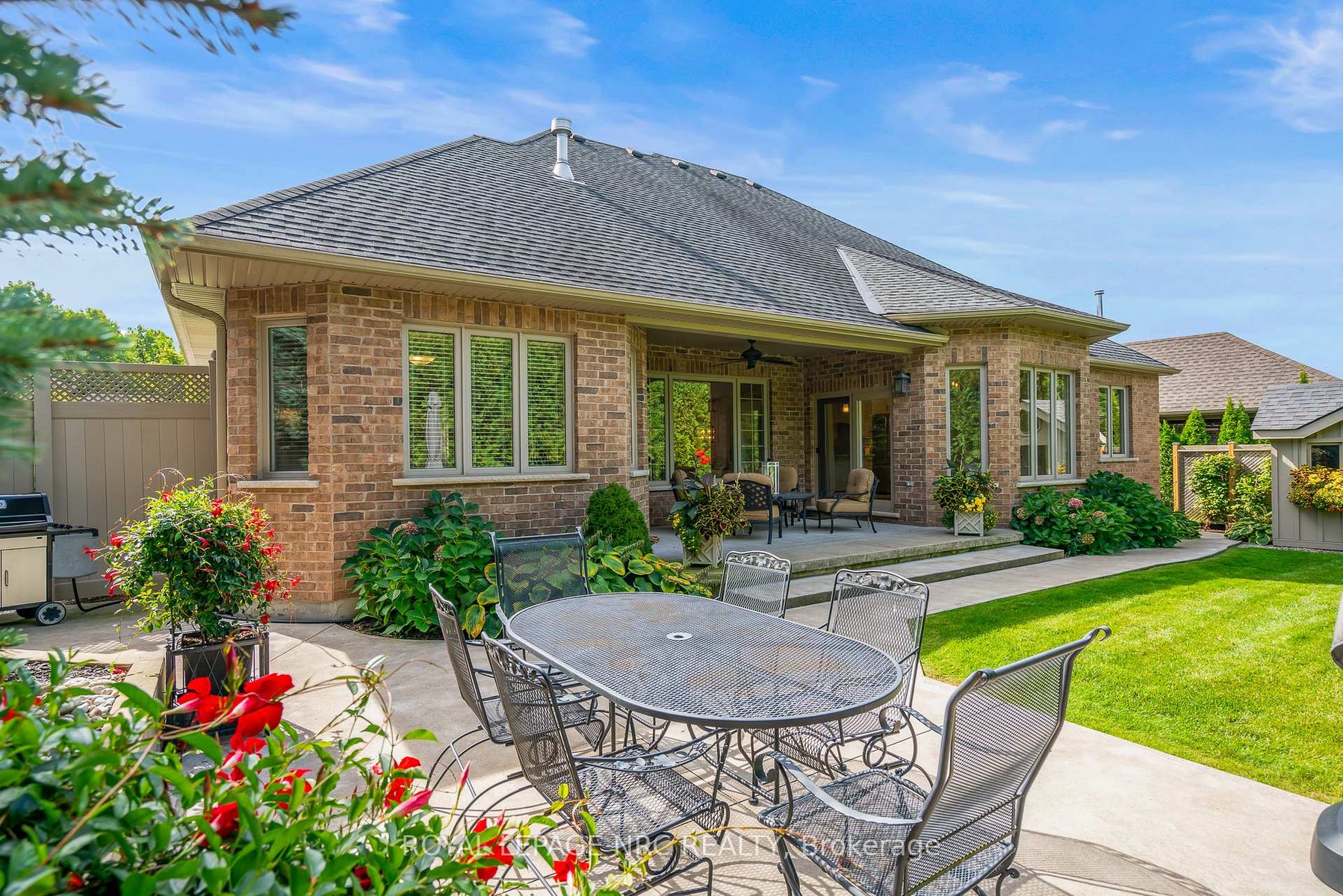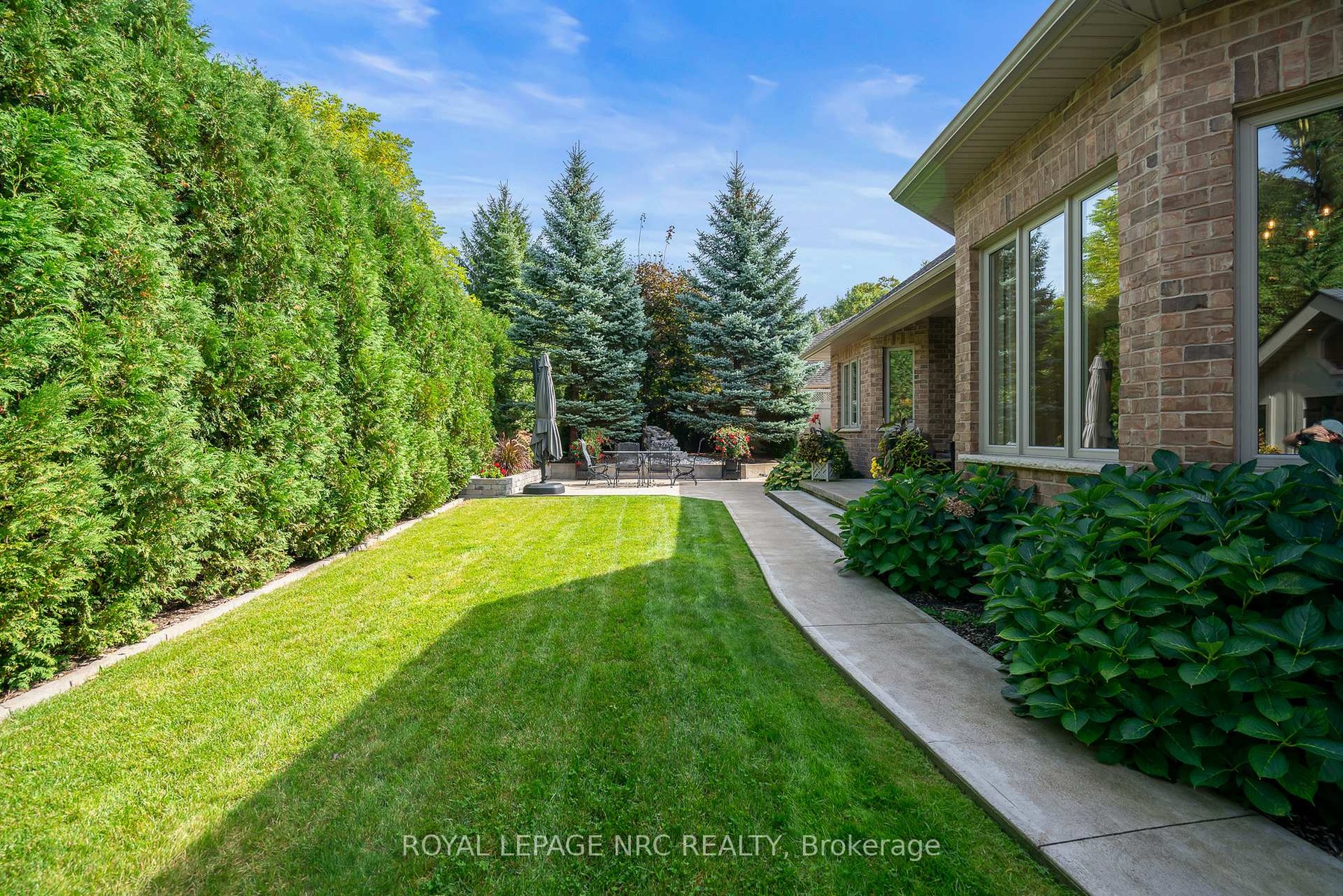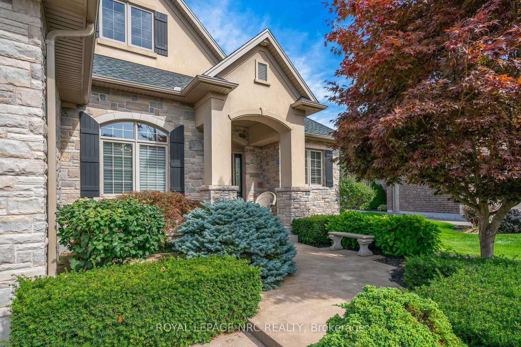 Discover quiet elegance in this custom bungalow, nestled within a cul-de-sac crafted by the award-winning Luchetta Home Builder. This distinguished home is complemented by equally beautiful residences and boasts lush, mature landscaping. An impressive foyer welcomes you into sophisticated living areas, featuring detailed coffered ceilings and masterful carpentry. The formal living room provides a grand setting with a tasteful gas fireplace, maple hardwood flooring, and large windows that fill the space with natural light. The fully equipped kitchen is a sight to behold, complete with built-in Jenn-Air appliances, granite countertops, a stylish coffee bar and a cozy breakfast nook. The primary bedroom suite ideally located at the back of the home offers his-and-hers closets and a tranquil ensuite bathroom, creating a perfect retreat. The lower level is designed for entertainment, featuring a spacious media room enhanced by an oversized Napoleon electric fireplace. You'll also find a large finished area suitable for an exercise room or additional bedroom, a 4-peice bathroom with sauna, ample storage that could easily be integrated in the media room, and a comfortably sized private office. The backyard is an extension of the living space, complete with a covered patio and thoughfully planned landscaping, creating an ideal backdrop for indoor/outdoor living and stylish entertaining. Brondi's Lane offers the convenience of being within walking distance of the charming downtown village of Fonthill, where you can enjoy shops, restaurants, and weekly farmers market that features live music throughout the summer. For golf enthusiasts, the home is just minutes away from Lookout Point Golf & Country Club/Penn Lakes Golf Course. This home has been designed with wonderful views, beauty and warmth, and we would be delighted to share it with you.