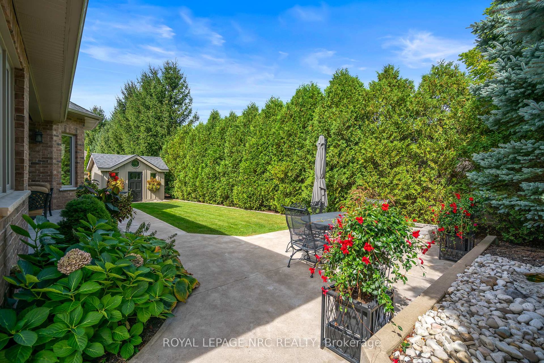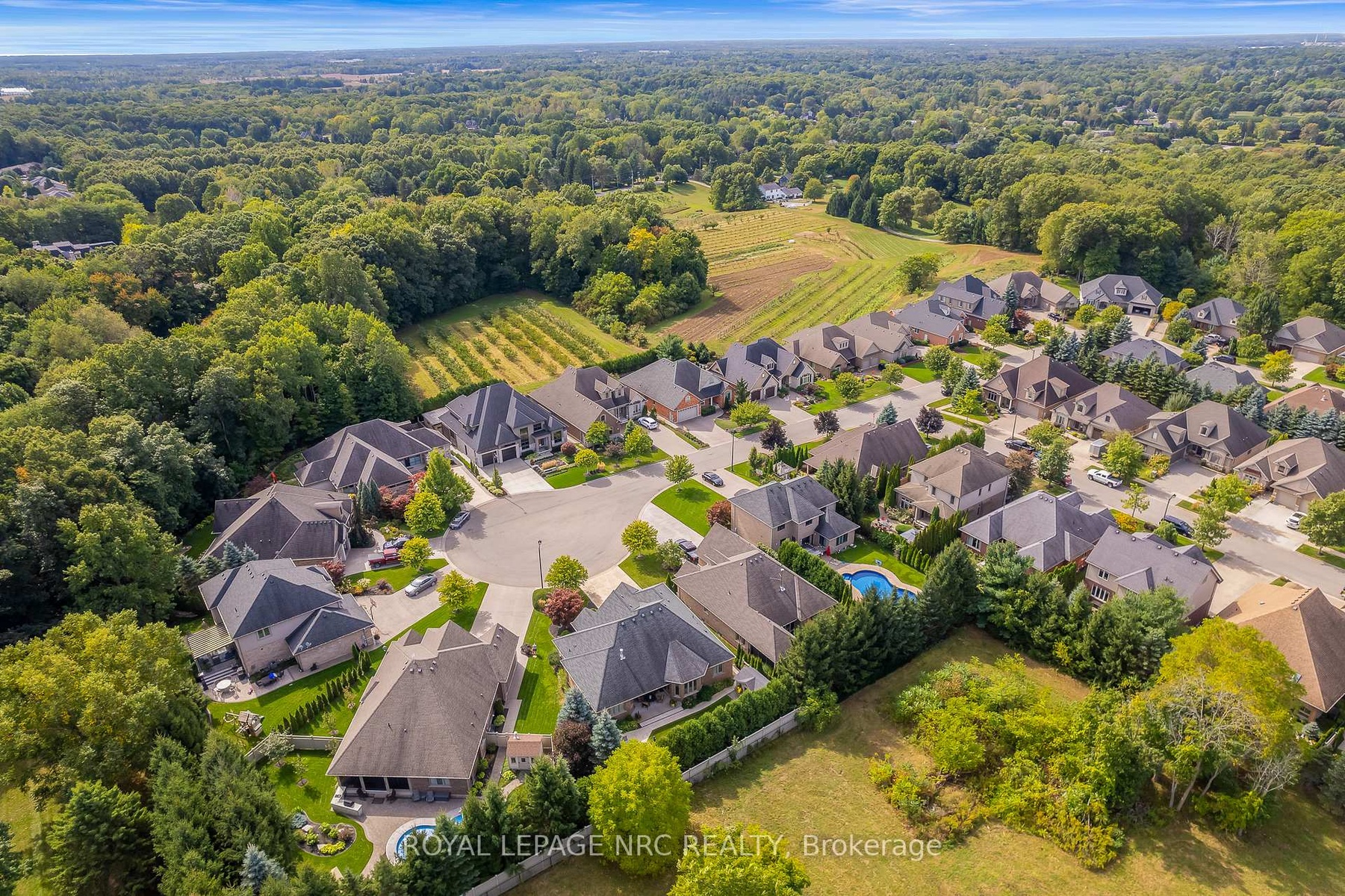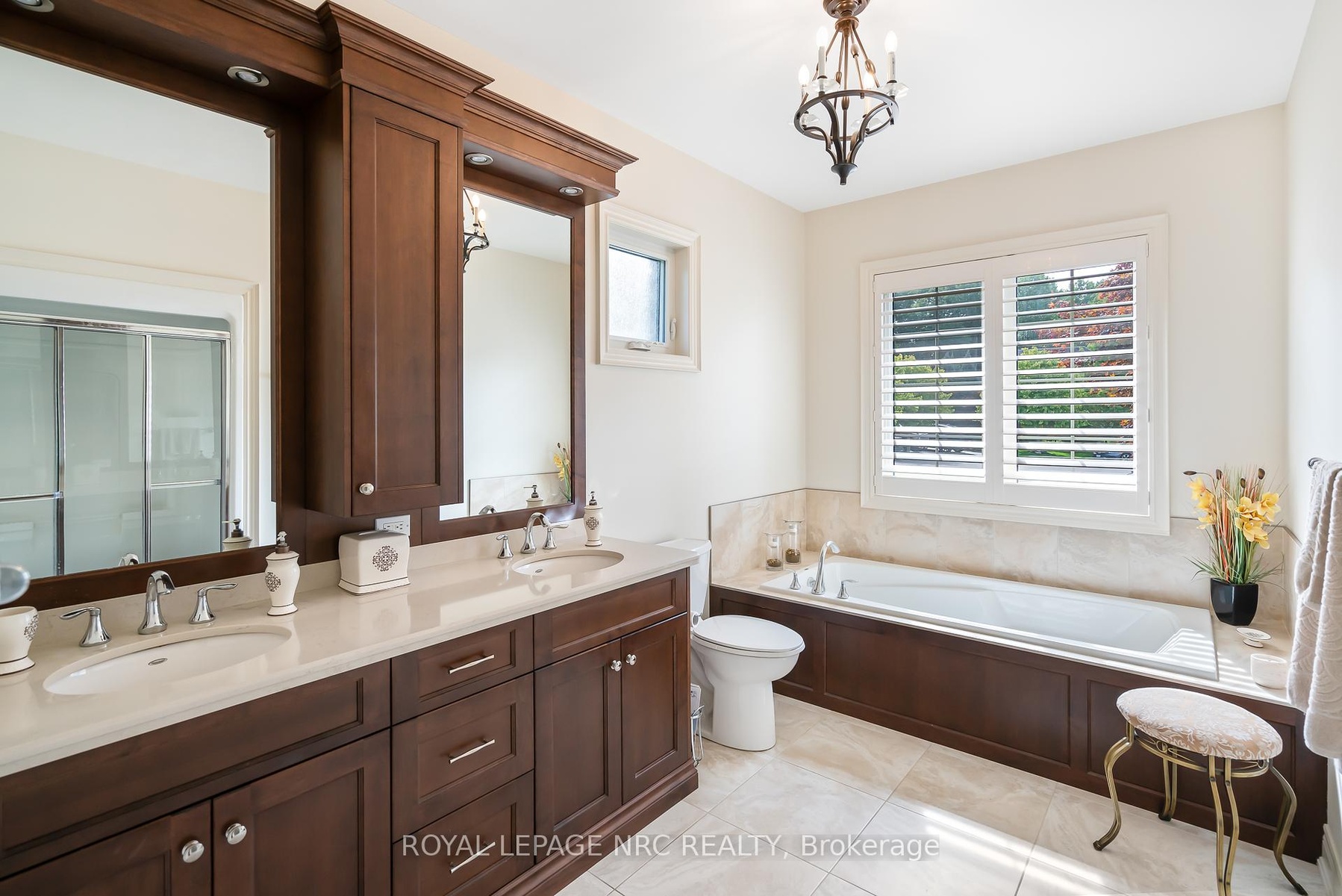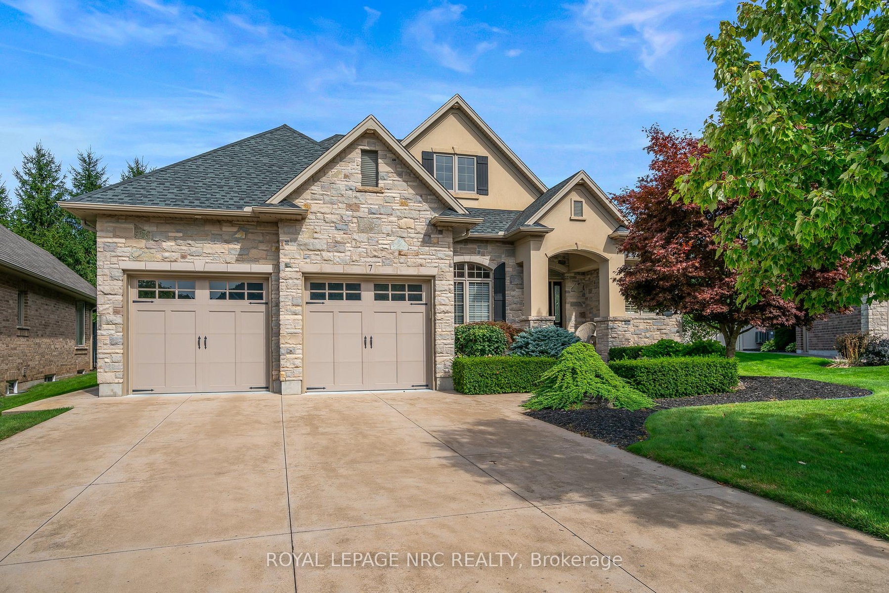 Discover quiet elegance in this custom bungalow, nestled within a cul-de-sac crafted by the award-winning Luchetta Home Builder. This distinguished home is complemented by equally beautiful residences and boasts lush, mature landscaping. An impressive foyer welcomes you into sophisticated living areas, featuring detailed coffered ceilings and masterful carpentry. The formal living room provides a grand setting with a tasteful gas fireplace, maple hardwood flooring, and large windows that fill the space with natural light. The fully equipped kitchen is a sight to behold, complete with built-in Jenn-Air appliances, granite countertops, a stylish coffee bar and a cozy breakfast nook. The primary bedroom suite ideally located at the back of the home offers his-and-hers closets and a tranquil ensuite bathroom, creating a perfect retreat. The lower level is designed for entertainment, featuring a spacious media room enhanced by an oversized Napoleon electric fireplace. You'll also find a large finished area suitable for an exercise room or additional bedroom, a 4-peice bathroom with sauna, ample storage that could easily be integrated in the media room, and a comfortably sized private office. The backyard is an extension of the living space, complete with a covered patio and thoughfully planned landscaping, creating an ideal backdrop for indoor/outdoor living and stylish entertaining. Brondi's Lane offers the convenience of being within walking distance of the charming downtown village of Fonthill, where you can enjoy shops, restaurants, and weekly farmers market that features live music throughout the summer. For golf enthusiasts, the home is just minutes away from Lookout Point Golf & Country Club/Penn Lakes Golf Course. This home has been designed with wonderful views, beauty and warmth, and we would be delighted to share it with you.