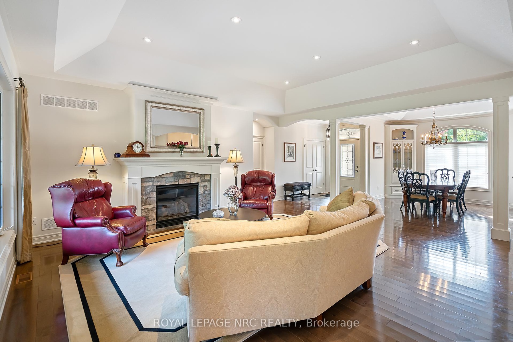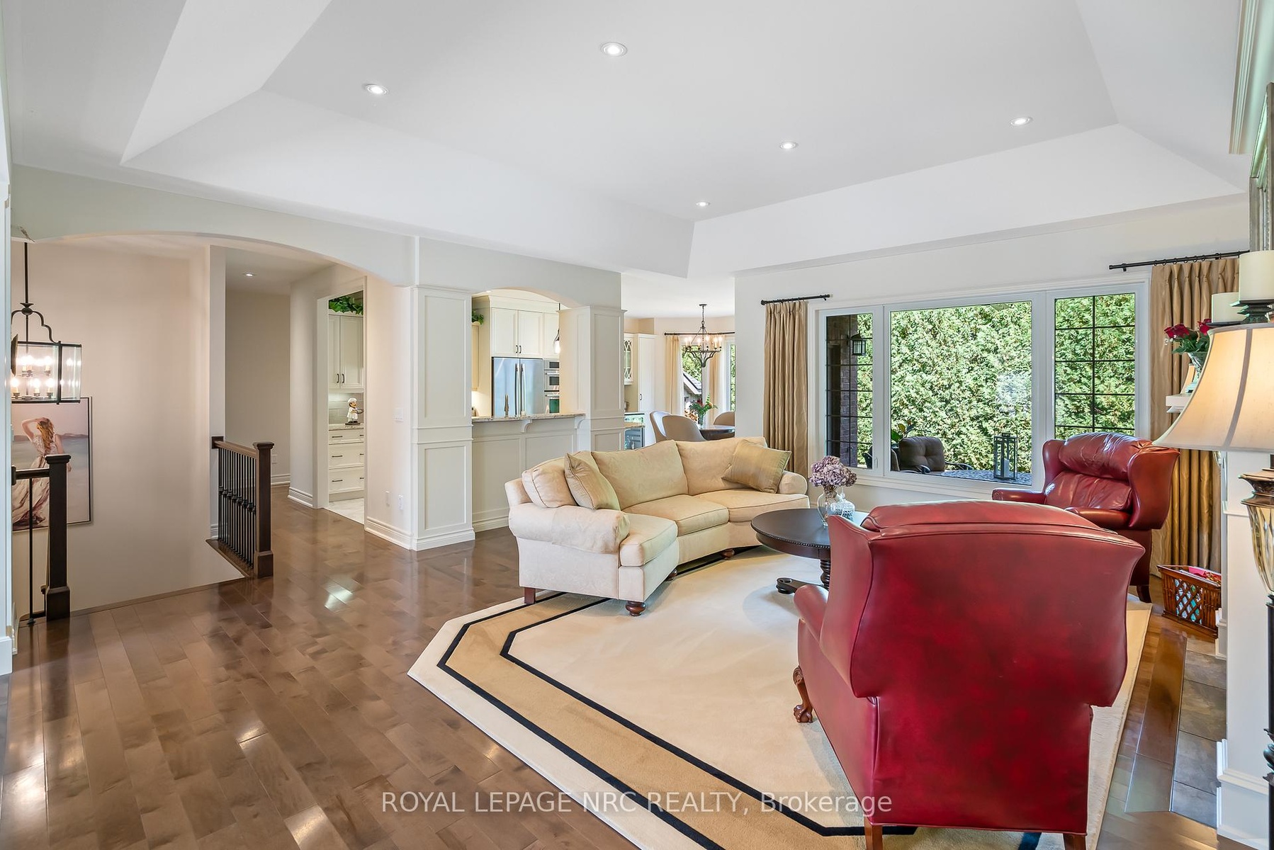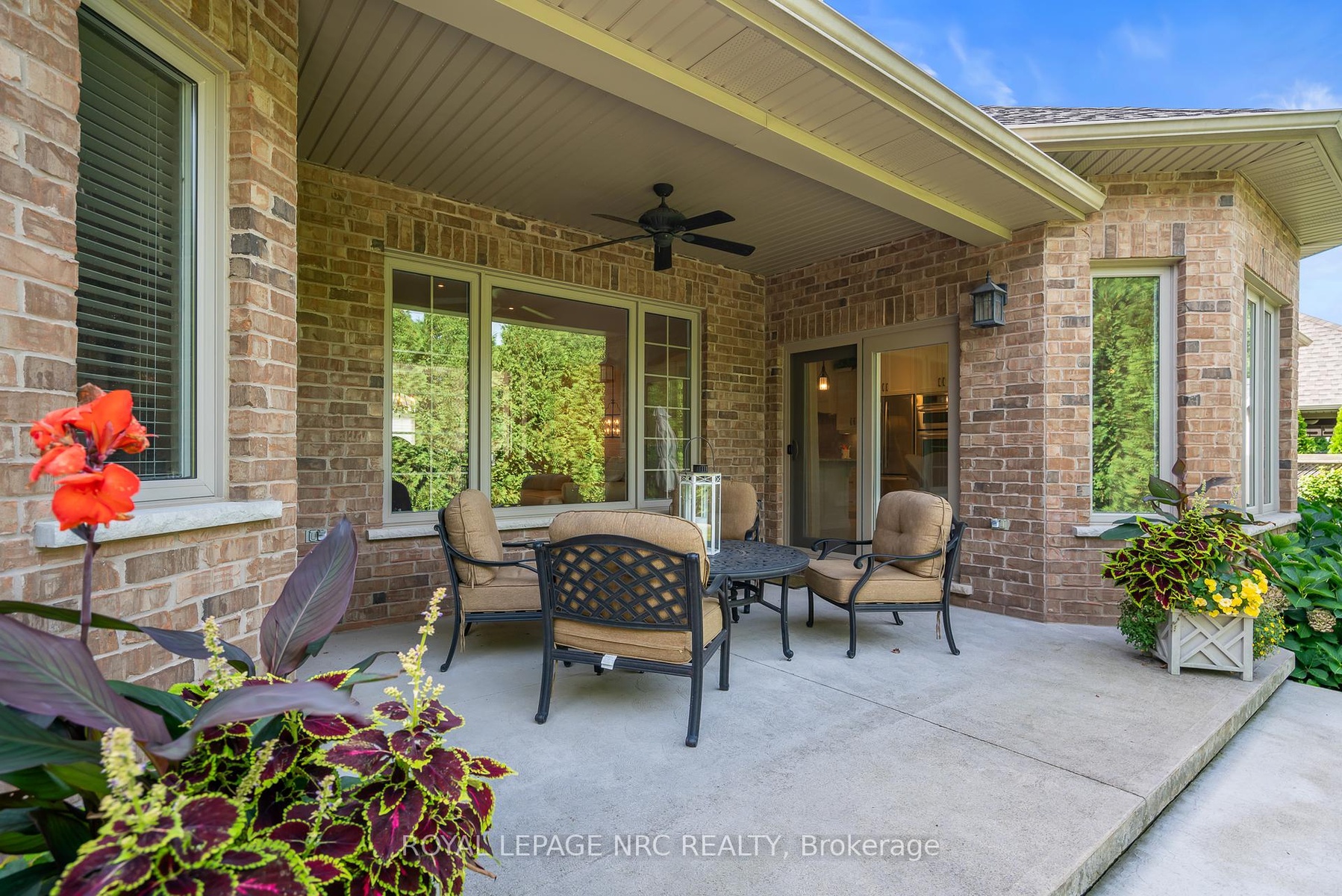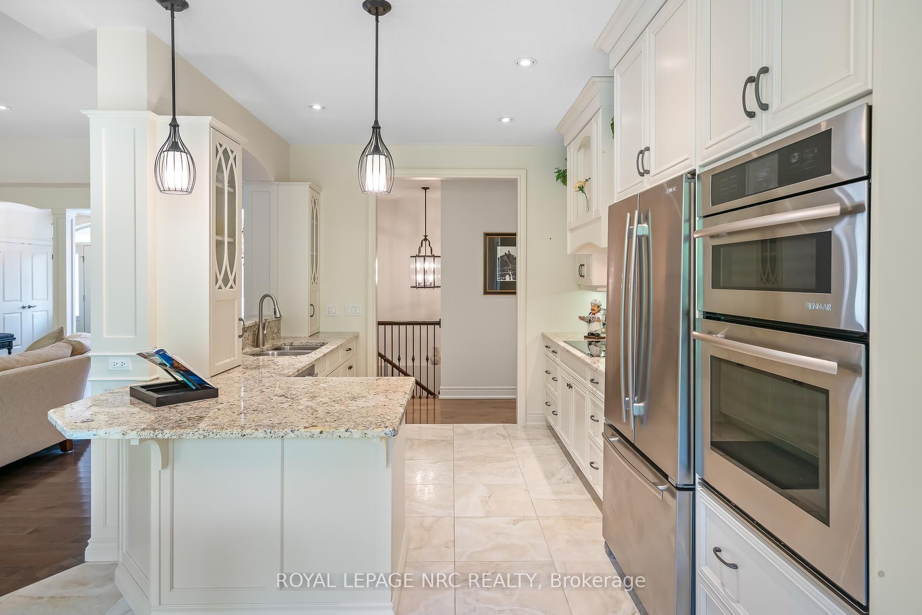 Discover quiet elegance in this custom bungalow, nestled within a cul-de-sac crafted by the award-winning Luchetta Home Builder. This distinguished home is complemented by equally beautiful residences and boasts lush, mature landscaping. An impressive foyer welcomes you into sophisticated living areas, featuring detailed coffered ceilings and masterful carpentry. The formal living room provides a grand setting with a tasteful gas fireplace, maple hardwood flooring, and large windows that fill the space with natural light. The fully equipped kitchen is a sight to behold, complete with built-in Jenn-Air appliances, granite countertops, a stylish coffee bar and a cozy breakfast nook. The primary bedroom suite ideally located at the back of the home offers his-and-hers closets and a tranquil ensuite bathroom, creating a perfect retreat. The lower level is designed for entertainment, featuring a spacious media room enhanced by an oversized Napoleon electric fireplace. You'll also find a large finished area suitable for an exercise room or additional bedroom, a 4-peice bathroom with sauna, ample storage that could easily be integrated in the media room, and a comfortably sized private office. The backyard is an extension of the living space, complete with a covered patio and thoughfully planned landscaping, creating an ideal backdrop for indoor/outdoor living and stylish entertaining. Brondi's Lane offers the convenience of being within walking distance of the charming downtown village of Fonthill, where you can enjoy shops, restaurants, and weekly farmers market that features live music throughout the summer. For golf enthusiasts, the home is just minutes away from Lookout Point Golf & Country Club/Penn Lakes Golf Course. This home has been designed with wonderful views, beauty and warmth, and we would be delighted to share it with you.