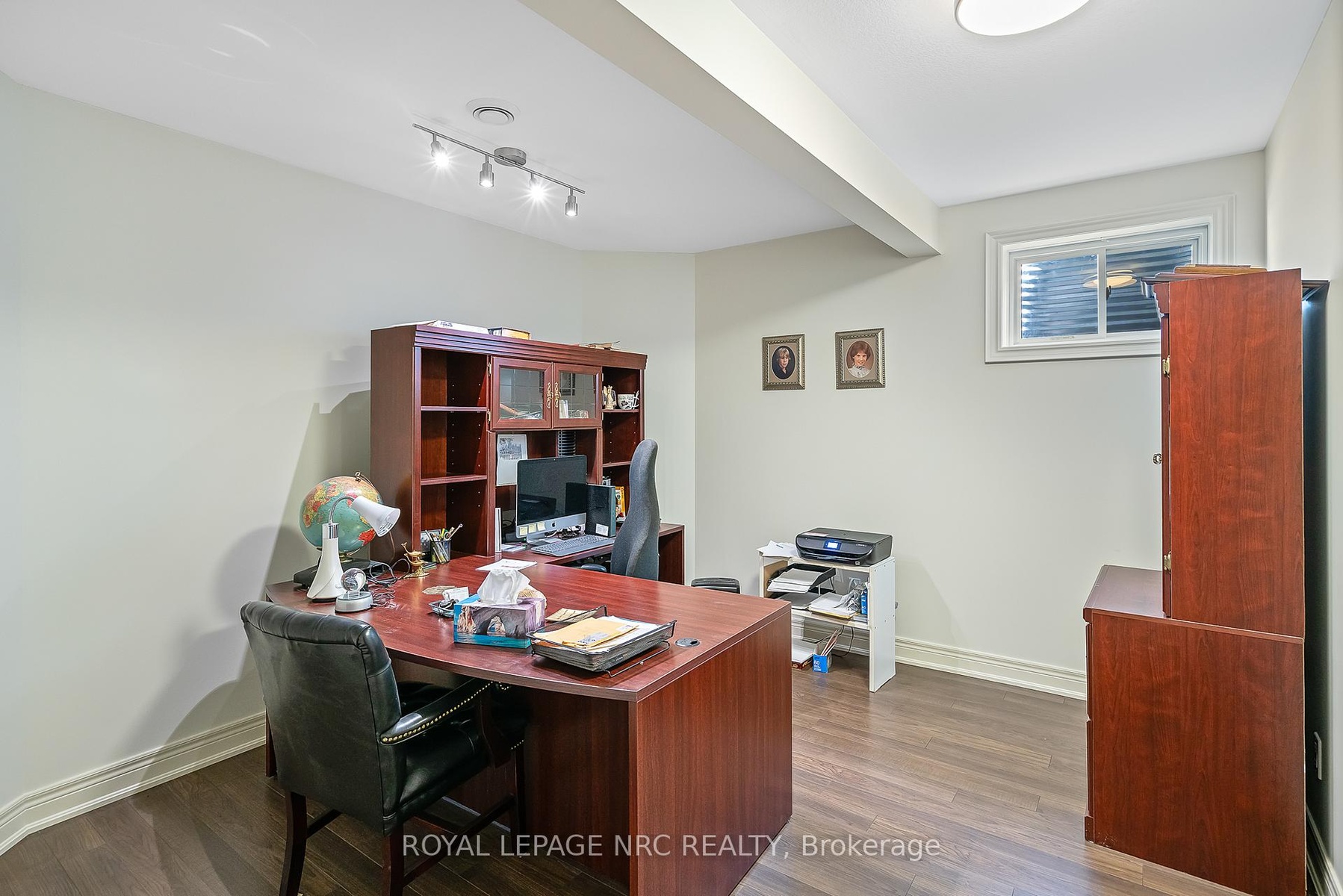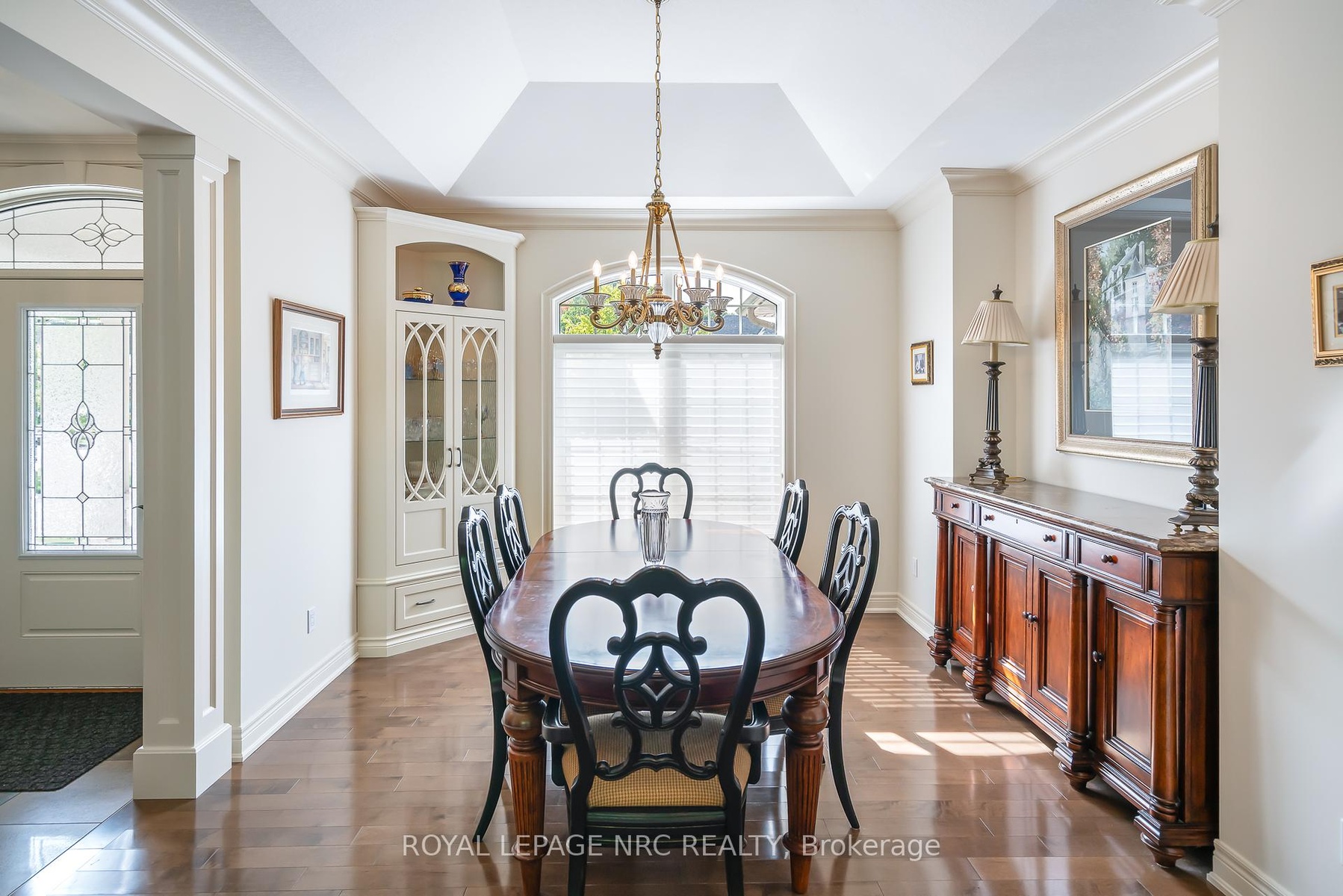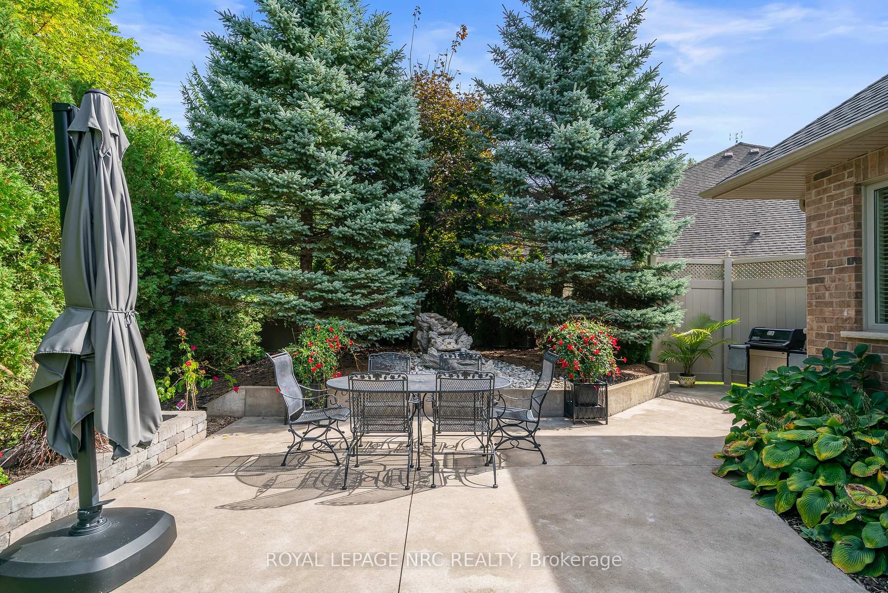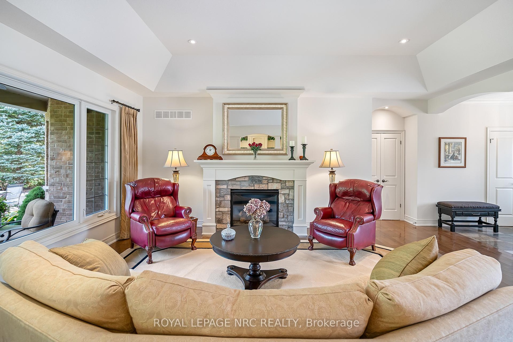 Discover quiet elegance in this custom bungalow, nestled within a cul-de-sac crafted by the award-winning Luchetta Home Builder. This distinguished home is complemented by equally beautiful residences and boasts lush, mature landscaping. An impressive foyer welcomes you into sophisticated living areas, featuring detailed coffered ceilings and masterful carpentry. The formal living room provides a grand setting with a tasteful gas fireplace, maple hardwood flooring, and large windows that fill the space with natural light. The fully equipped kitchen is a sight to behold, complete with built-in Jenn-Air appliances, granite countertops, a stylish coffee bar and a cozy breakfast nook. The primary bedroom suite ideally located at the back of the home offers his-and-hers closets and a tranquil ensuite bathroom, creating a perfect retreat. The lower level is designed for entertainment, featuring a spacious media room enhanced by an oversized Napoleon electric fireplace. You'll also find a large finished area suitable for an exercise room or additional bedroom, a 4-peice bathroom with sauna, ample storage that could easily be integrated in the media room, and a comfortably sized private office. The backyard is an extension of the living space, complete with a covered patio and thoughfully planned landscaping, creating an ideal backdrop for indoor/outdoor living and stylish entertaining. Brondi's Lane offers the convenience of being within walking distance of the charming downtown village of Fonthill, where you can enjoy shops, restaurants, and weekly farmers market that features live music throughout the summer. For golf enthusiasts, the home is just minutes away from Lookout Point Golf & Country Club/Penn Lakes Golf Course. This home has been designed with wonderful views, beauty and warmth, and we would be delighted to share it with you.