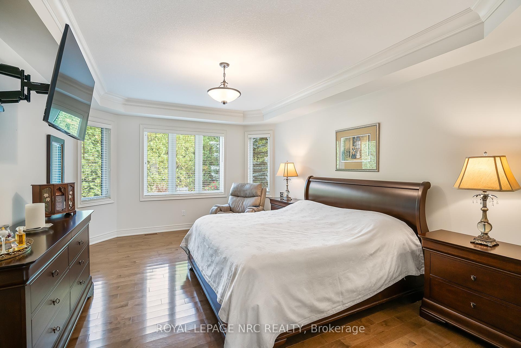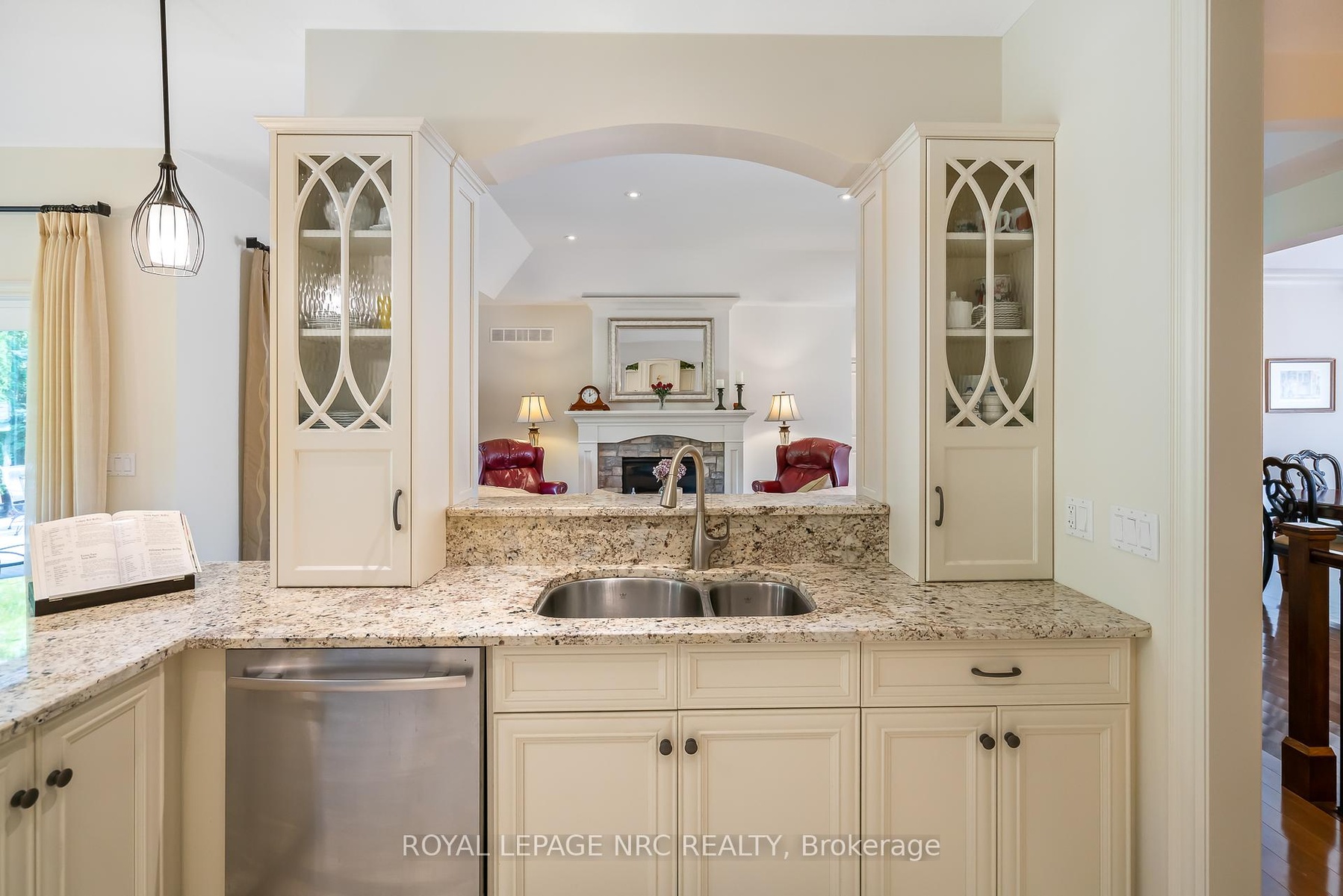 DescriptionDiscover quiet elegance in this custom bungalow, nestled within a cul-de-sac crafted by the award-winning Luchetta Home Builder. This distinguished home is complemented by equally beautiful residences and boasts lush, mature landscaping. An impressive foyer welcomes you into sophisticated living areas, featuring detailed coffered ceilings and masterful carpentry. The formal living room provides a grand setting with a tasteful gas fireplace, maple hardwood flooring, and large windows that fill the space with natural light. The fully equipped kitchen is a sight to behold, complete with built-in Jenn-Air appliances, granite countertops, a stylish coffee bar and a cozy breakfast nook. The primary bedroom suite ideally located at the back of the home offers his-and-hers closets and a tranquil ensuite bathroom, creating a perfect retreat. The lower level is designed for entertainment, featuring a spacious media room enhanced by an oversized Napoleon electric fireplace. You'll also find a large finished area suitable for an exercise room or additional bedroom, a 4-peice bathroom with sauna, ample storage that could easily be integrated in the media room, and a comfortably sized private office. The backyard is an extension of the living space, complete with a covered patio and thoughfully planned landscaping, creating an ideal backdrop for indoor/outdoor living and stylish entertaining. Brondi's Lane offers the convenience of being within walking distance of the charming downtown village of Fonthill, where you can enjoy shops, restaurants, and weekly farmers market that features live music throughout the summer. For golf enthusiasts, the home is just minutes away from Lookout Point Golf & Country Club/Penn Lakes Golf Course. This home has been designed with wonderful views, beauty and warmth, and we would be delighted to share it with you.Virtual Tour: brondi.mp4Amenities- Auto Garage Door Remote