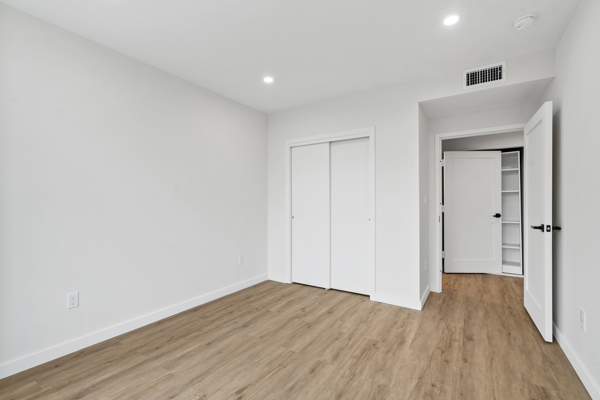 Each home at Broadway Haus is a study in thoughtful detail and contemporary comfort. Wide plank vinyl flooring runs throughout, setting a warm, natural tone. Recessed LED lighting casts a soft, sophisticated glow, while sleek white quartz countertops and GE stainless steel appliances — including in-unit washer and dryer — bring ease and elegance to daily routines. Mitsubishi heating and cooling systems ensure personalized climate control all year long, and spacious closets offer smart, seamless storage.