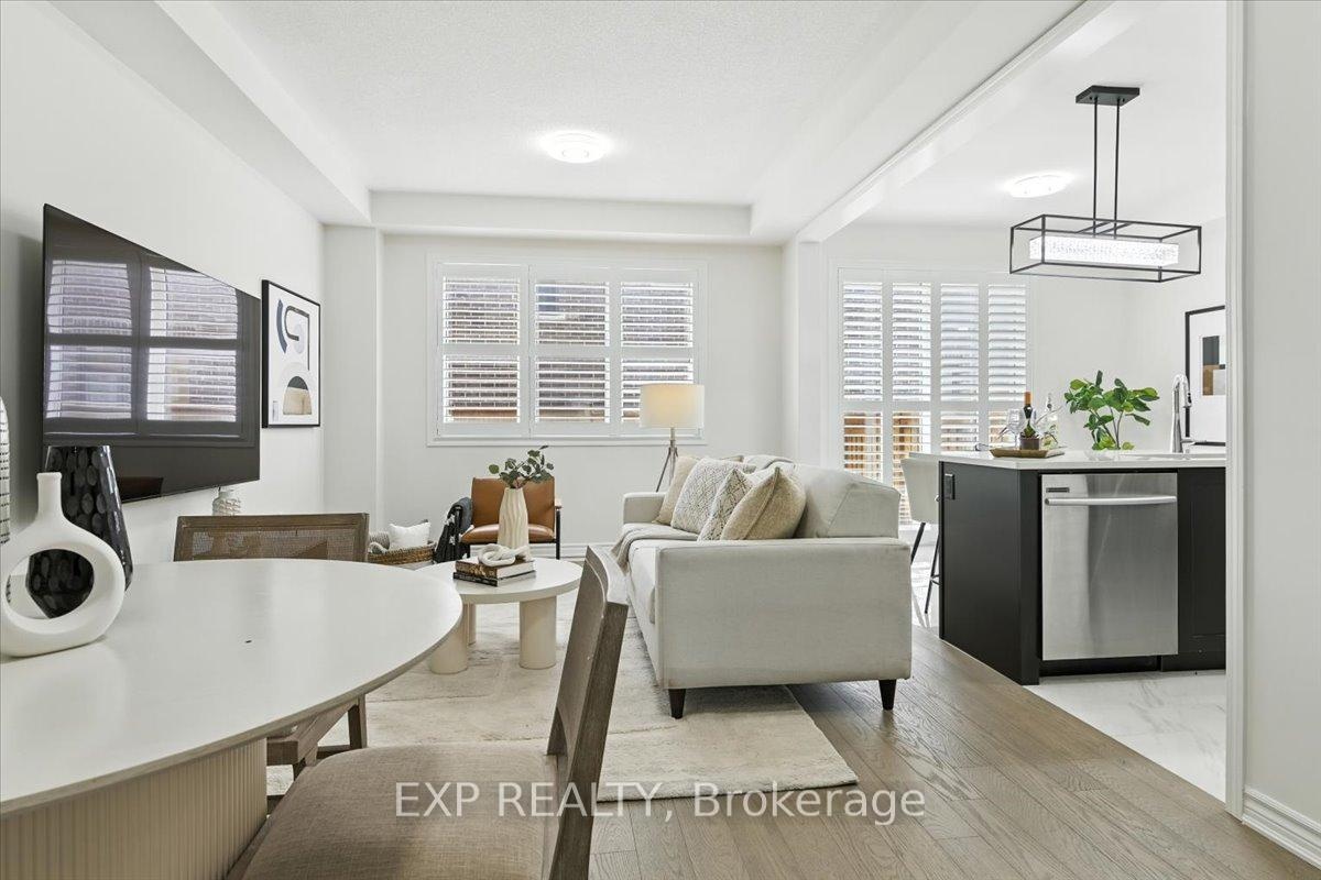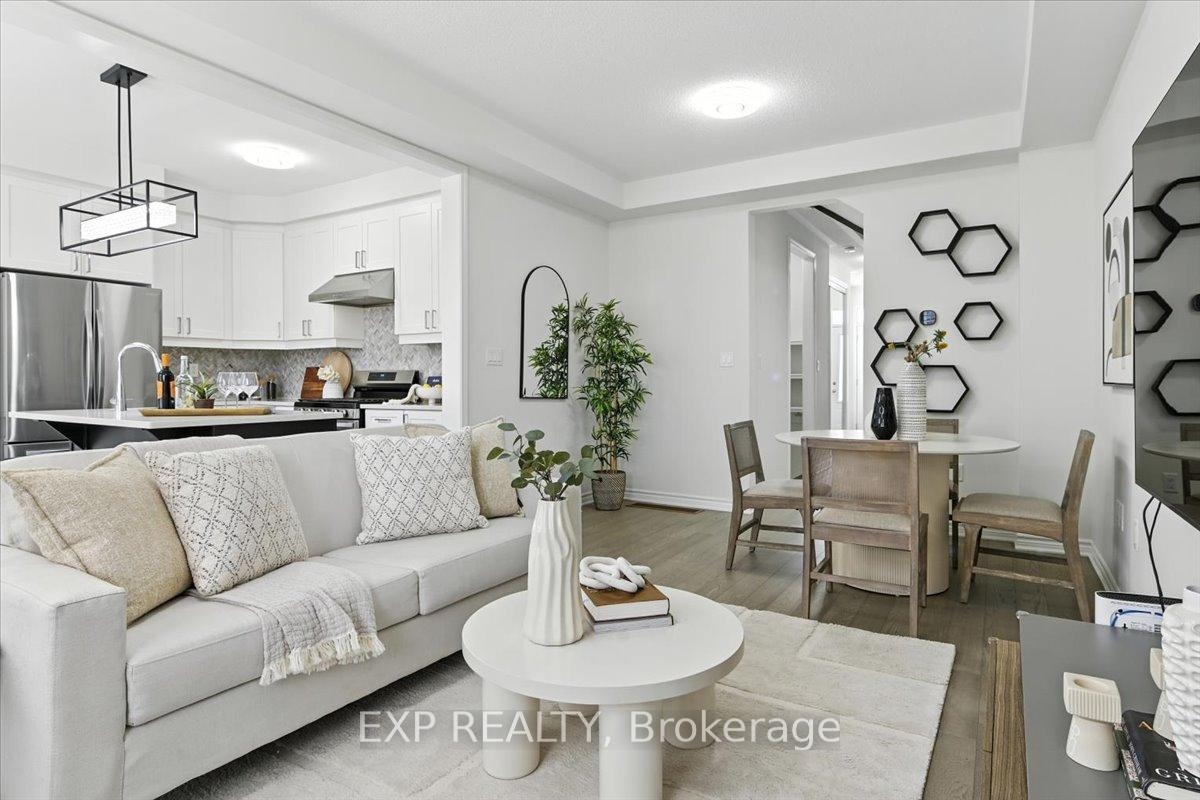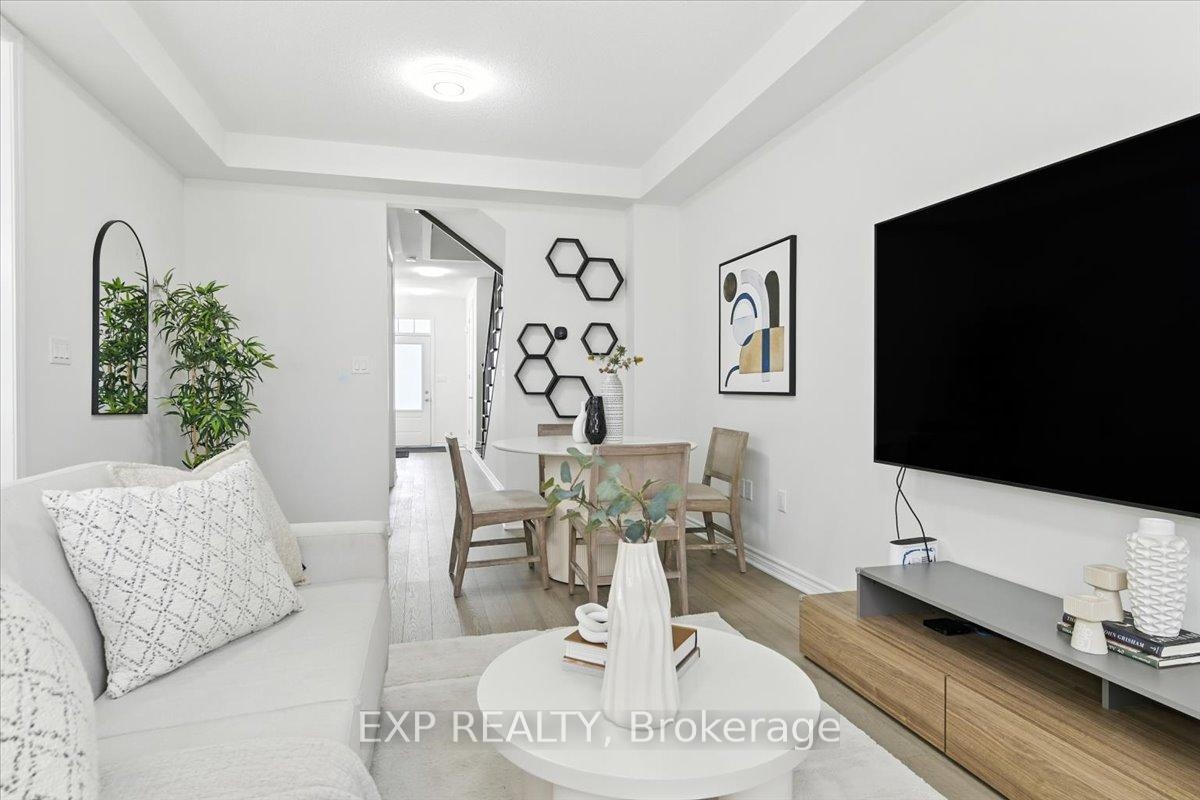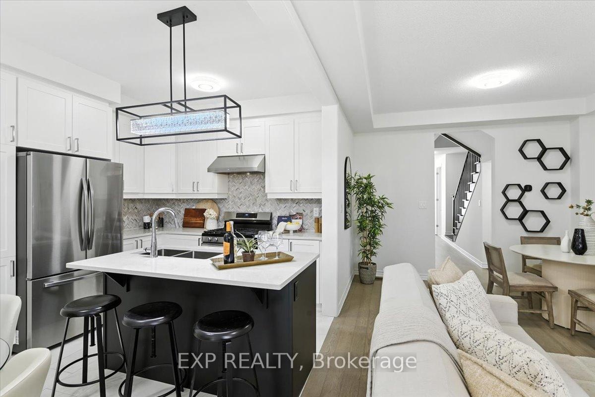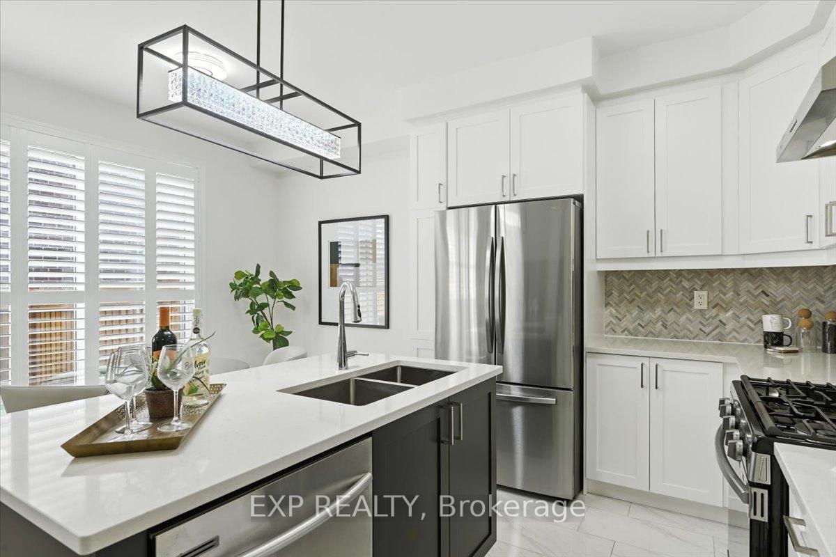 Welcome to this beautifully upgraded 3-spacious bedroom, 3-bathroom townhouse offering approximately 1,800 sq ft of modern living space. Featuring 9 ceilings on the main floor and 8 ceilings on the second floor, this home boasts an open-concept layout with a spacious living/dining area and a bright kitchen complete with a center island, 3 cm quartz countertops, tall cabinets, backsplash, and stainless steel appliances. The primary suite offers a generous 17x12 layout with a walk-in closet and a luxurious ensuite featuring a glass shower, bath oasis, and upgraded fixtures. The 2nd bedroom also includes its own walk-in closet, providing plenty of storage space. Additional highlights include 5 red oak hardwood floors throughout, oak stairs, 12x24 Olympia tiles, Riverside doors, California shutters, Ecobee smart thermostat, and keyless garage entry. The lower level comes with a rec room ready package, 3-piece rough-in, and oversized windows perfect for future customization. Enjoy peace of mind with an owned tankless water heater, upgraded appliances, central air conditioning, garage opener, and a newly fenced backyard with warranty. With over $50,000 in upgrades, this move-in ready home blends style, comfort, and functionality perfect for modern family living.