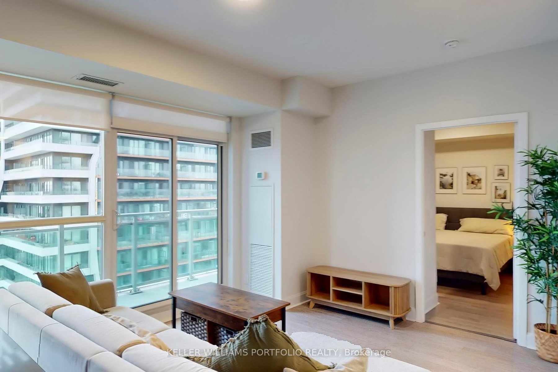 ** FURNISHED** Welcome to the highly sought after Jade Condos situated in stunning South Etobicoke! This sun drenched 2 bed + media, 2 bath unit features an open concept floor plan,chic modern finishes, floor to ceiling windows as well as stunning south West views of Lake Ontario and the Marina! Enjoy access to the balcony from one of 2 Walk Outs! Engineered hardwood flooring throughout, ss kitchen appliances, glass backsplash, moveable island, 1Parking & 1 Locker! AAA location just steps to Humber Bay Shores, walking/cycling trails,restaurants, retail, Gardiner Expressway and many more of Etobicoke's finest amenities! If tenants would rather have unfurnished - this is an option.