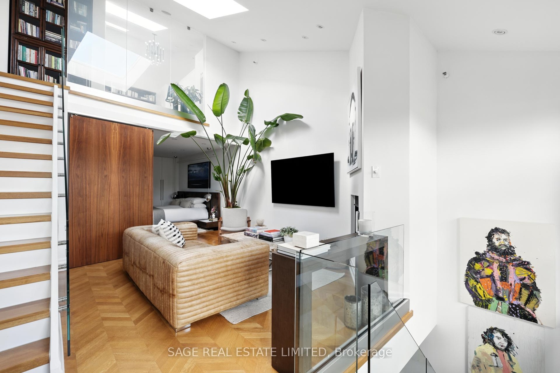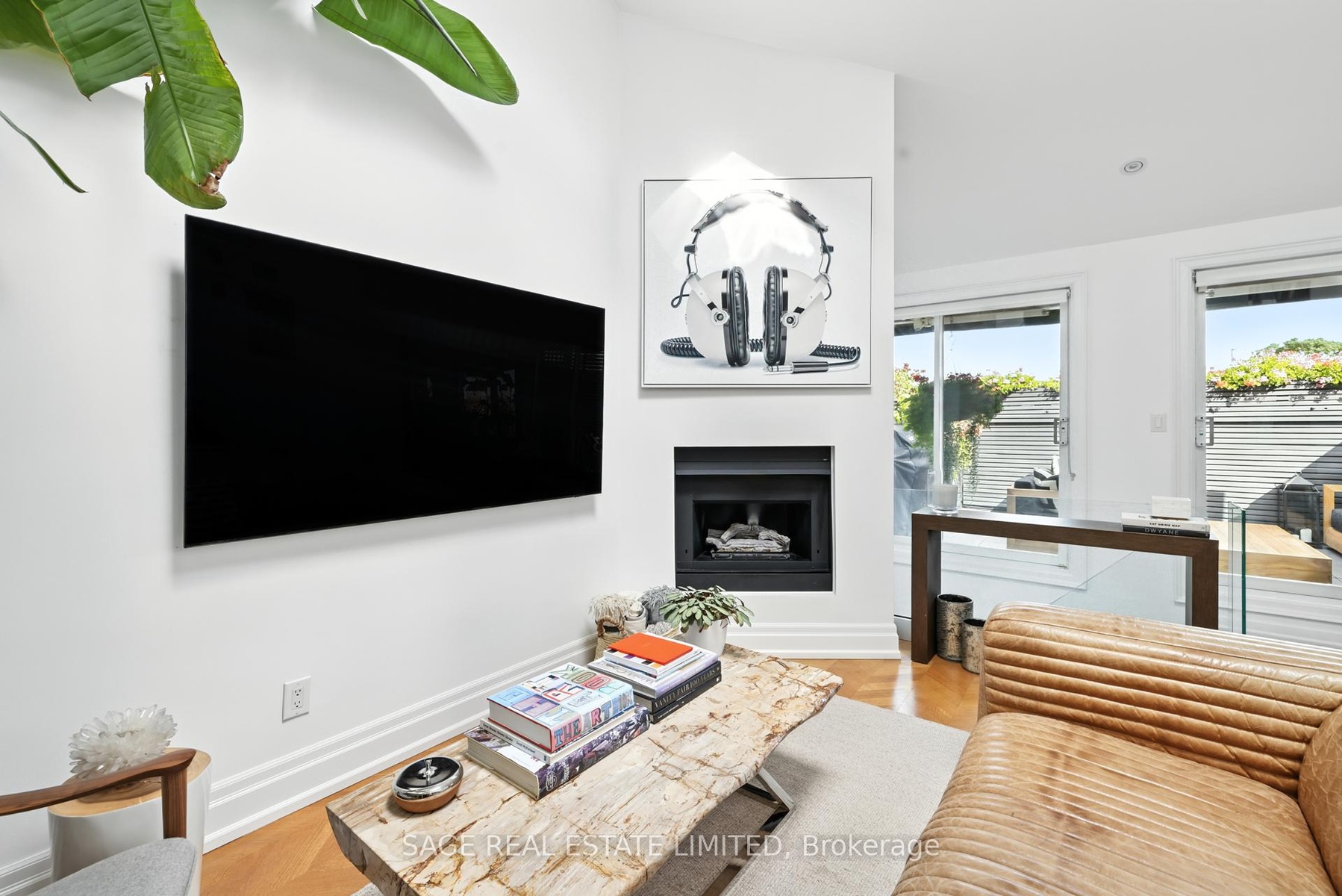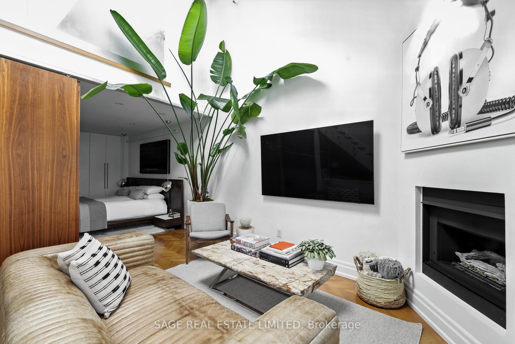 DescriptionHard loft living with heart. Tucked inside the former Decca Records warehouse, this 2 bedroom, 3 bathroom residence feels less like a condo and more like a true home. Spread over multiple levels, it offers distinct spaces for living, dining, and entertaining, complete with two fireplaces and a private terrace large enough for summer dinner parties or a quiet morning coffee. Natural light pours in through soaring ceilings and skylights, highlighting hand-laid white oak chevron floors, plaster mouldings, and thoughtful finishes that nod to a Parisian loft aesthetic. The full-size kitchen features generous storage, JennAir appliances, a wine fridge, and an island that anchors evenings of cooking, conversation, and gathering. Upstairs, the flexible third-floor retreat works beautifully as a home office, gym, or guest suite thanks to a Murphy bed and privacy glass. Smart-home technology, in-ceiling speakers, and custom details throughout make it both sophisticated and entirely livable. With only 12 units, Industrial Revolution II is a boutique loft building where neighbours know each other and community matters. And when you step outside, you're in the heart of Queen West, a short stroll to Trinity Bellwoods, Ossington, Dundas West, and Little Italy. Local favourites like Sud Forno, Café 23, and Terroni are around the corner, while cultural landmarks from Graffiti Alley to The Bentway are minutes away.Unit 205 at 670 Richmond is not just about space. It is about lifestyle. A rare balance of privacy, character, and connection in one of Torontos most dynamic neighbourhoods.Amenities- BBQs Allowed