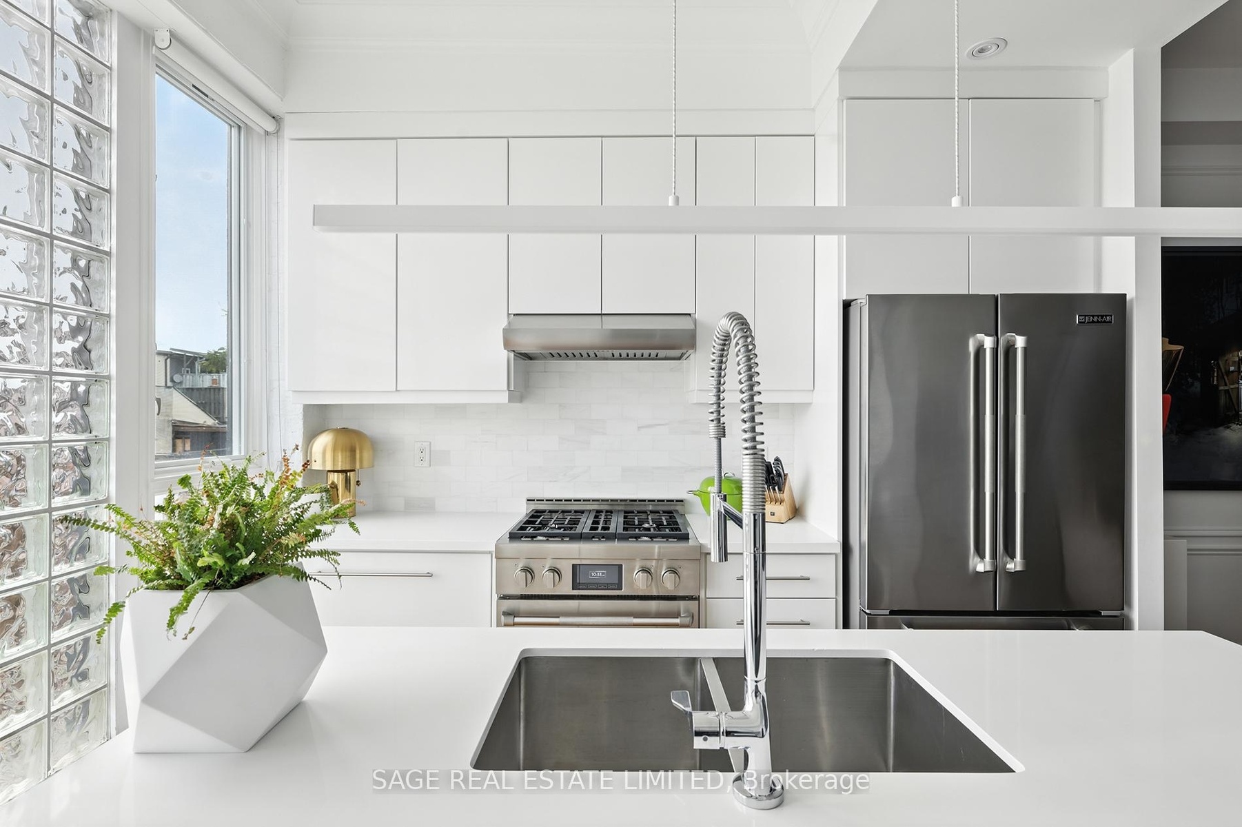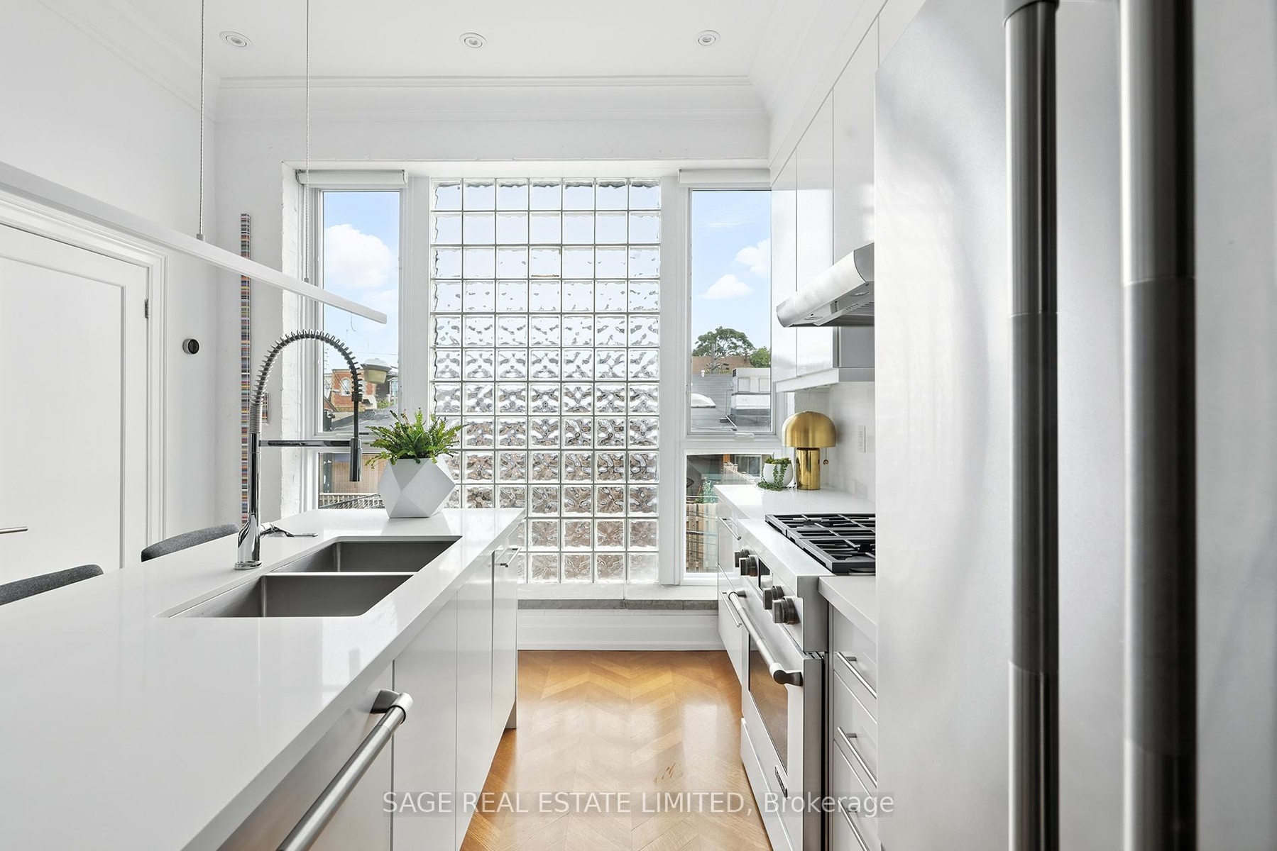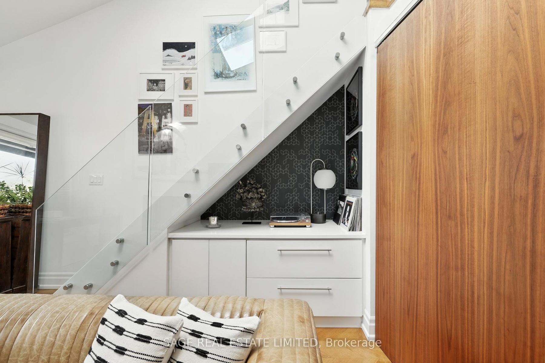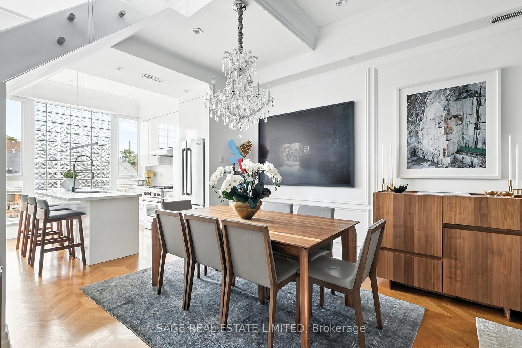 DescriptionHard loft living with heart. Tucked inside the former Decca Records warehouse, this 2 bedroom, 3 bathroom residence feels less like a condo and more like a true home. Spread over multiple levels, it offers distinct spaces for living, dining, and entertaining, complete with two fireplaces and a private terrace large enough for summer dinner parties or a quiet morning coffee. Natural light pours in through soaring ceilings and skylights, highlighting hand-laid white oak chevron floors, plaster mouldings, and thoughtful finishes that nod to a Parisian loft aesthetic. The full-size kitchen features generous storage, JennAir appliances, a wine fridge, and an island that anchors evenings of cooking, conversation, and gathering. Upstairs, the flexible third-floor retreat works beautifully as a home office, gym, or guest suite thanks to a Murphy bed and privacy glass. Smart-home technology, in-ceiling speakers, and custom details throughout make it both sophisticated and entirely livable. With only 12 units, Industrial Revolution II is a boutique loft building where neighbours know each other and community matters. And when you step outside, you're in the heart of Queen West, a short stroll to Trinity Bellwoods, Ossington, Dundas West, and Little Italy. Local favourites like Sud Forno, Café 23, and Terroni are around the corner, while cultural landmarks from Graffiti Alley to The Bentway are minutes away.Unit 205 at 670 Richmond is not just about space. It is about lifestyle. A rare balance of privacy, character, and connection in one of Torontos most dynamic neighbourhoods.Amenities- BBQs Allowed