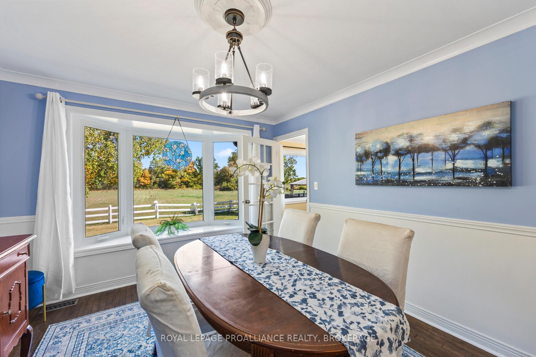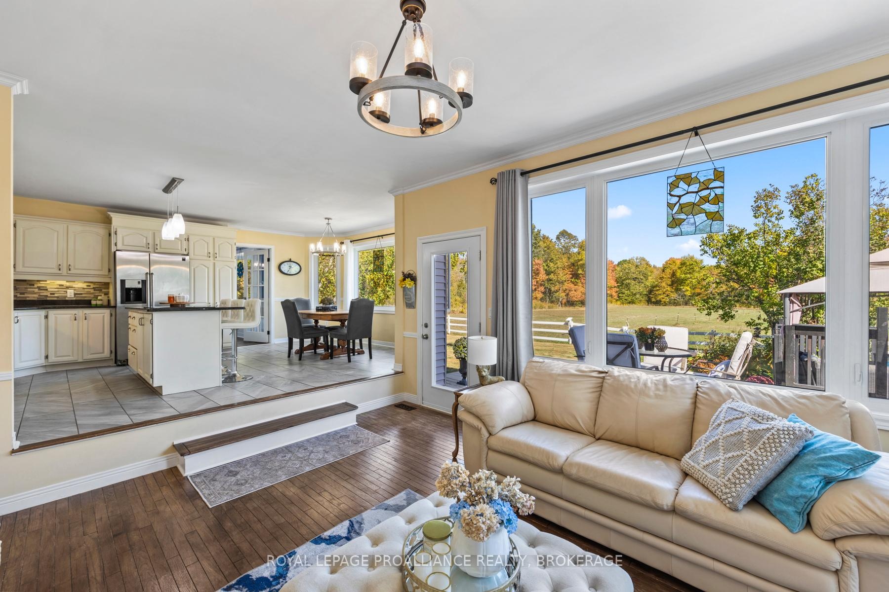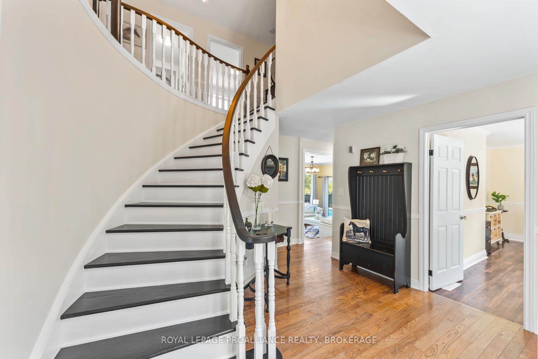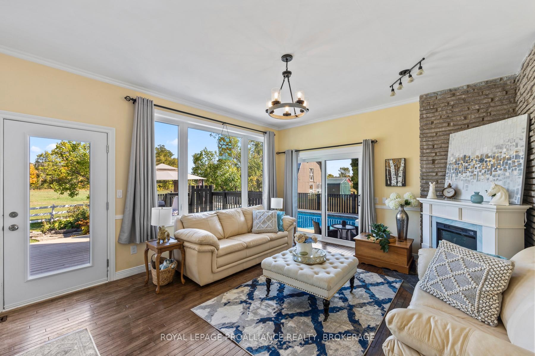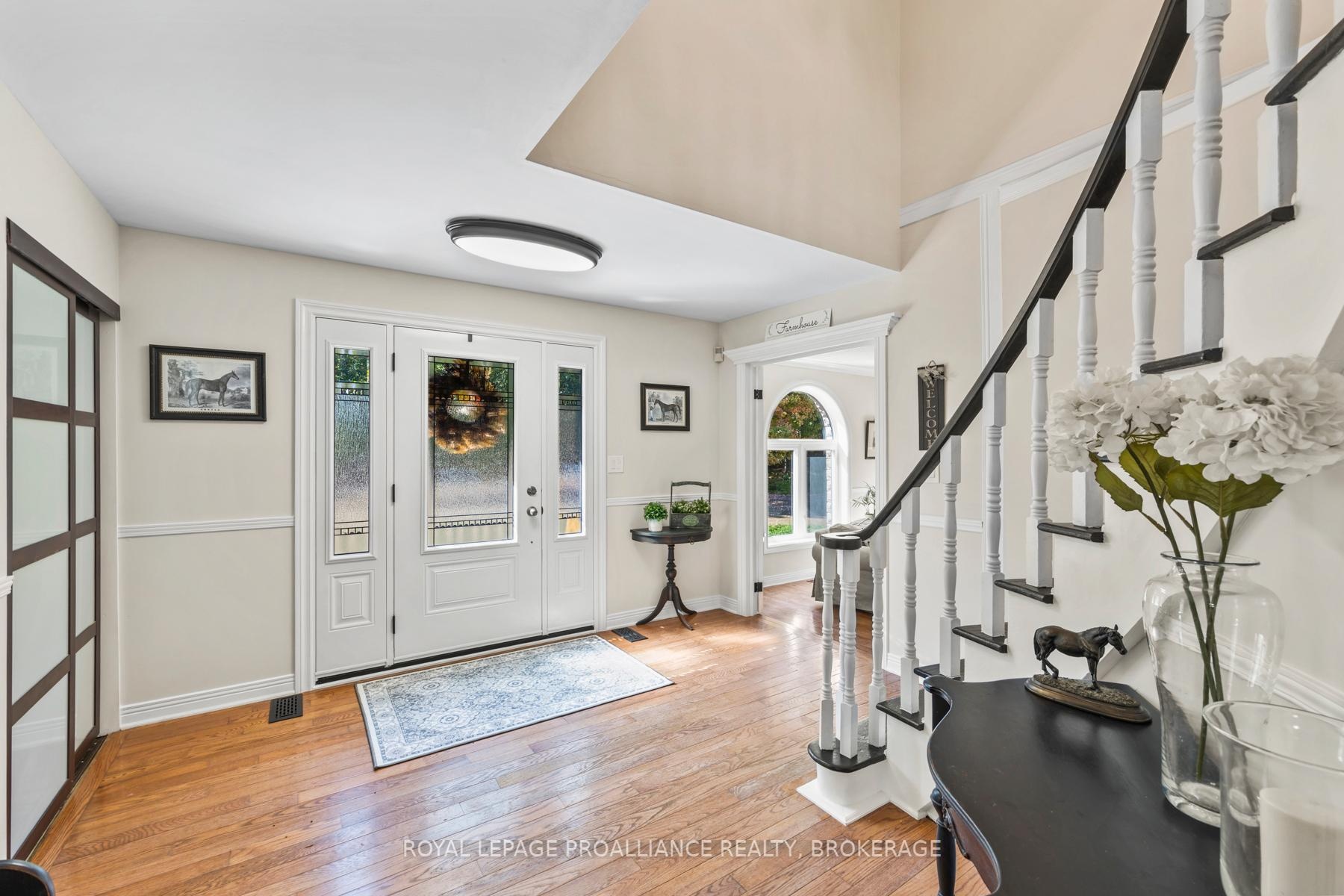 Elegant Tudor-style residence nestled on over 3 acres, surrounded by breathtaking natural beauty and storybook charm. You will love the luxurious lifestyle and expansive views of this serene retreat. Step inside to be enchanted by this four-bedroom, three-bathroom executive home. Hardwood floors flow from the front entrance into the living room and formal dining room. The large kitchen showcases creamy-white cabinetry, an island with breakfast bar, granite counters, built-in stainless-steel appliances and a convenient eating area. Its open to the family room which creates a spacious and inviting area to relax, cook and entertain. The main floor is complete with a 2-pce bathroom, mudroom with direct access to the 2.5-car garage, two fireplaces and a home office which would make a great guest space too. Upstairs is well-appointed, featuring the primary suite with 4-pce ensuite and walk-in closet. There are three more generously-sized bedrooms, a 4-pce main bathroom, laundry and a bonus loft! Enjoy the private backyard with inground pool, gazebo, spacious deck and magnificent long views. This property includes essential features for horse enthusiasts too - a barn with 4 box stalls and mats + 1 wash stall/feed room, loft, separate tack room and 2 paddocks. Only 15 minutes to Kingston, 5 minutes to Sydenham and just down the road to amenities and excellent schools. Dont miss this special opportunity, your dream property awaits.