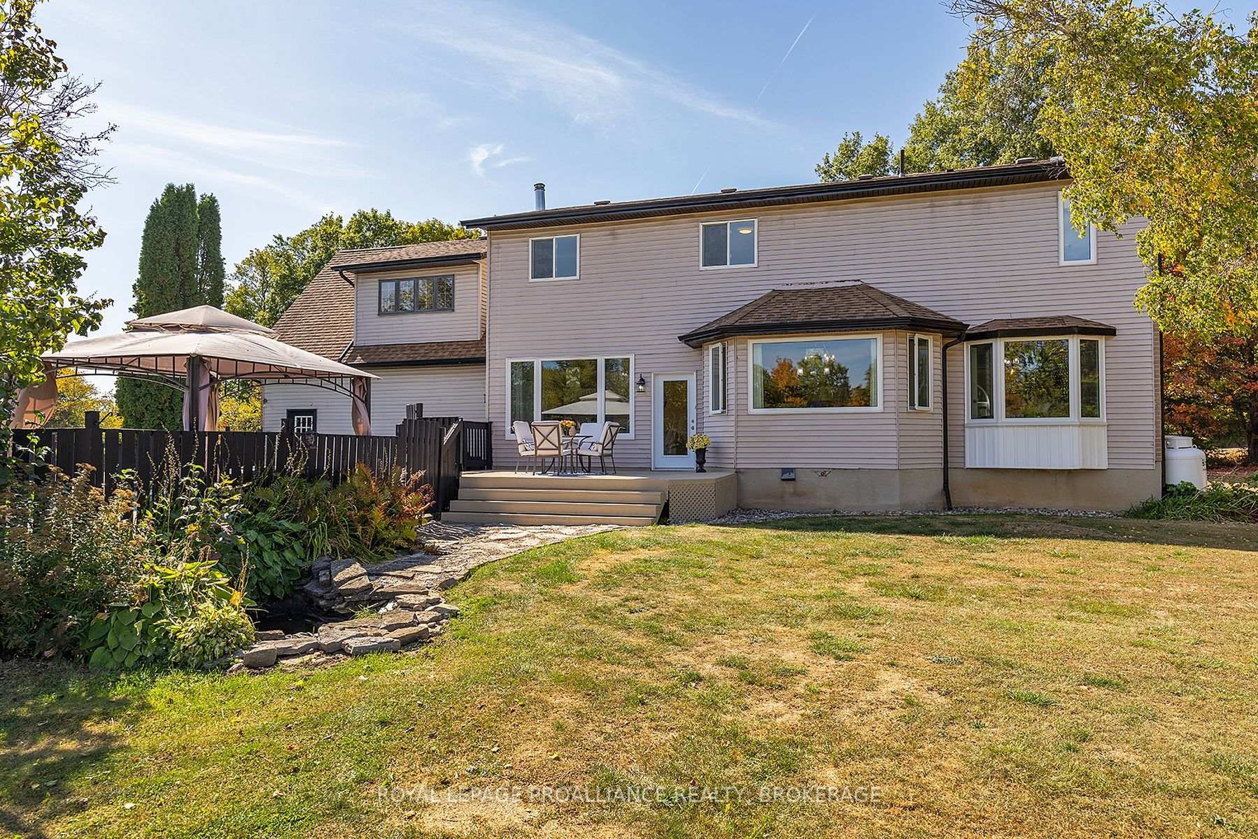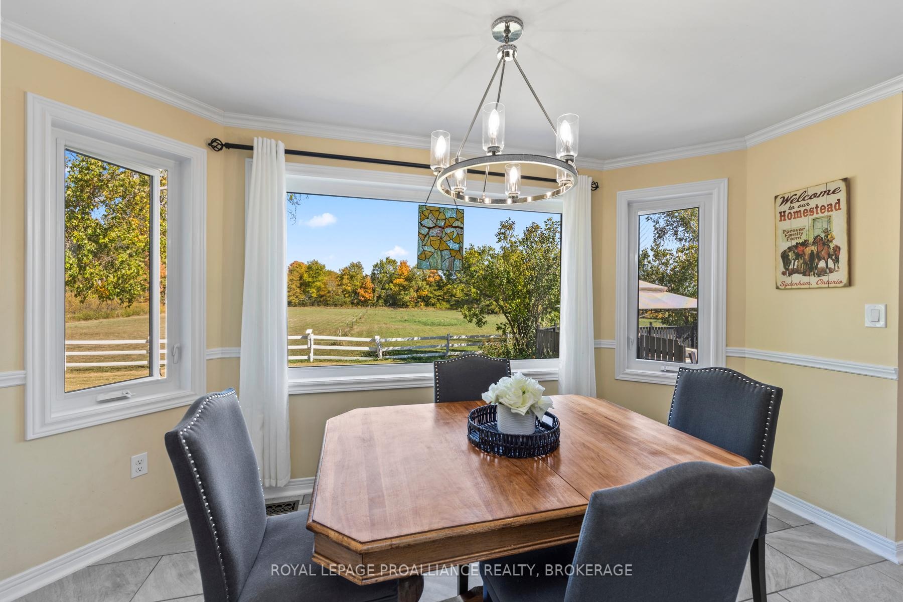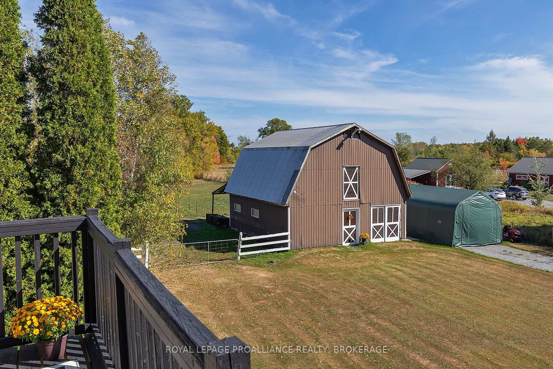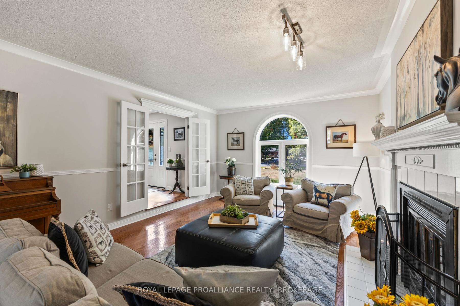 Elegant Tudor-style residence nestled on over 3 acres, surrounded by breathtaking natural beauty and storybook charm. You will love the luxurious lifestyle and expansive views of this serene retreat. Step inside to be enchanted by this four-bedroom, three-bathroom executive home. Hardwood floors flow from the front entrance into the living room and formal dining room. The large kitchen showcases creamy-white cabinetry, an island with breakfast bar, granite counters, built-in stainless-steel appliances and a convenient eating area. Its open to the family room which creates a spacious and inviting area to relax, cook and entertain. The main floor is complete with a 2-pce bathroom, mudroom with direct access to the 2.5-car garage, two fireplaces and a home office which would make a great guest space too. Upstairs is well-appointed, featuring the primary suite with 4-pce ensuite and walk-in closet. There are three more generously-sized bedrooms, a 4-pce main bathroom, laundry and a bonus loft! Enjoy the private backyard with inground pool, gazebo, spacious deck and magnificent long views. This property includes essential features for horse enthusiasts too - a barn with 4 box stalls and mats + 1 wash stall/feed room, loft, separate tack room and 2 paddocks. Only 15 minutes to Kingston, 5 minutes to Sydenham and just down the road to amenities and excellent schools. Dont miss this special opportunity, your dream property awaits.