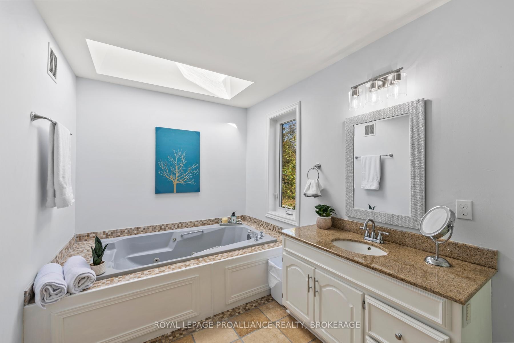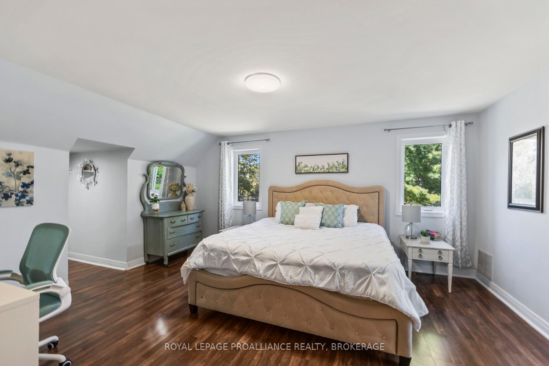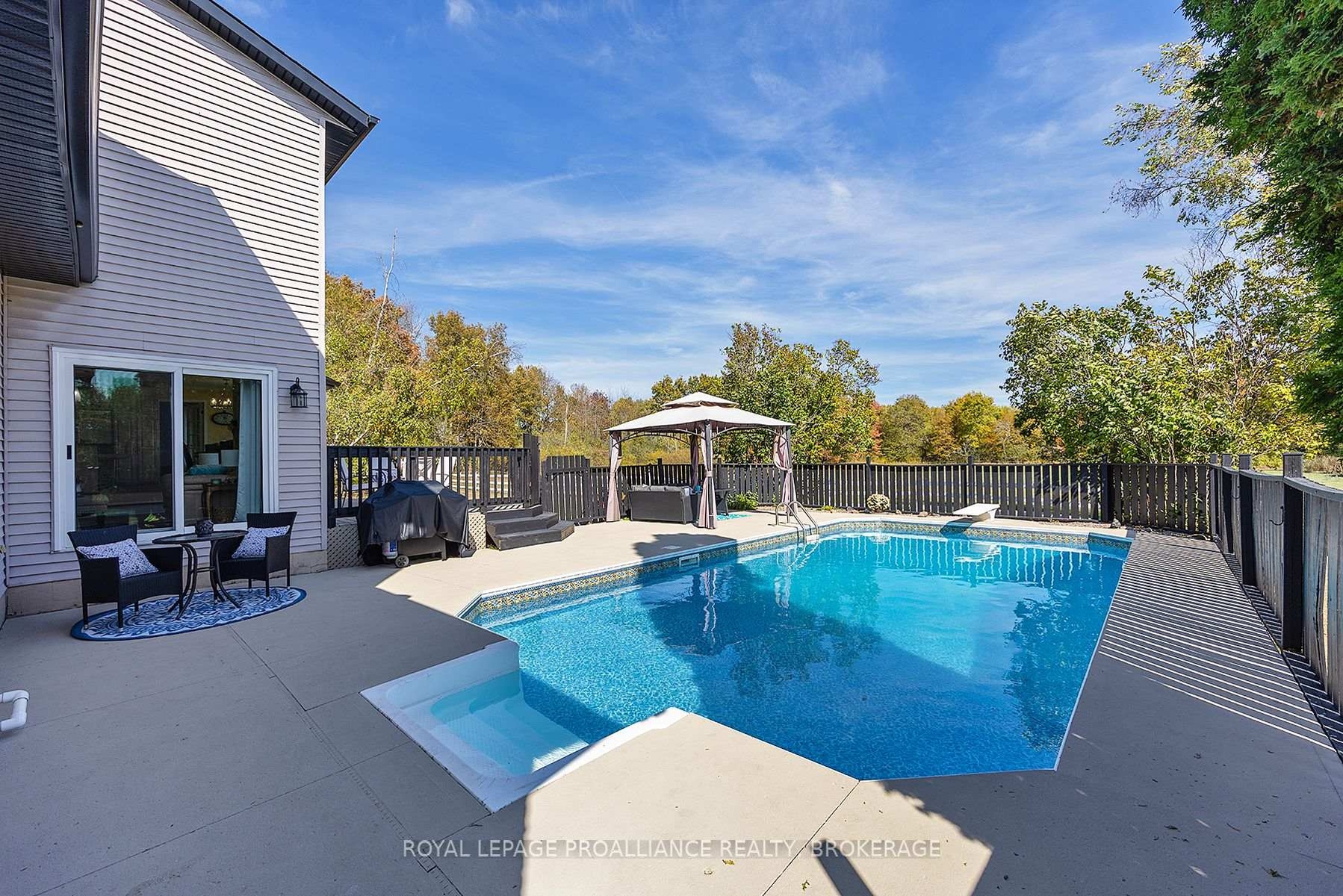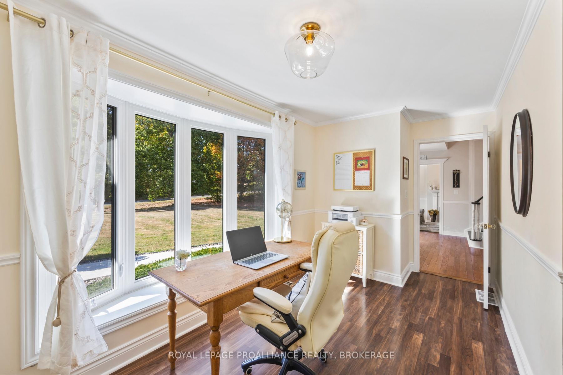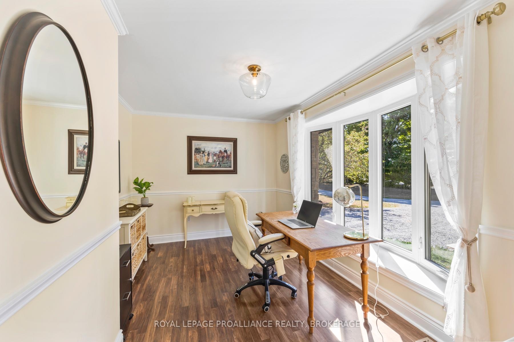 Elegant Tudor-style residence nestled on over 3 acres, surrounded by breathtaking natural beauty and storybook charm. You will love the luxurious lifestyle and expansive views of this serene retreat. Step inside to be enchanted by this four-bedroom, three-bathroom executive home. Hardwood floors flow from the front entrance into the living room and formal dining room. The large kitchen showcases creamy-white cabinetry, an island with breakfast bar, granite counters, built-in stainless-steel appliances and a convenient eating area. Its open to the family room which creates a spacious and inviting area to relax, cook and entertain. The main floor is complete with a 2-pce bathroom, mudroom with direct access to the 2.5-car garage, two fireplaces and a home office which would make a great guest space too. Upstairs is well-appointed, featuring the primary suite with 4-pce ensuite and walk-in closet. There are three more generously-sized bedrooms, a 4-pce main bathroom, laundry and a bonus loft! Enjoy the private backyard with inground pool, gazebo, spacious deck and magnificent long views. This property includes essential features for horse enthusiasts too - a barn with 4 box stalls and mats + 1 wash stall/feed room, loft, separate tack room and 2 paddocks. Only 15 minutes to Kingston, 5 minutes to Sydenham and just down the road to amenities and excellent schools. Dont miss this special opportunity, your dream property awaits.