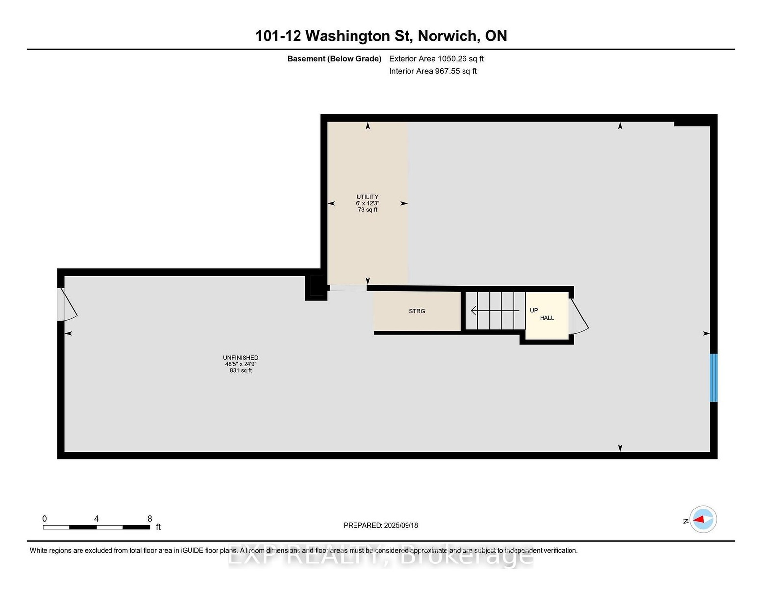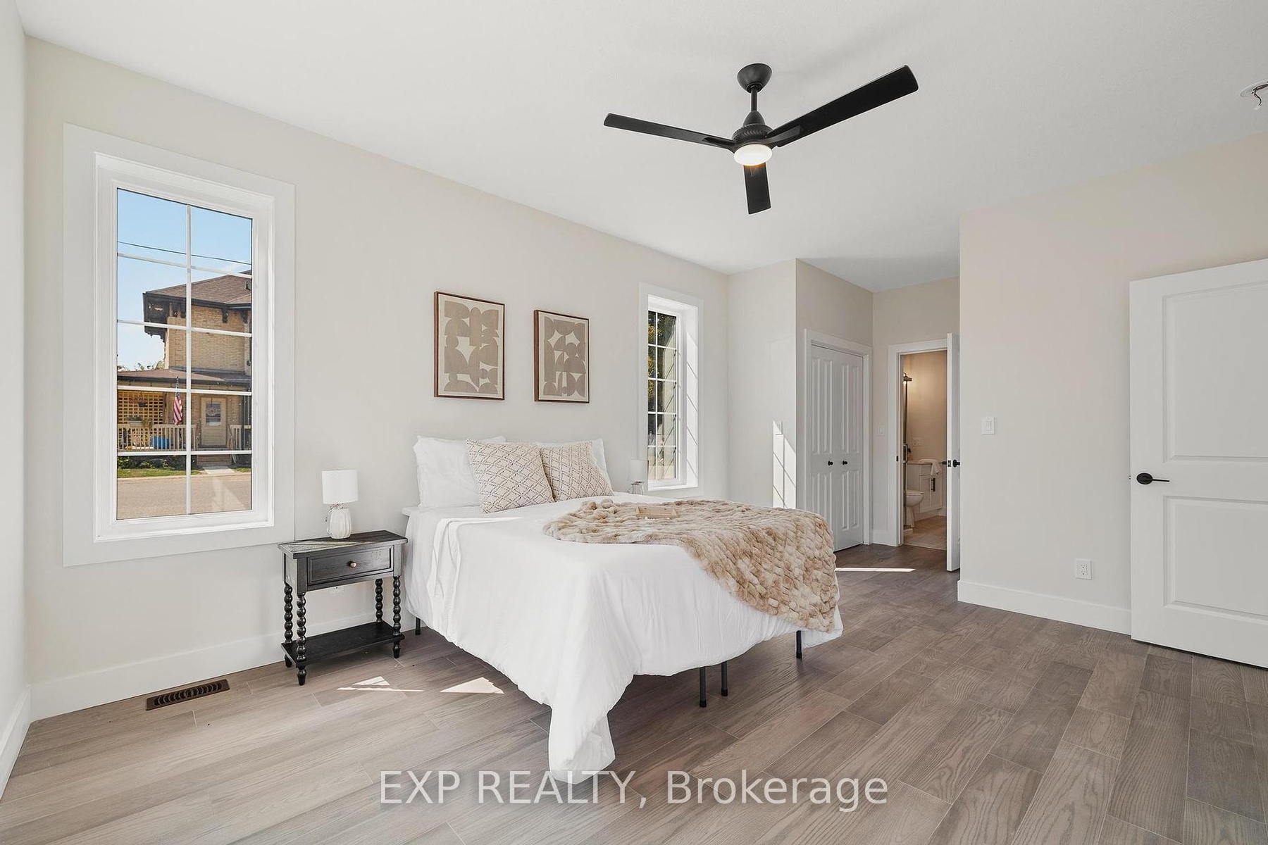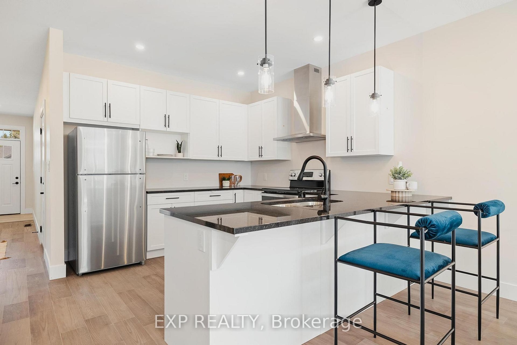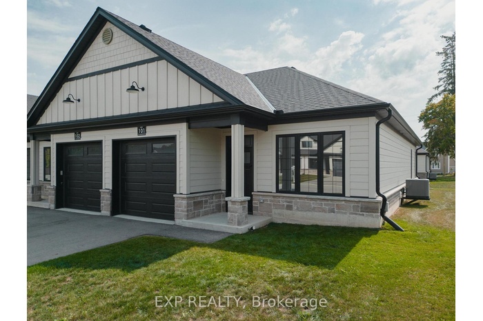 Welcome to 12 Washington St, Unit 101 a beautifully staged end-unit bungalow townhouse offering the perfect blend of style, comfort, and convenience in the heart of Norwich. Step inside to find a bright and inviting kitchen, complete with quartz countertops, a sleek stove hood range, refrigerator, and dishwasher. The open-concept design is enhanced by 9-foot ceilings, pot lights, and elegant grey-toned hardwood flooring that flows throughout the main living space. Natural light fills the home, creating a warm and welcoming atmosphere. The primary bedroom is a true retreat, featuring two closets, a ceiling fan, and direct access to the spacious four-piece bathroom. The bathroom offers both a bathtub and a separate stand-up shower, and conveniently connects to the laundry room, which provides ample storage for everyday living. A second bedroom at the front of the home offers versatility for family, guests, or a home office. Downstairs, the unfinished basement presents incredible potential with a large egress window, a rough-in for a bathroom, an HRV system, and a 100-amp panel ready for your personal touch and future expansion. Outside, enjoy a private back deck with a privacy wall, perfect for relaxing or entertaining. The property also includes a one-car garage for added convenience. Located in a family-friendly neighbourhood, this home is close to all the necessities Norwich has to offer shops, schools, parks, and more. With its thoughtful layout and desirable features, this home is an excellent opportunity to enjoy comfortable living in a vibrant community.