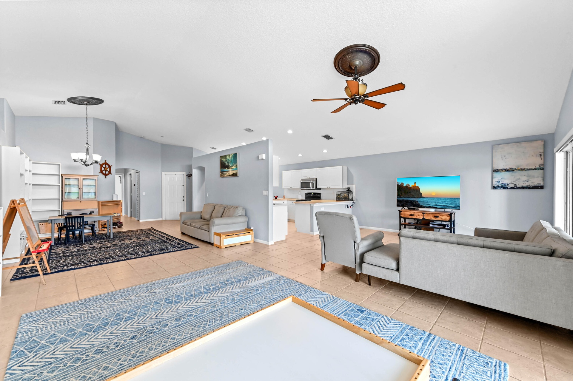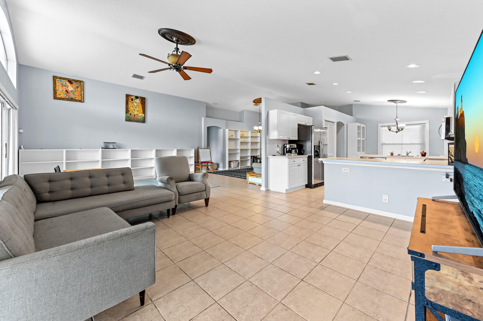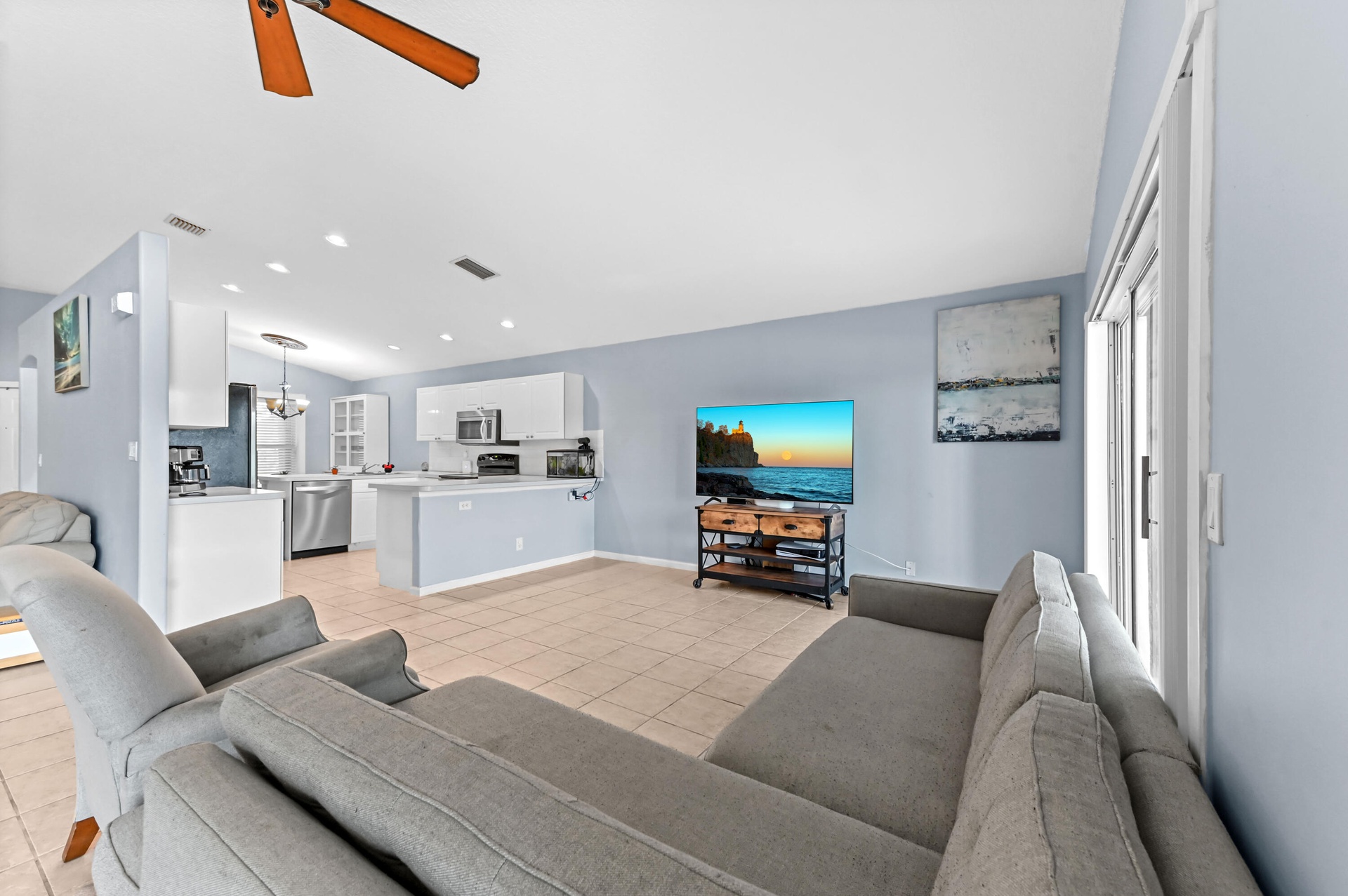 Welcome to this beautifully maintained one-story waterfront home featuring 3 bedrooms, 2 baths, a brand-new roof, and about a 3-year-old AC system for peace of mind and comfort. Step inside to a welcoming decorative tiled entryway that flows into an open-concept floor plan, creating an immediate sense of spaciousness. The layout ensures privacy, with a generously extended and oversized third bedroom offering versatility for guests, a home office, or a hobby room. Throughout the home, you'll find elegant details including new interior paint and planter shelves that add a touch of unique charm.