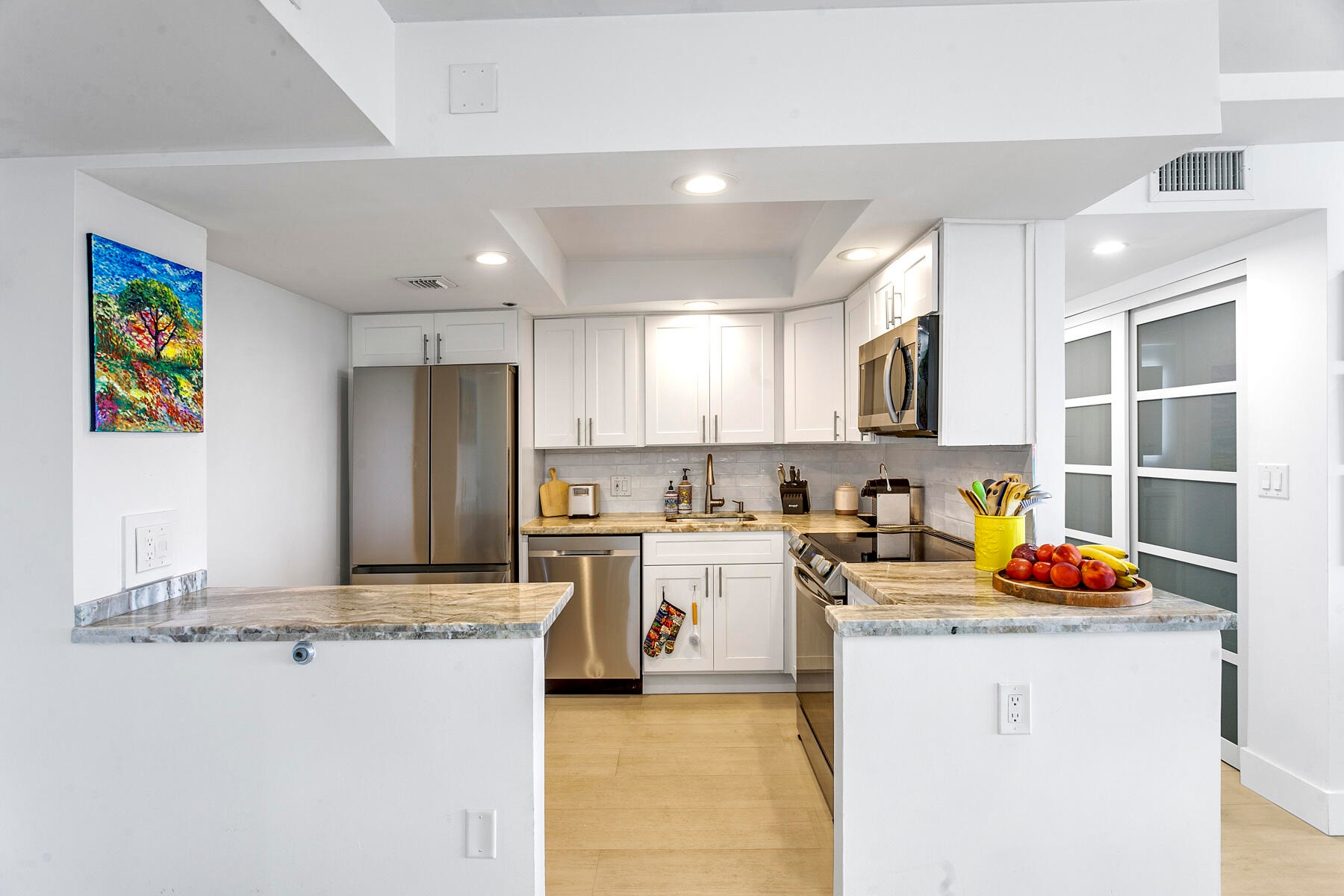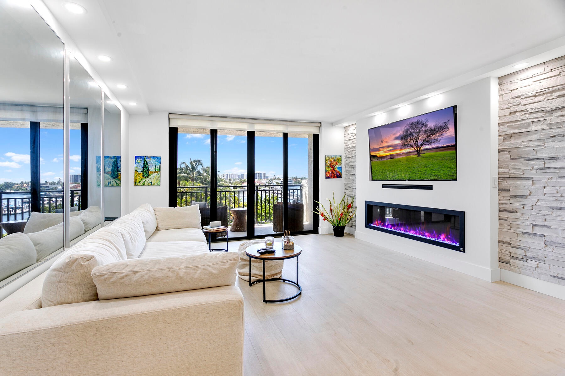 New! Come Love The Regency's Updated ''Pearl''...on the Intracoastal, by the ocean, set between Delray Beach & Boca Raton. Recently, beautifully re-imagined, spacious 2 BR/2 Bath, South-facing water views (ideal 4th floor), preferred color array, open kitchen, new appliances, fireplace element, washer/dryer, high impact doors/windows, large flatscreen TVs, LR surround sound. Two pools, private beach access & resort set-up, new BBQ stations, dual gyms, garage parking, EV stations. On-floor storage unit & oversized washer/dryer. Top managed, low $ monthly, all work complete, no assessments. Min. to Atlantic Ave & Boca Raton. Comes FURNISHED. Must see The Regency Highland's stunning Pearl!
