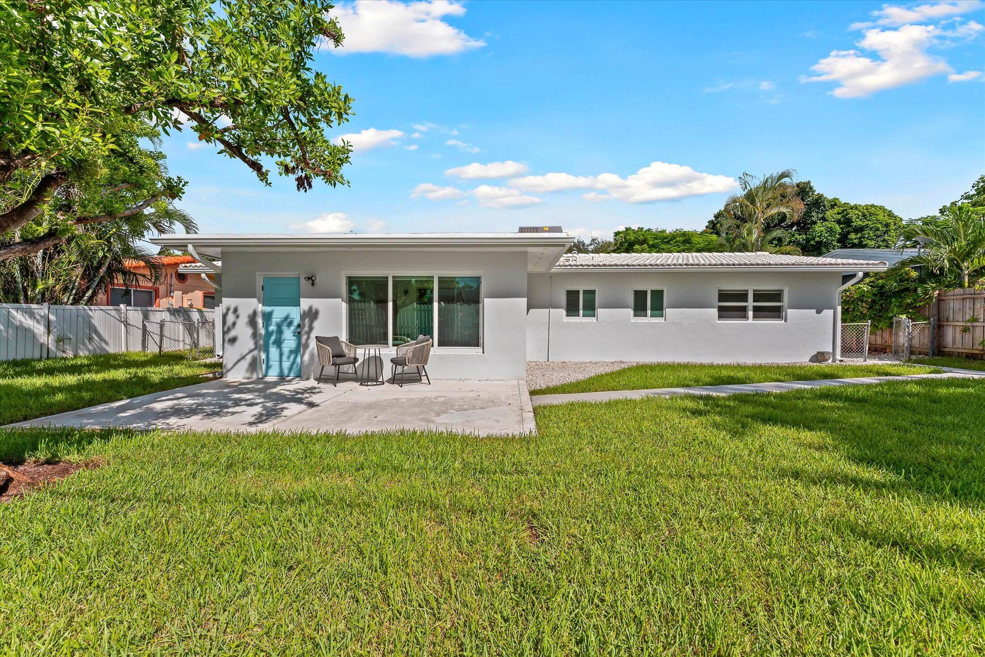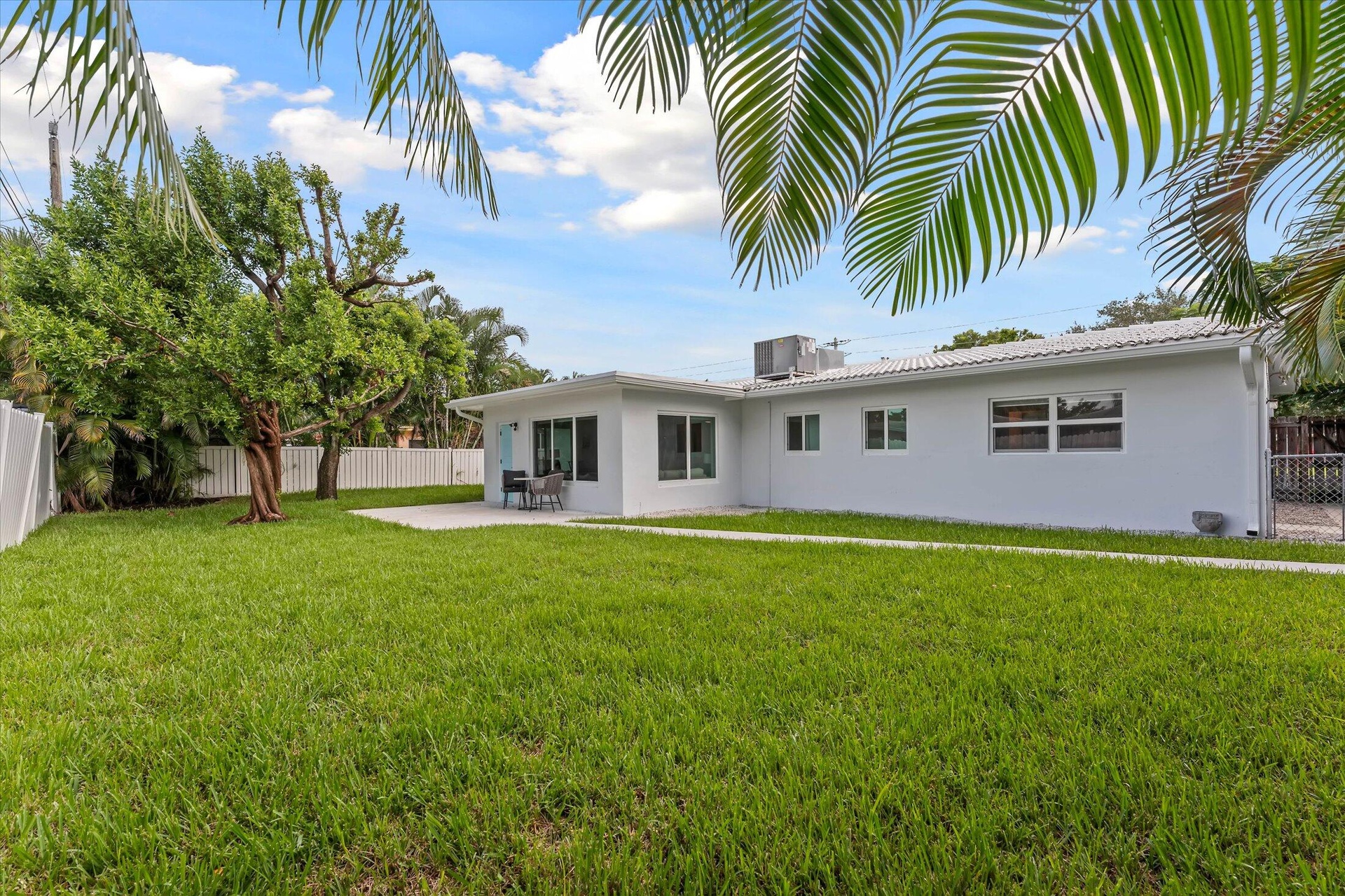 Pompano Beach - Harbor Village, just 5 minutes to the beach! This renovated 3 bed, 2 bath, 1-car garage home features a 2023 kitchen with quartz counters, white cabinets, stainless appliances, farm sink, pantry, and striking backsplash. Open living/dining areas plus a versatile Florida room. Bathrooms remodeled 2024 with modern tile, glass showers, and sleek finishes. Upgrades: new A/C, impact windows & doors (2024), water heater (2022), fresh exterior & garage paint, new gutters, patio, walkways, sod & sprinkler system (2025). Fully fenced private backyard, lush landscaping. Beachway Estates has NO HOA! Near shops, dining, and the beach. Ideal as a primary home, vacation retreat, or short-term rental.