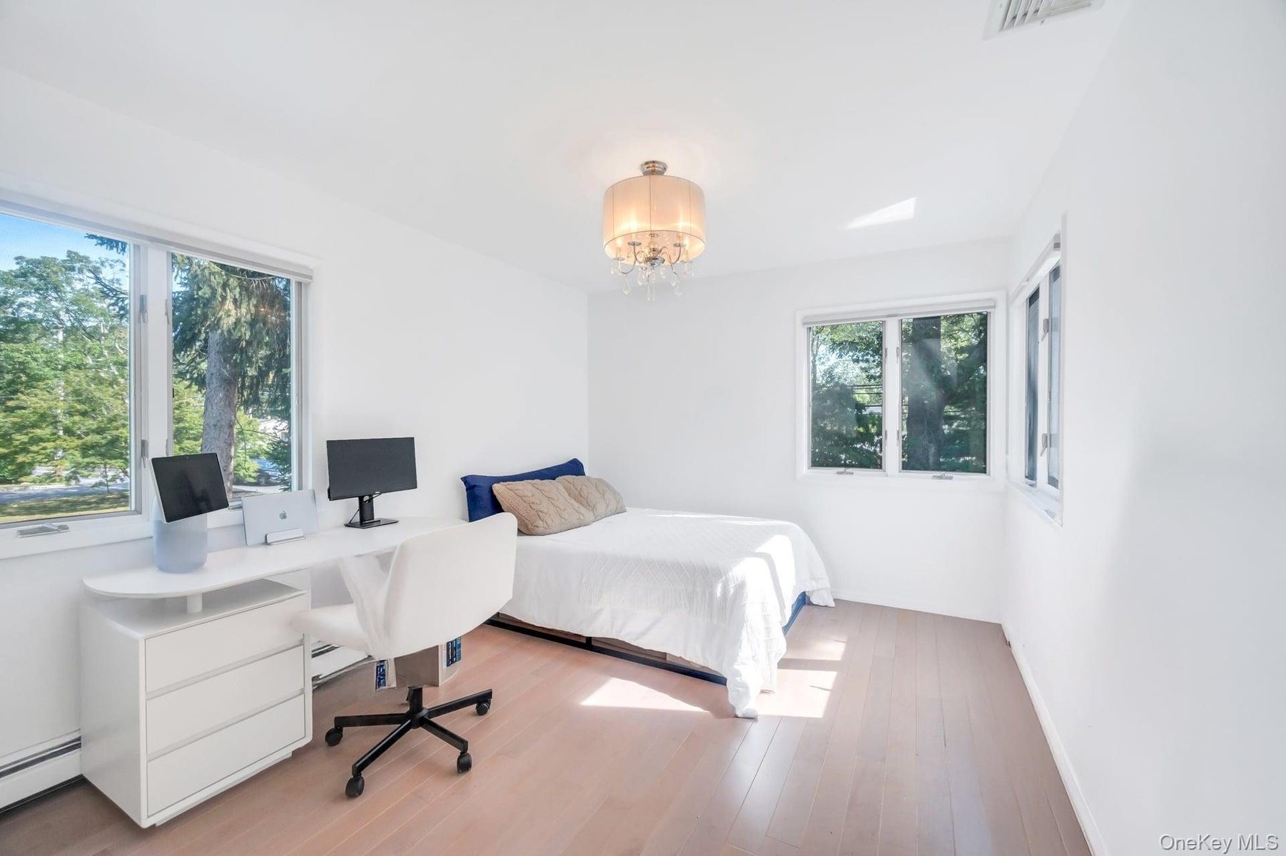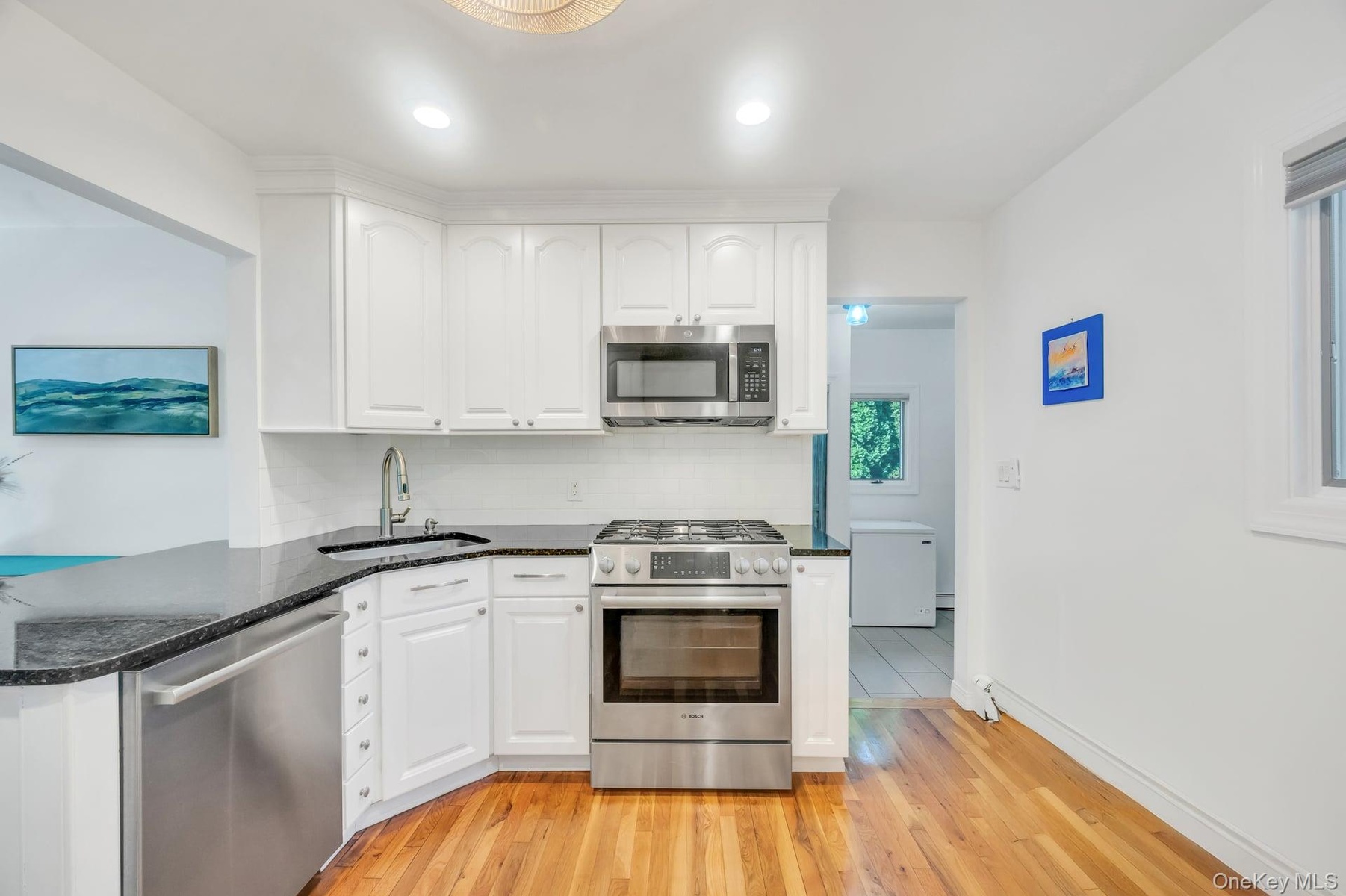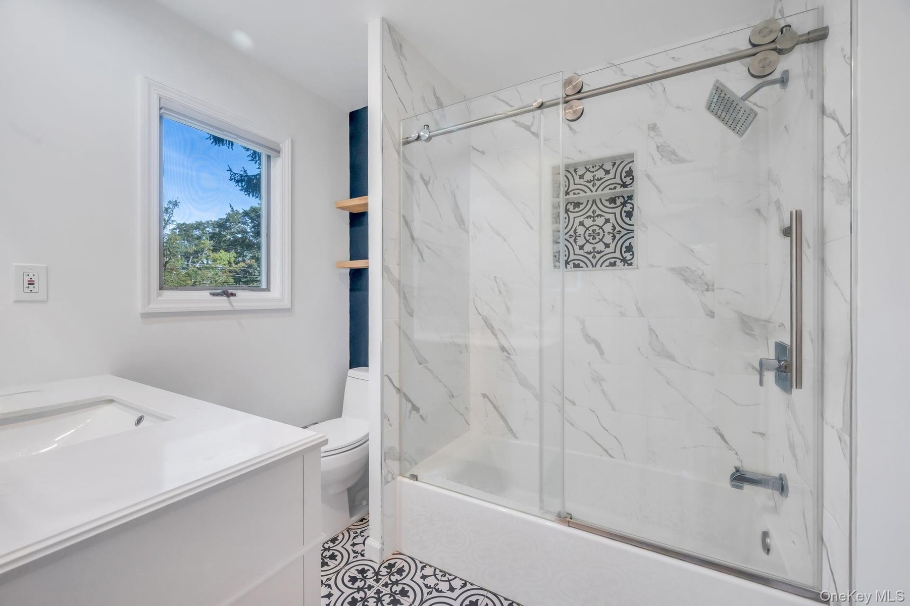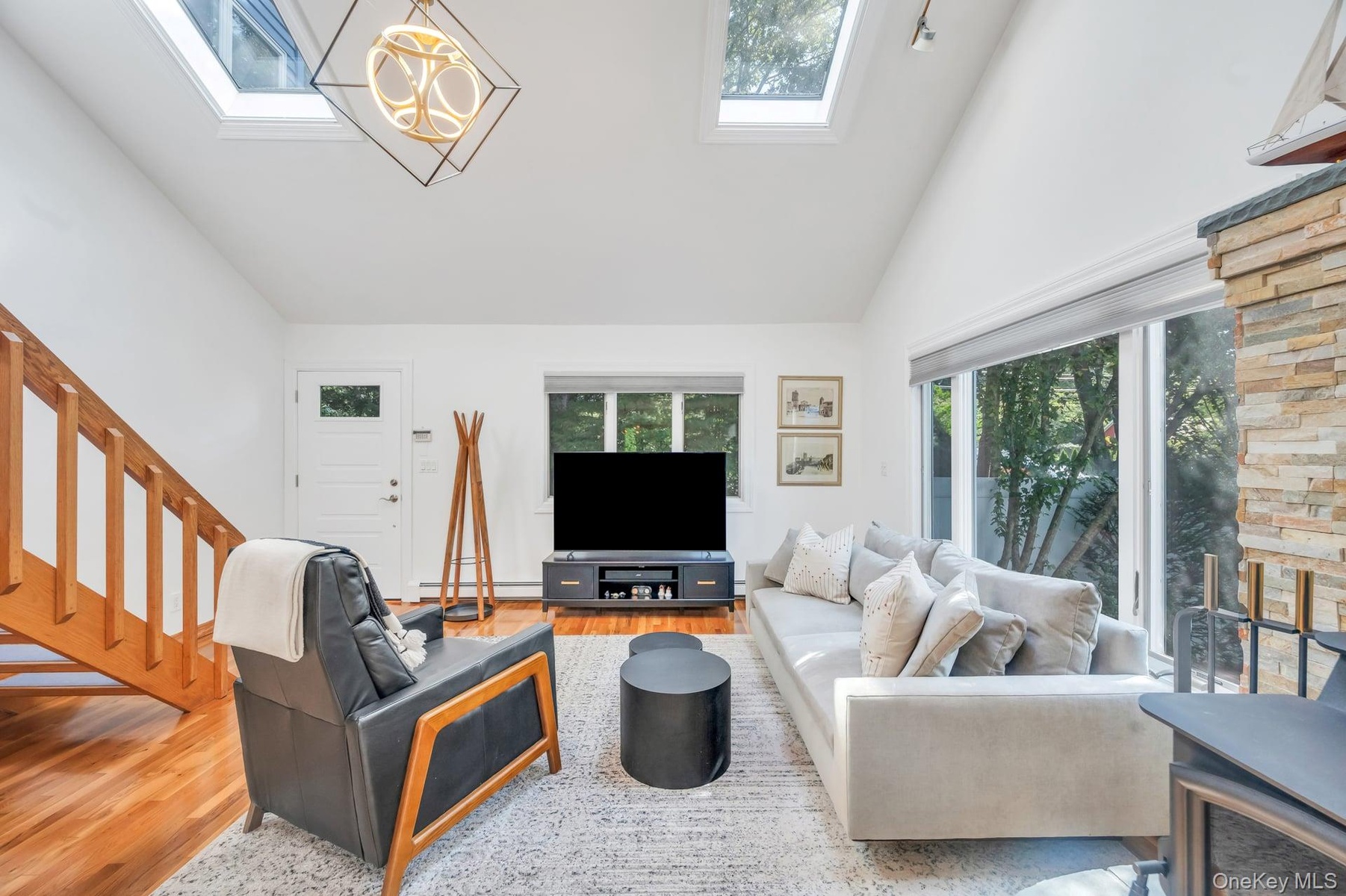 Incredible opportunity to own a magnificent newer-built home boasting a two-year-old roof, setback on the property with mature landscaping that creates privacy and seclusion from the moment you arrive. A long blacktop driveway with a Belgian block border leads to a two-car detached garage with electric, one large garage door, and white PVC fencing framing the grounds. The front approach is highlighted by a custom paver porch and beautiful cultured stone skirt wrapping the home, setting the tone for what’s inside and out. The backyard is a true resort, featuring an enormous paver patio, heated saltwater inground pool, multiple entertaining spaces, a portion of the yard finished with Astroturf for low-maintenance beauty while the front yard remains lush grass, and several entrances into the home for seamless indoor-outdoor living. The pool is perfectly positioned between the house and garage, creating a tranquil, private oasis. Inside, a brand-new white front door with glass top opens into a dramatic two-story grand entry with soaring vaulted ceilings, recessed lighting, and oversized windows that fill the space with natural light. The formal living room is centered around a one-year-old Lopi Endeavor wood-burning stove set against a cultured stone wall, while the formal dining room is highlighted by a modern nine-bulb chandelier and a huge slider leading directly to the rear yard. The chef’s kitchen is outfitted with white cabinetry, granite countertops, stainless steel Bosch stove and dishwasher, stainless steel refrigerator with water and ice, subway tile backsplash, and a breakfast bar, all flowing seamlessly into a brand-new mudroom complete with LG front-loading washer and dryer, white cabinetry, hanging storage, and yet another access point to the backyard. The first floor offers one bedroom, making it ideal for a home office, out-of-town guests, or extended family, along with a full bath featuring floor-to-ceiling tile, a glass stand-up shower, and modern fixtures. Upstairs you’ll find a versatile den/bonus room or additional bedroom with updated hardwood floors and ceiling fan, plus an incredible primary suite with ceiling fan and a brand-new spa-like bath with glass tub and shower with built-in soap niches, custom tile flooring, and white vanity. A spacious additional bedroom with new flooring and a six-panel fog glass closet door rounds out the second floor. This home is packed with upgrades including 200-amp electrical service, Andersen windows, a less than one-year-old high-efficiency boiler, propane cooking, a separate cesspool and dry well, and a five-zone inground sprinkler system. Truly one-of-a-kind, this property combines modern finishes, meticulous updates, resort-style outdoor living, and every high-end feature today’s buyer could want.