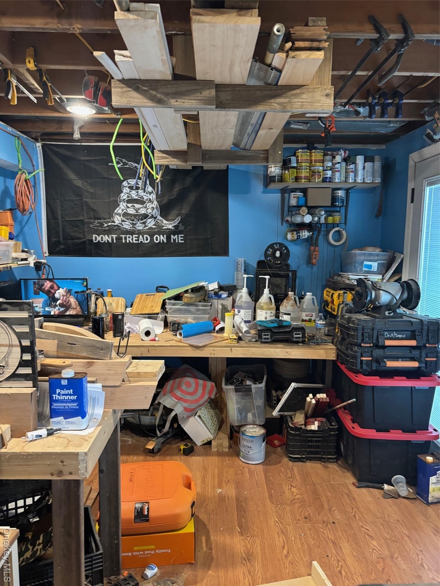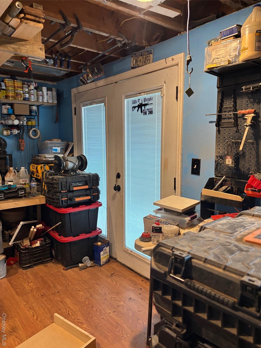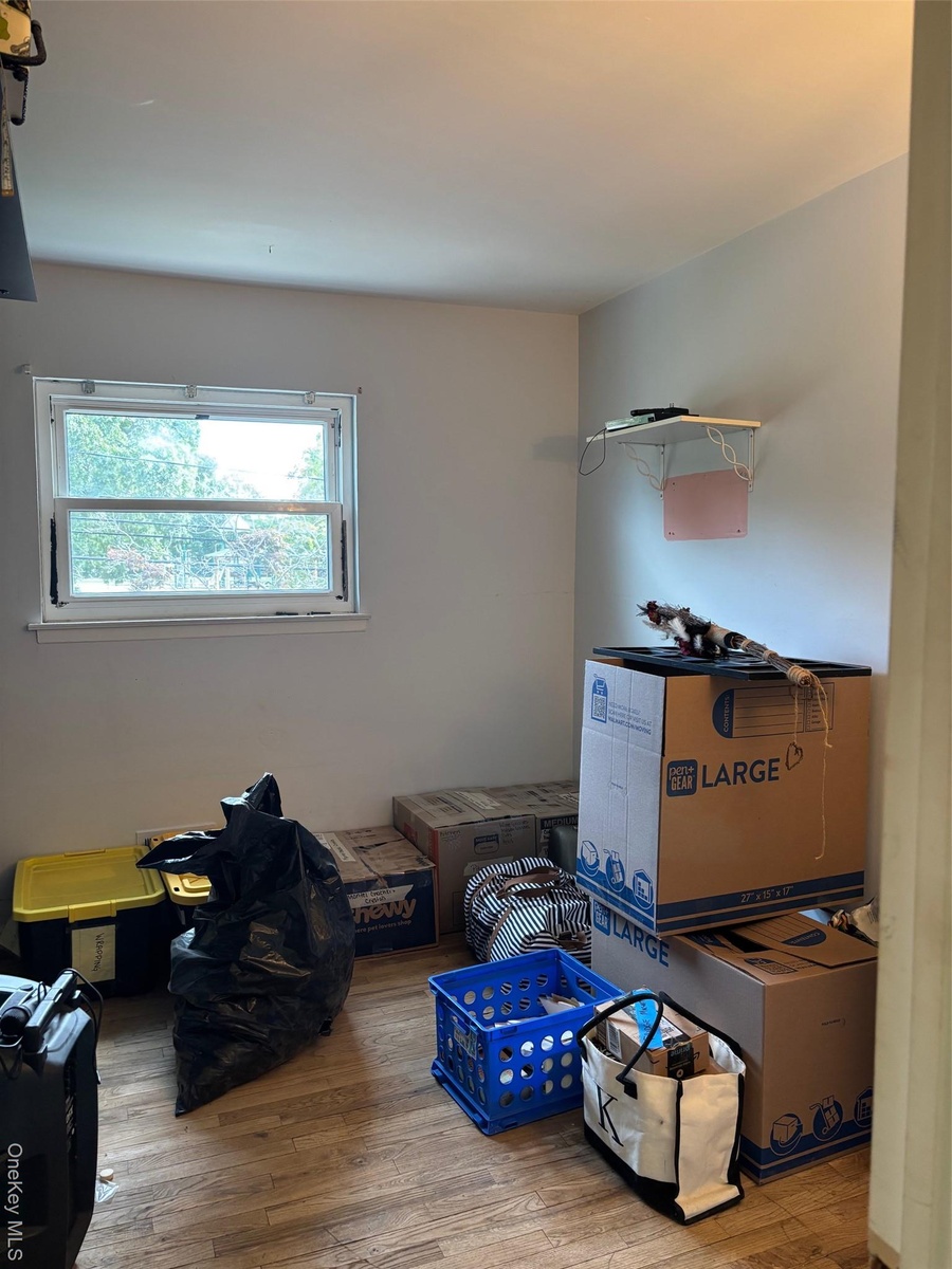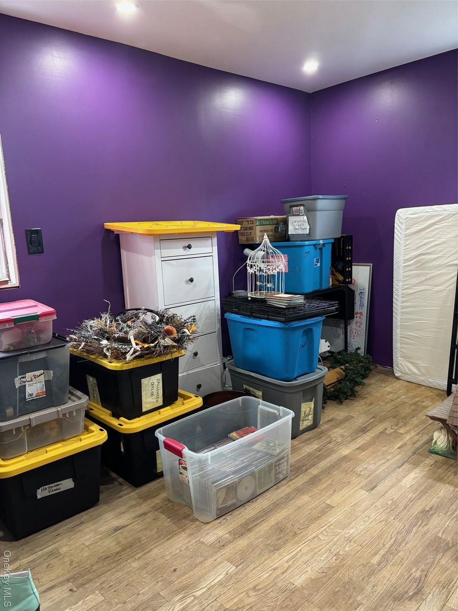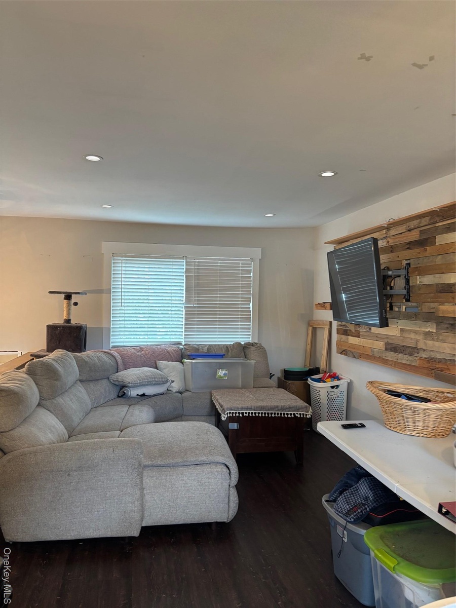 - Bedroom with wood finished floors, recessed lighting, and a wall mounted AC