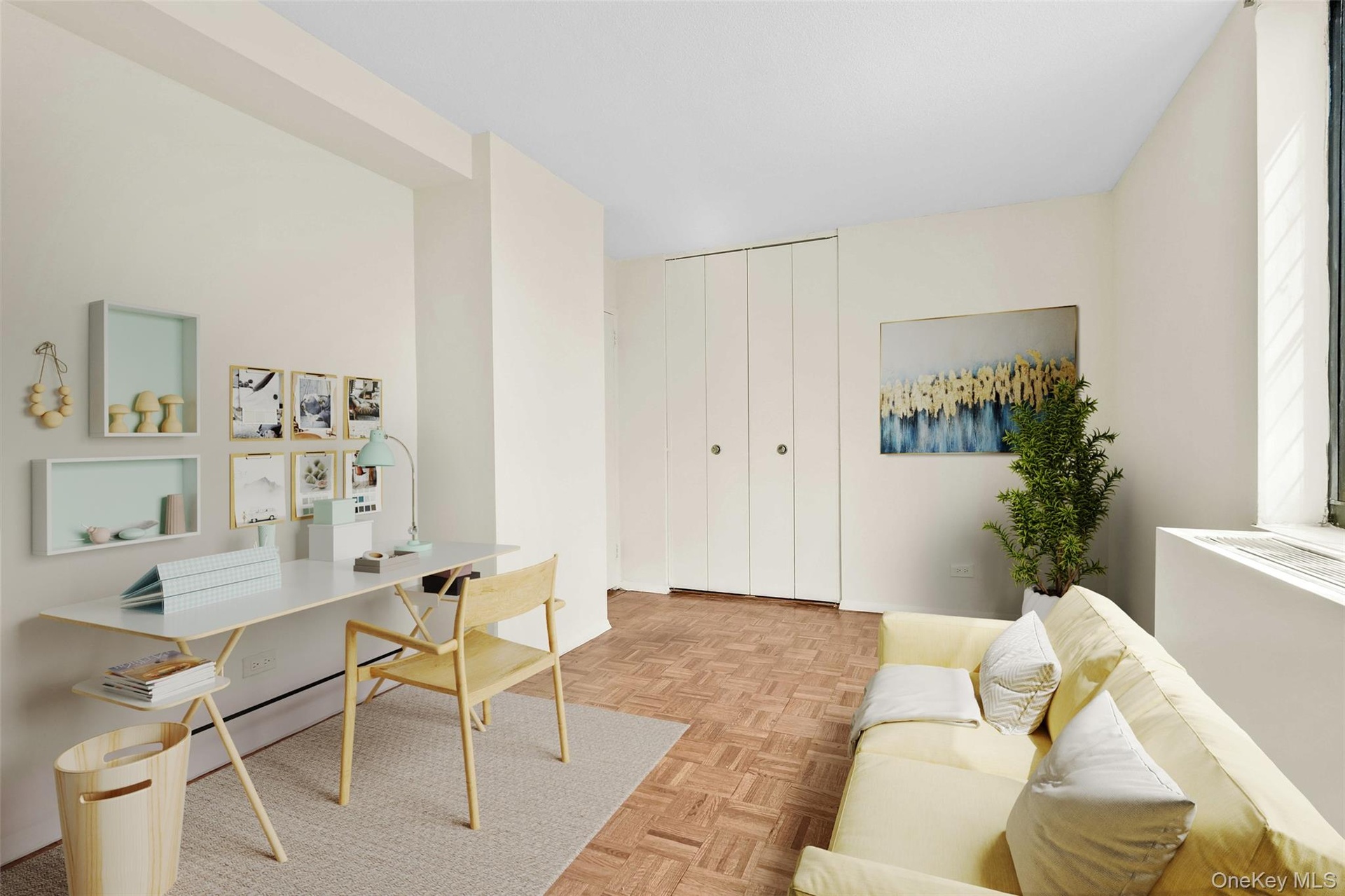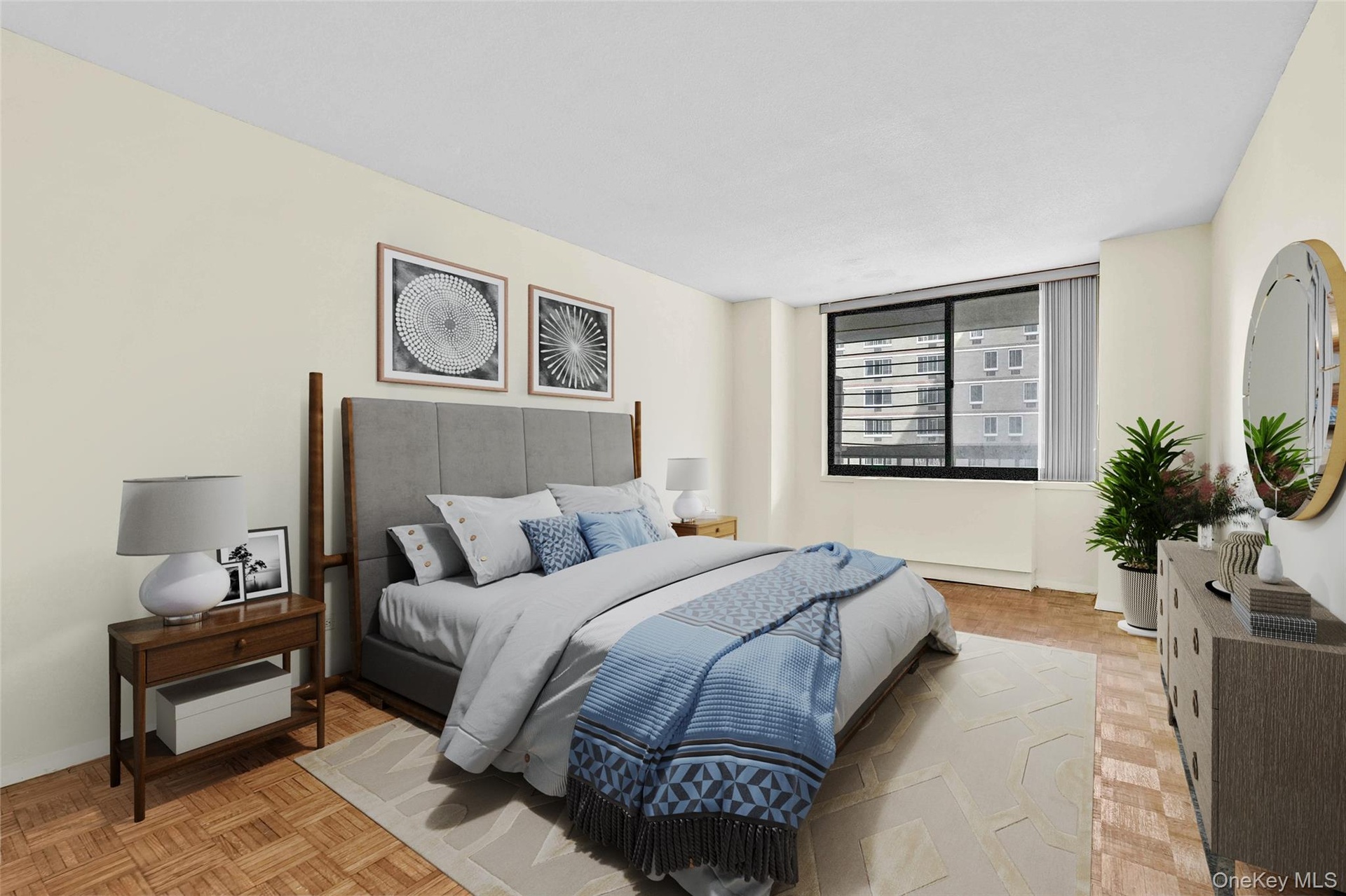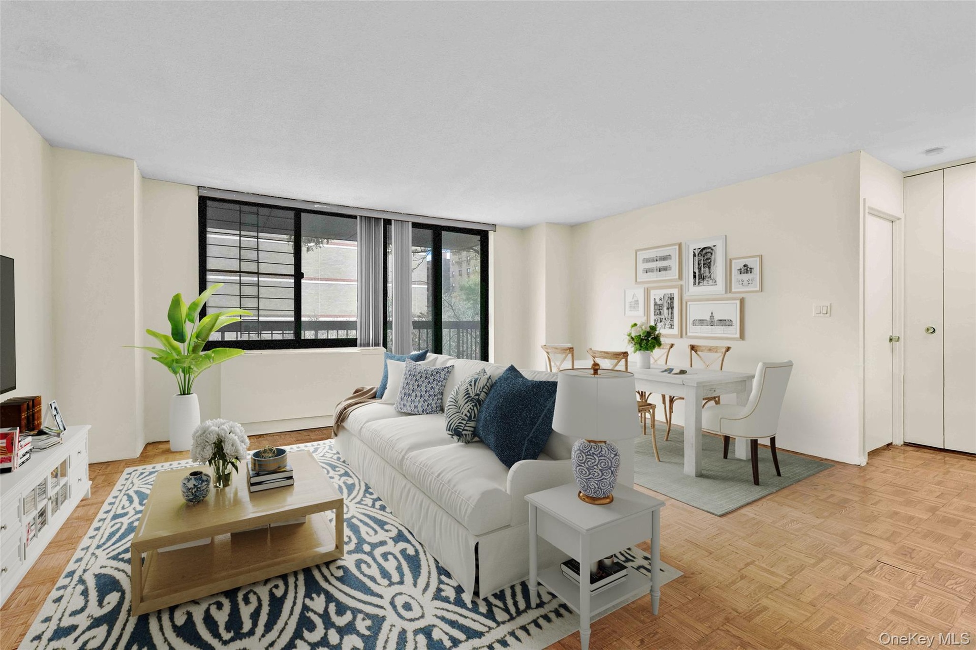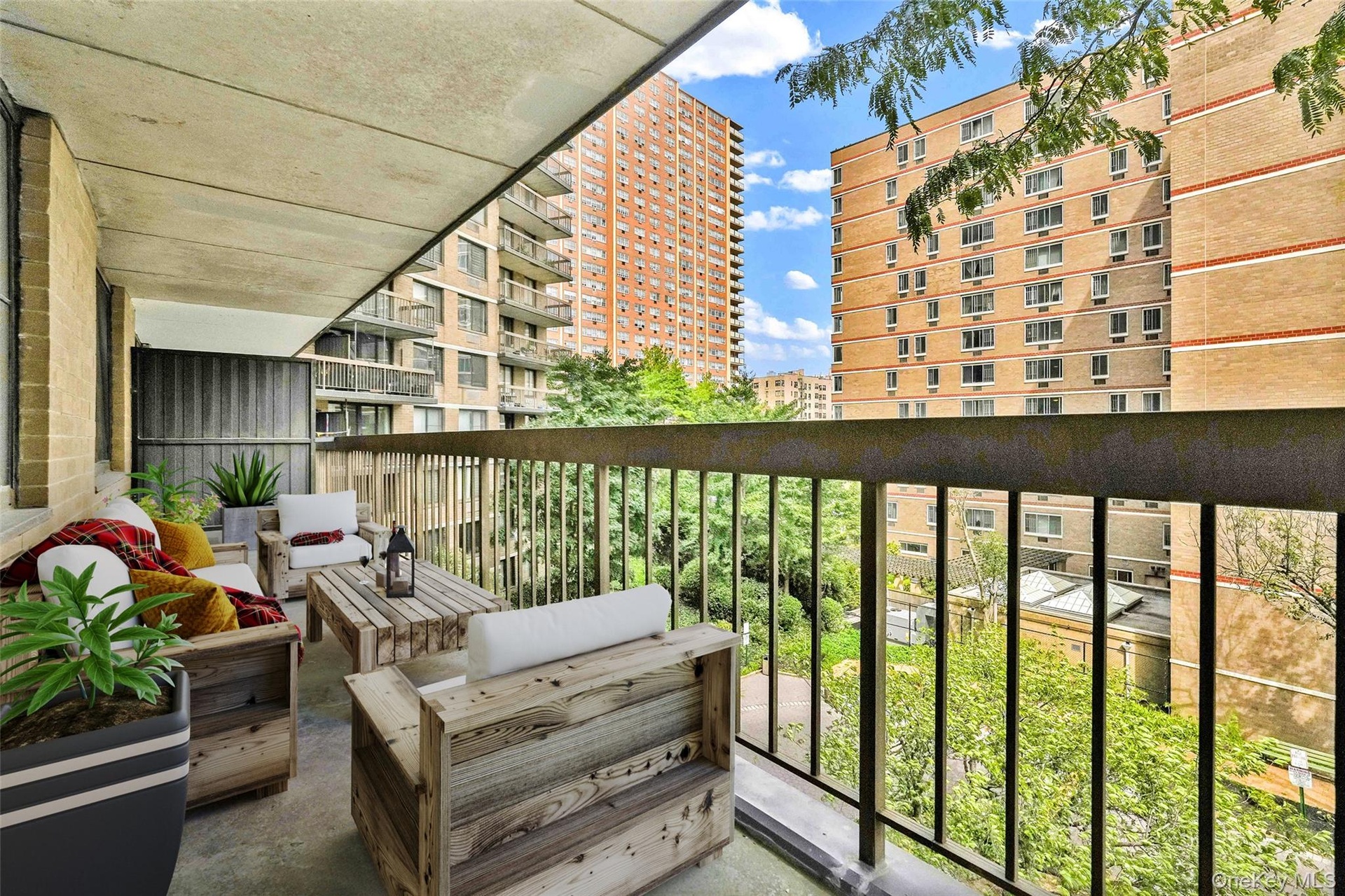Welcome to refined living in one of Flushing’s most established luxury residences. This corner 3 bedroom, 2 bathroom home offers Southeast and Northeast views from the fourth floor, along with a generous living room and dining area leading to an oversized and rare 165 sq. ft. balcony. The thoughtfully renovated kitchen features marble countertops, new cabinetry, and premium stainless steel appliances. The home is finished with parquet floors throughout. Floor-to-ceiling closets in the bedrooms, plus a coat and linen closet, provide exceptional storage. Two full baths include updated vanities. The primary bedroom boasts an en-suite bath and a walk-in closet, while the second and third bedrooms comfortably fit a queen-size bed and furniture. This layout creates both comfort and possibility. Residents enjoy the convenience of a full-time doorman, valet parking, and live-in superintendent, all moments from supermarkets, leading hospitals, and the Queens Botanical Garden.