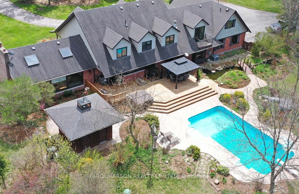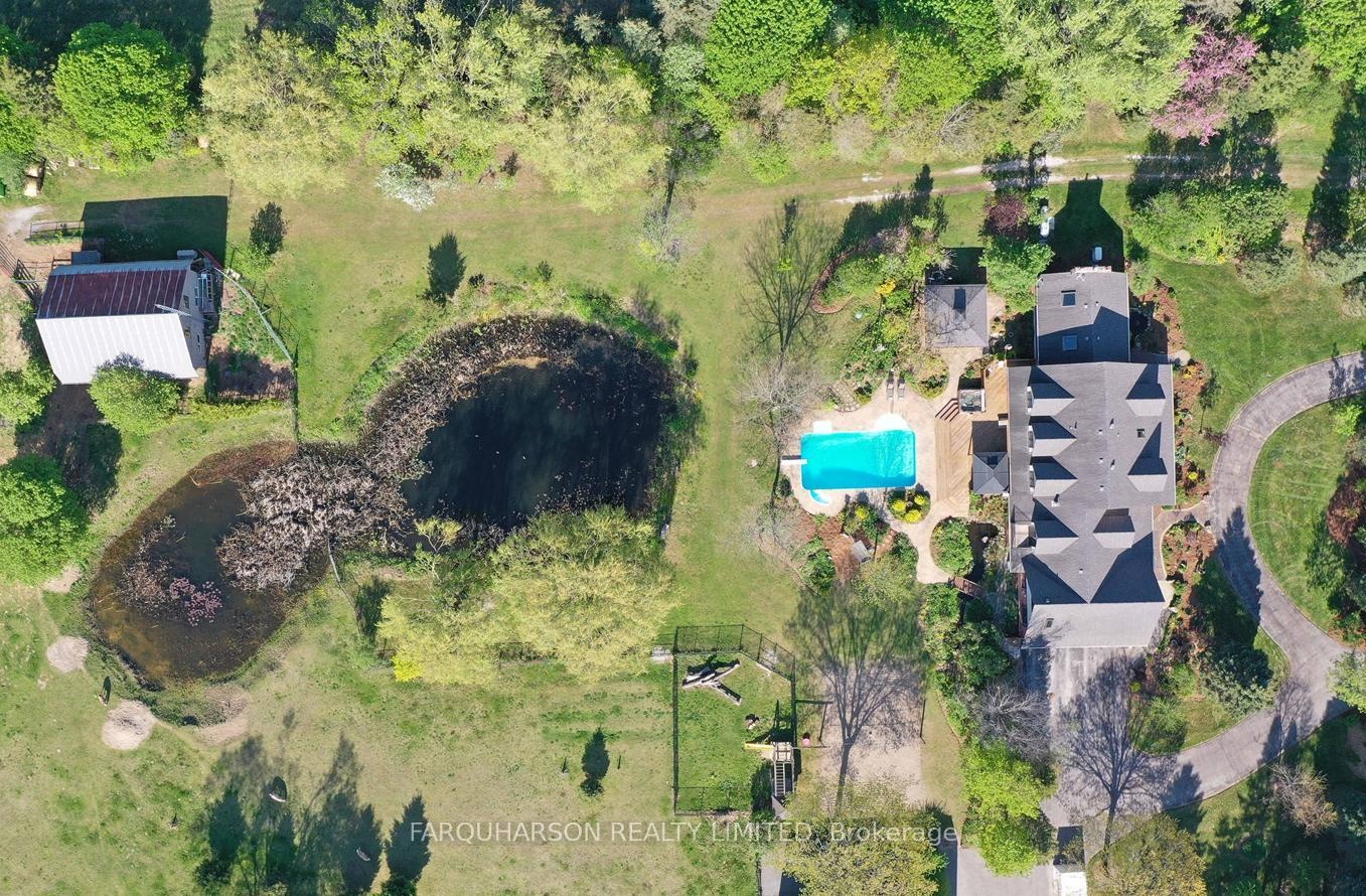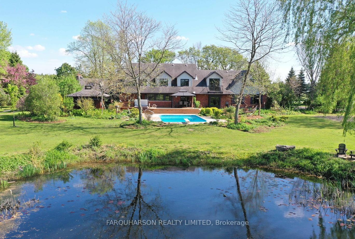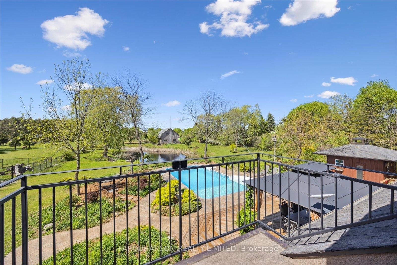 736 BALL RD - 30 ACRES | HEATED WORKSHOP | BARN | 2 PONDS | INGROUND POOL | POOL HOUSE | ESTATE HOME. Offering a stunning 30 acre country estate that blends luxury, modern functionality, and outdoor adventure, just minutes from downtown Uxbridge. Heated 42x50 Ft Workshop with 4 Garage Doors, Ample Parking, Heated Slab Floor, Air conditioning, Bathroom, and Custom Shelving. The property also includes a well-equipped barn, cross-fenced paddocks, hay fields, and two aerated, stocked ponds. Enjoy private walking trails, a sand volleyball court, or simply relax and take in the scenic surroundings. Step into a grand two-storey foyer with a sweeping curved oak staircase, heated tile floors, and a striking wrought iron chandelier. The custom Martinos kitchen is the heart of the home, featuring dual islands, granite countertops, high-end appliances, a walk-in pantry, and a double-sided fireplace. The adjacent family room offers timeless charm with ceiling beams, crown moulding, and bay window views of the ornamental pond. Perfect for entertaining, the home includes a formal dining room and a massive games room with 13-ft vaulted ceilings, skylights, Sonos speakers, a propane stove set against a stone wall, and a show-stopping Martinos sports bar. Step outside to your private backyard retreat with a heated 18' x 36' pool, stamped concrete lounge area, hot tub, and a full pool house with sauna, shower, and change room. Upstairs, the luxurious primary suite boasts vaulted ceilings, a custom built-in bed, a spa-like ensuite, and a private dressing room with balcony access. Three additional bedrooms feature hardwood floors, custom built-ins, and two upgraded bathrooms. A stylish laundry room and a pond-view office add everyday convenience. Located on a quiet dead-end street, close to shops, trails, golf, and Hwy 407, this is the lifestyle you've been waiting for. Welcome to 736 Ball Rd - where luxury meets country charm!