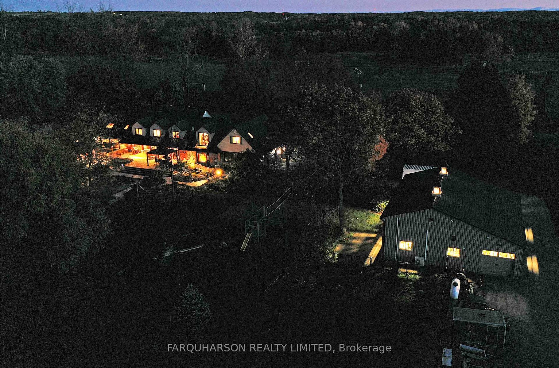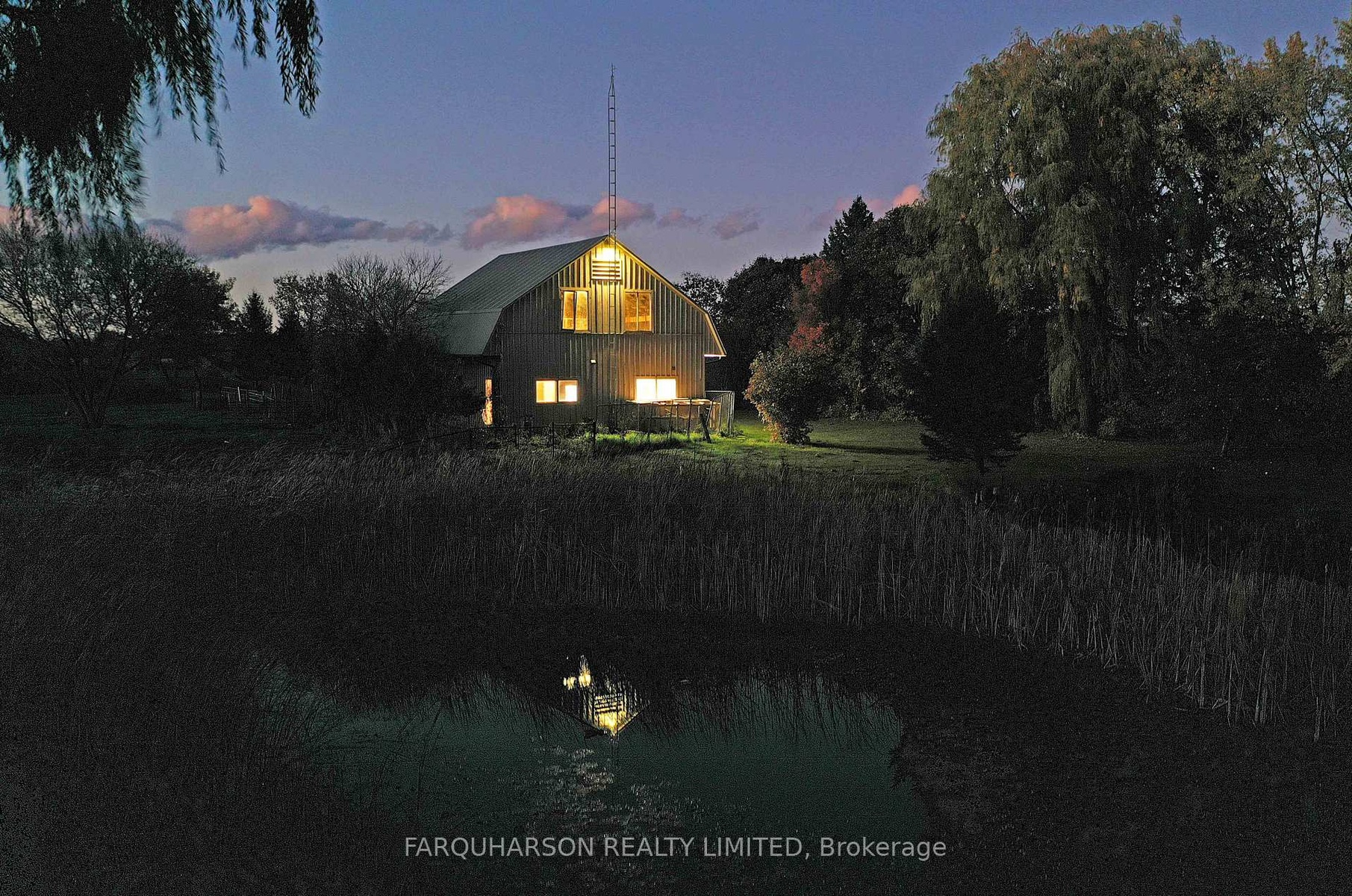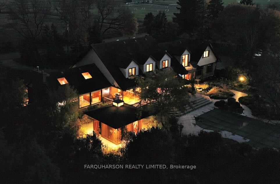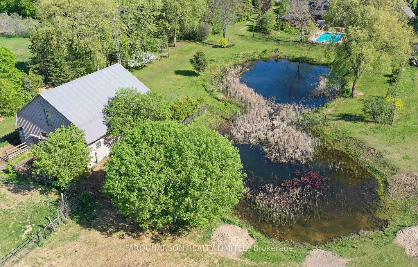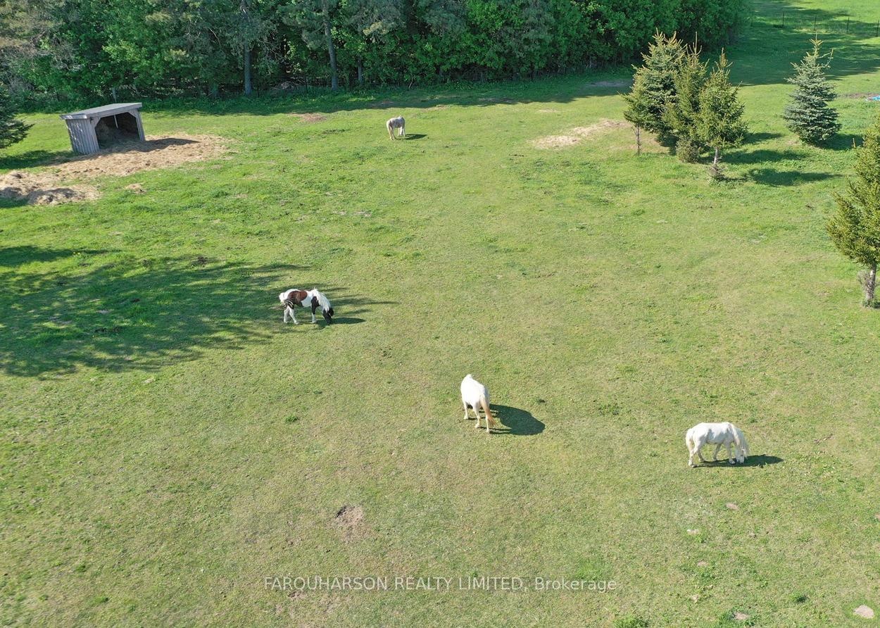 736 BALL RD - 30 ACRES | HEATED WORKSHOP | BARN | 2 PONDS | INGROUND POOL | POOL HOUSE | ESTATE HOME. Offering a stunning 30 acre country estate that blends luxury, modern functionality, and outdoor adventure, just minutes from downtown Uxbridge. Heated 42x50 Ft Workshop with 4 Garage Doors, Ample Parking, Heated Slab Floor, Air conditioning, Bathroom, and Custom Shelving. The property also includes a well-equipped barn, cross-fenced paddocks, hay fields, and two aerated, stocked ponds. Enjoy private walking trails, a sand volleyball court, or simply relax and take in the scenic surroundings. Step into a grand two-storey foyer with a sweeping curved oak staircase, heated tile floors, and a striking wrought iron chandelier. The custom Martinos kitchen is the heart of the home, featuring dual islands, granite countertops, high-end appliances, a walk-in pantry, and a double-sided fireplace. The adjacent family room offers timeless charm with ceiling beams, crown moulding, and bay window views of the ornamental pond. Perfect for entertaining, the home includes a formal dining room and a massive games room with 13-ft vaulted ceilings, skylights, Sonos speakers, a propane stove set against a stone wall, and a show-stopping Martinos sports bar. Step outside to your private backyard retreat with a heated 18' x 36' pool, stamped concrete lounge area, hot tub, and a full pool house with sauna, shower, and change room. Upstairs, the luxurious primary suite boasts vaulted ceilings, a custom built-in bed, a spa-like ensuite, and a private dressing room with balcony access. Three additional bedrooms feature hardwood floors, custom built-ins, and two upgraded bathrooms. A stylish laundry room and a pond-view office add everyday convenience. Located on a quiet dead-end street, close to shops, trails, golf, and Hwy 407, this is the lifestyle you've been waiting for. Welcome to 736 Ball Rd - where luxury meets country charm!