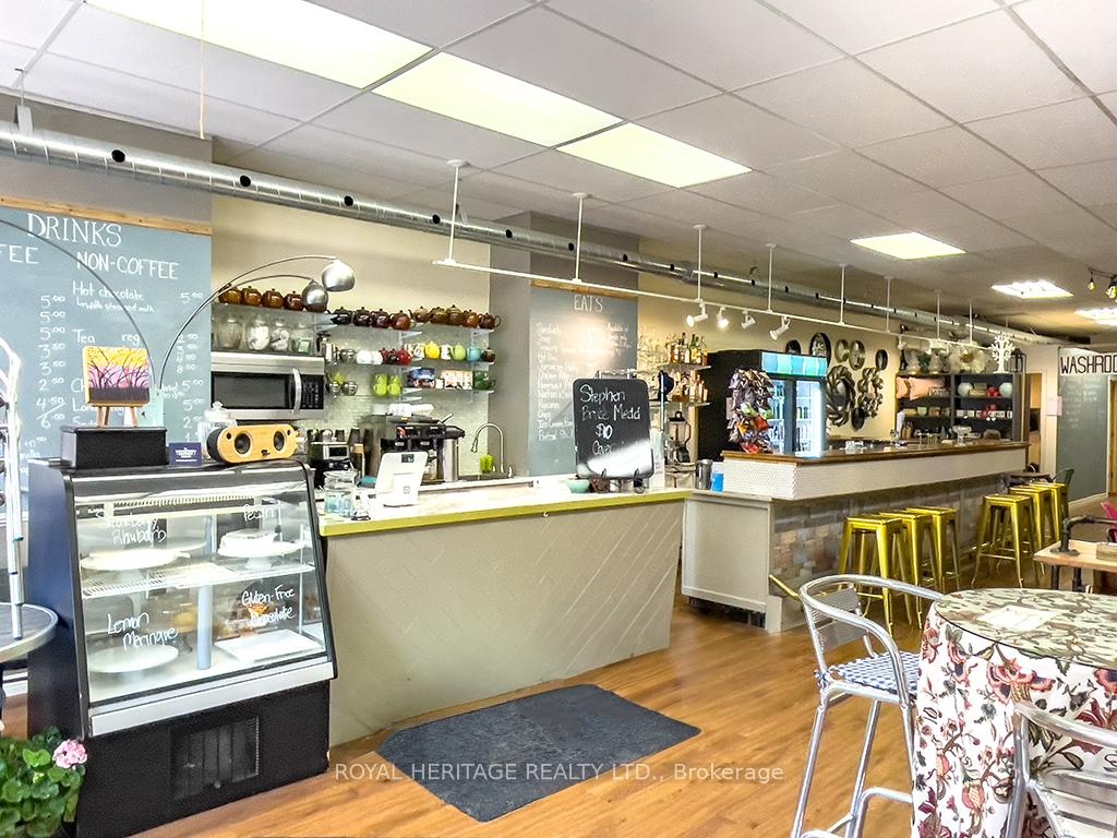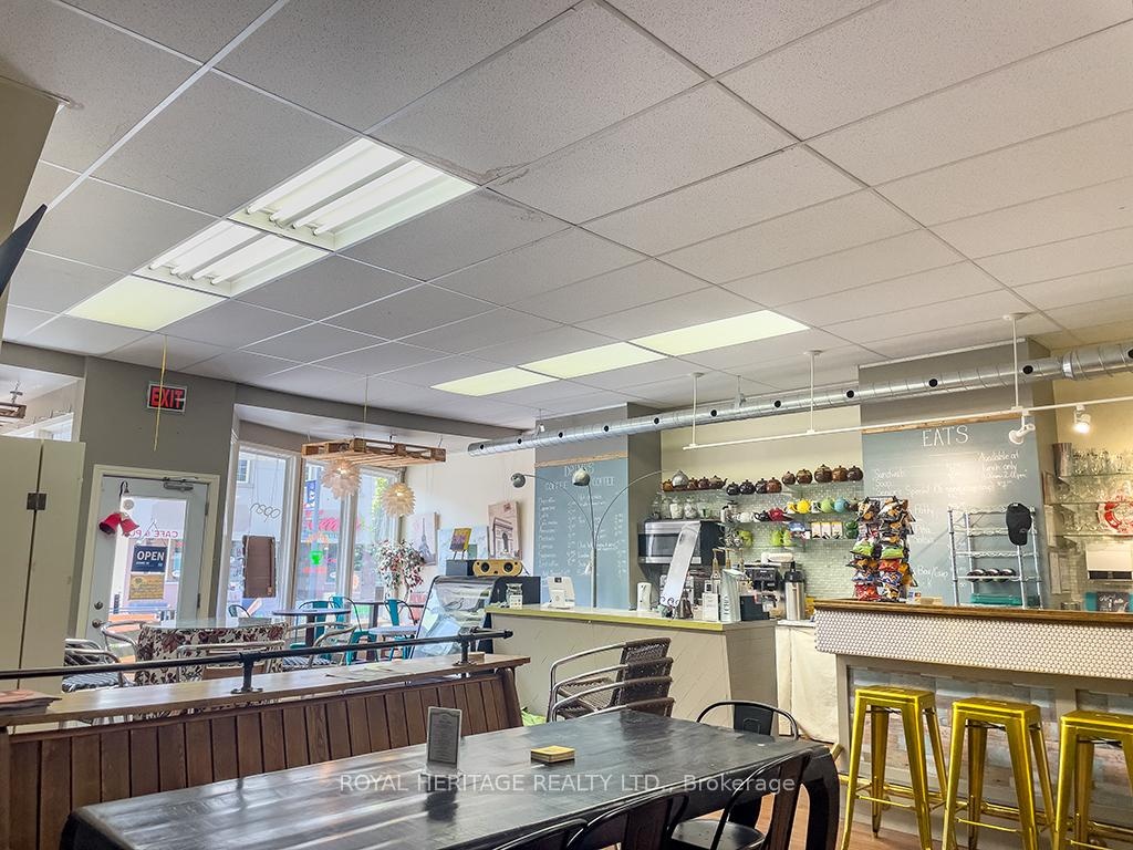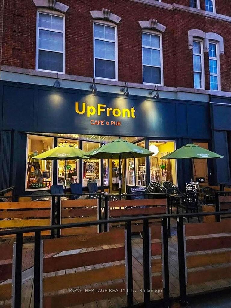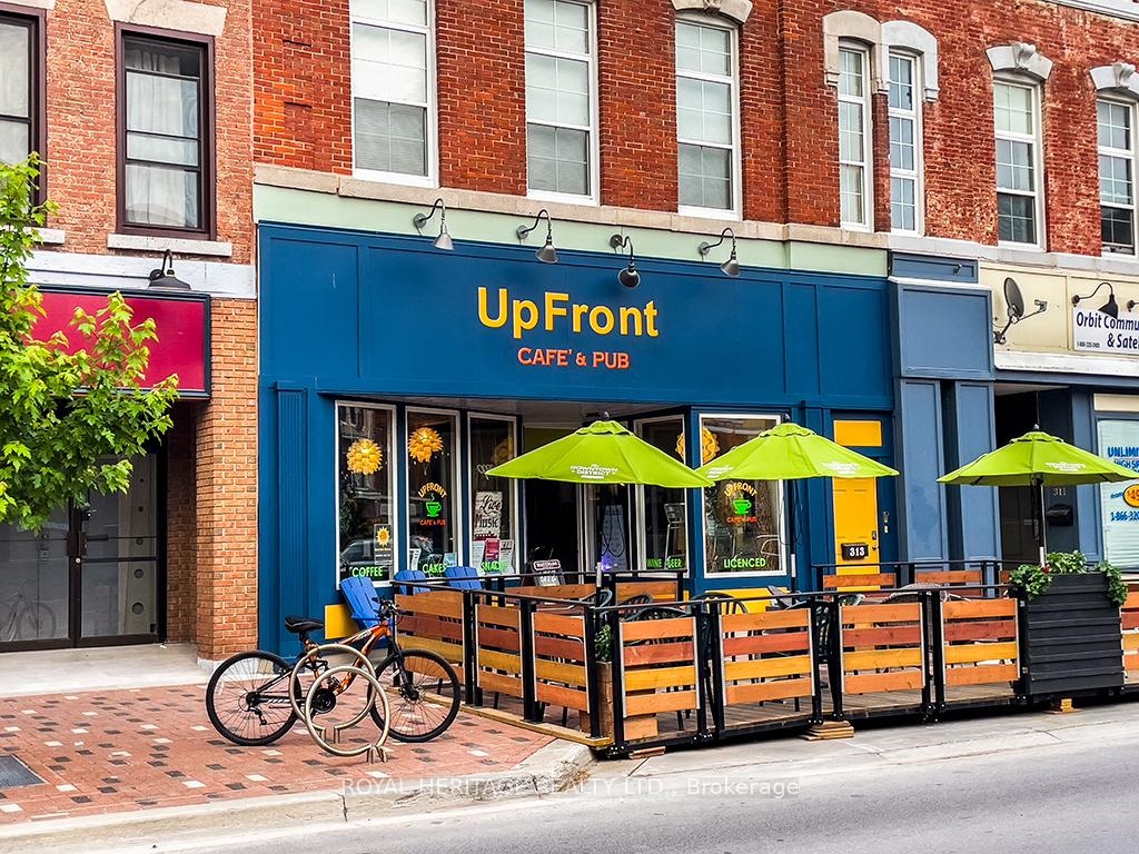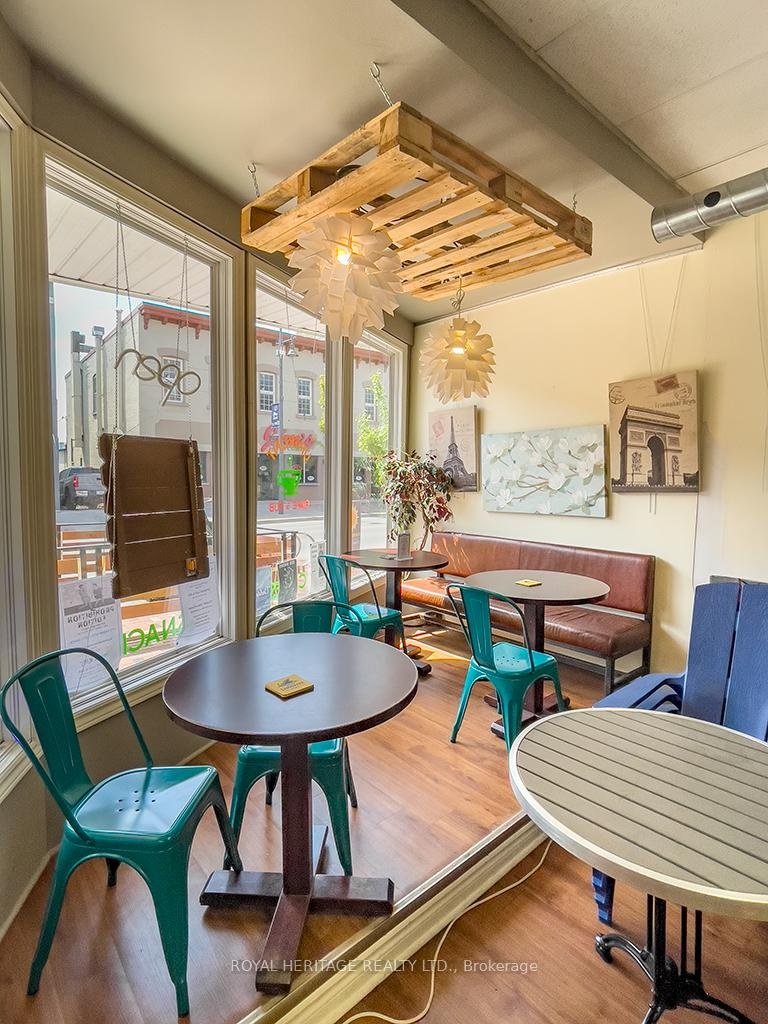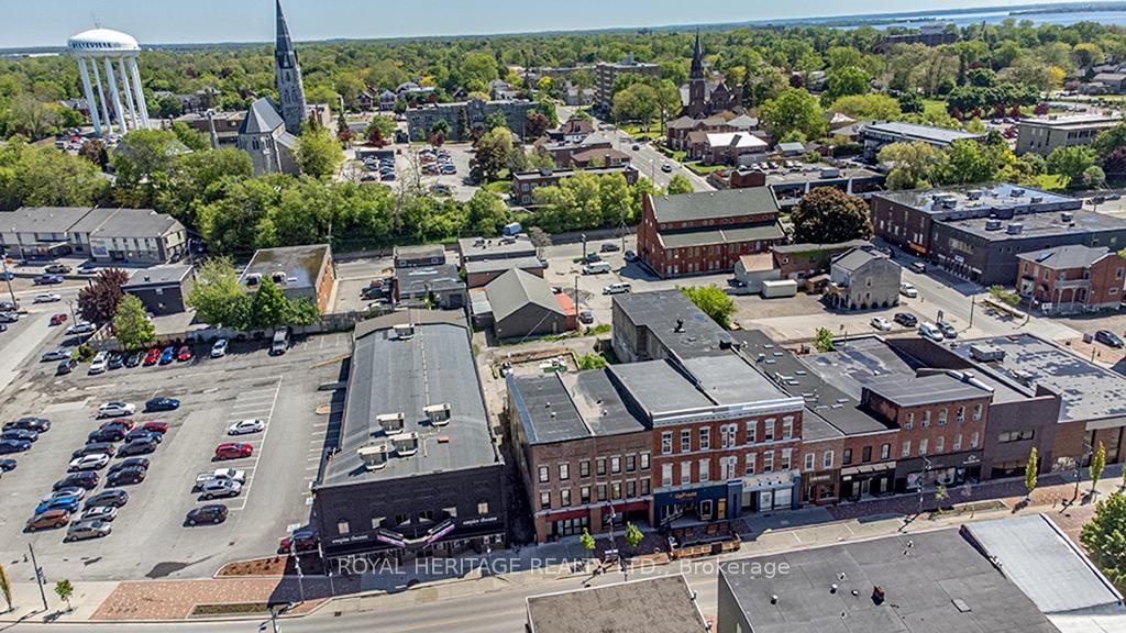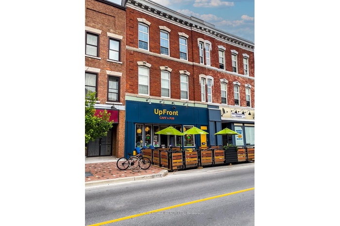 One of Belleville's original downtown landmarks, built in 1870 for William Burroughs, carefully restored & maintained. 3 storey brick beauty boasts 10 foot ceilings on the 1st & 2nd floor & 15 feet on the 3rd. Brand new heat pump, 2025, full facade renewal 2017, new HVAC & electrical 2017, new bathrooms, kitchen, counter area 2023, new roofs 2018, 2nd floor renovation 2019-2022. Complete floor levelling & resurfacing , kitchen/2 full baths, walls & ceilings, electrical, plumbing & heating, all doors & most windows. The 1st floor comprises over 2000 sf w/ a 30 seat patio from May - October, 3 new 2-piece baths, 1 wheelchair accessible, 2024. A new washup-kitchen w/commercial dishwasher, 2 compartment sink & sprayer, a chest freezer, warming oven, wire shelving units filled w/dishware, appliances, tablecloths & restaurant supplies (included with the business) A store room adjacent to the kitchen could easily be converted into additional commercial space w/a walk-out to the back 4-car parking area & new metal shed. An office is accessible from the store room or hallway behind bathrooms, The cafe is equipped w/a large beer cooler, 2 draft coolers, a pastry display fridge 7 a mini fridge. 16 foot oak-L-shaped bar has built-in shelving & a brass rail. An additional 8' counter on wheels completes the service area. Behind the counters are additional work spaces with built-in sinks, a commercial Bunn coffee maker, an LG microwave & assorted small appliances. All furniture is included with the business, w/the restaurant inventory & transferable licenses. Modern old world charm describes the 2nd floor apartment tastefully decorated in designer colours, 8 ft tall windows & over 50 pot lights. At the rear is a back hallway 2020, w/plans for a future entrance, of outside stairs, laundry & storage. On the third floor there is 1,875 sq ft of additional space w/4 windows that over look the Moira River, easily converted to 2-5 rental apartments.