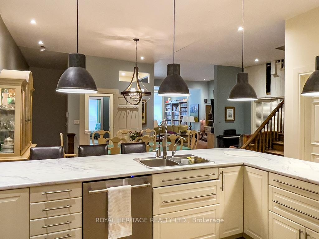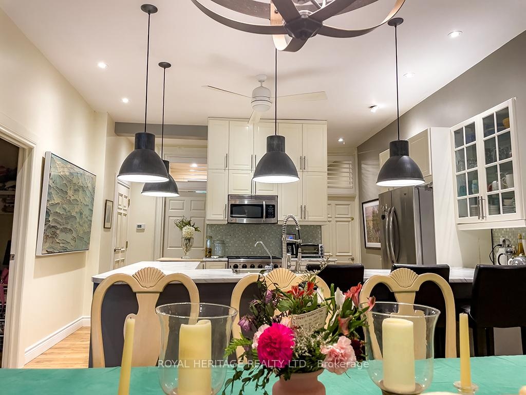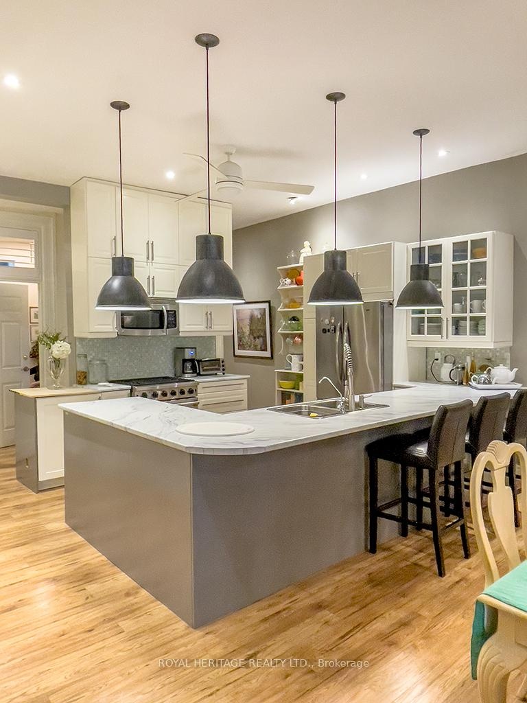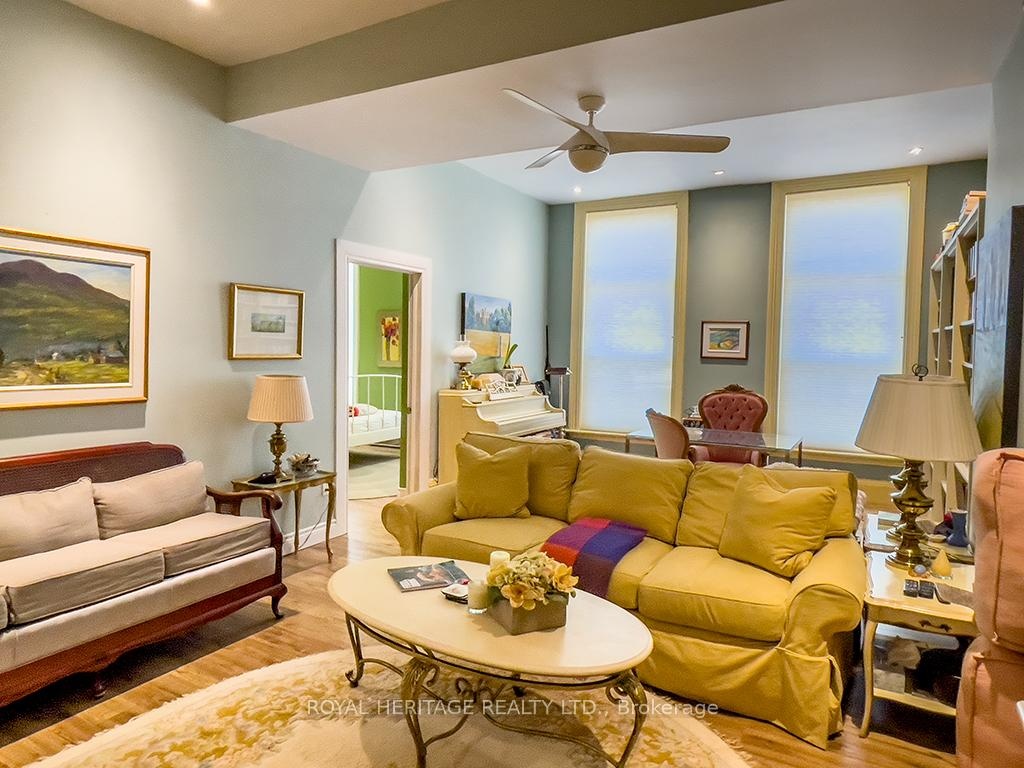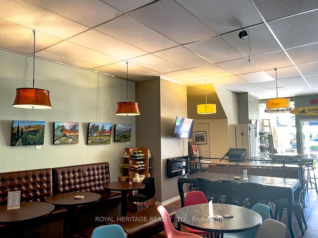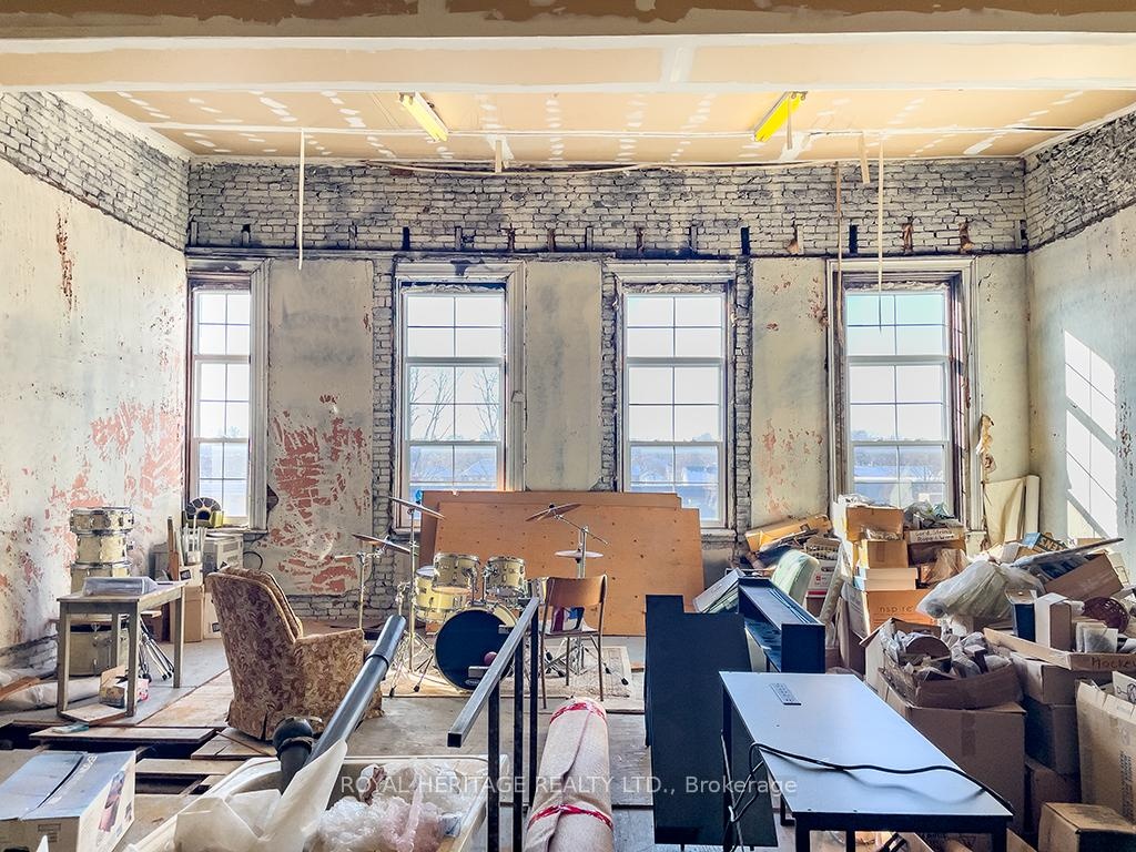 One of Belleville's original downtown landmarks, built in 1870 for William Burroughs, carefully restored & maintained. 3 storey brick beauty boasts 10 foot ceilings on the 1st & 2nd floor & 15 feet on the 3rd. Brand new heat pump, 2025, full facade renewal 2017, new HVAC & electrical 2017, new bathrooms, kitchen, counter area 2023, new roofs 2018, 2nd floor renovation 2019-2022. Complete floor levelling & resurfacing , kitchen/2 full baths, walls & ceilings, electrical, plumbing & heating, all doors & most windows. The 1st floor comprises over 2000 sf w/ a 30 seat patio from May - October, 3 new 2-piece baths, 1 wheelchair accessible, 2024. A new washup-kitchen w/commercial dishwasher, 2 compartment sink & sprayer, a chest freezer, warming oven, wire shelving units filled w/dishware, appliances, tablecloths & restaurant supplies (included with the business) A store room adjacent to the kitchen could easily be converted into additional commercial space w/a walk-out to the back 4-car parking area & new metal shed. An office is accessible from the store room or hallway behind bathrooms, The cafe is equipped w/a large beer cooler, 2 draft coolers, a pastry display fridge 7 a mini fridge. 16 foot oak-L-shaped bar has built-in shelving & a brass rail. An additional 8' counter on wheels completes the service area. Behind the counters are additional work spaces with built-in sinks, a commercial Bunn coffee maker, an LG microwave & assorted small appliances. All furniture is included with the business, w/the restaurant inventory & transferable licenses. Modern old world charm describes the 2nd floor apartment tastefully decorated in designer colours, 8 ft tall windows & over 50 pot lights. At the rear is a back hallway 2020, w/plans for a future entrance, of outside stairs, laundry & storage. On the third floor there is 1,875 sq ft of additional space w/4 windows that over look the Moira River, easily converted to 2-5 rental apartments.