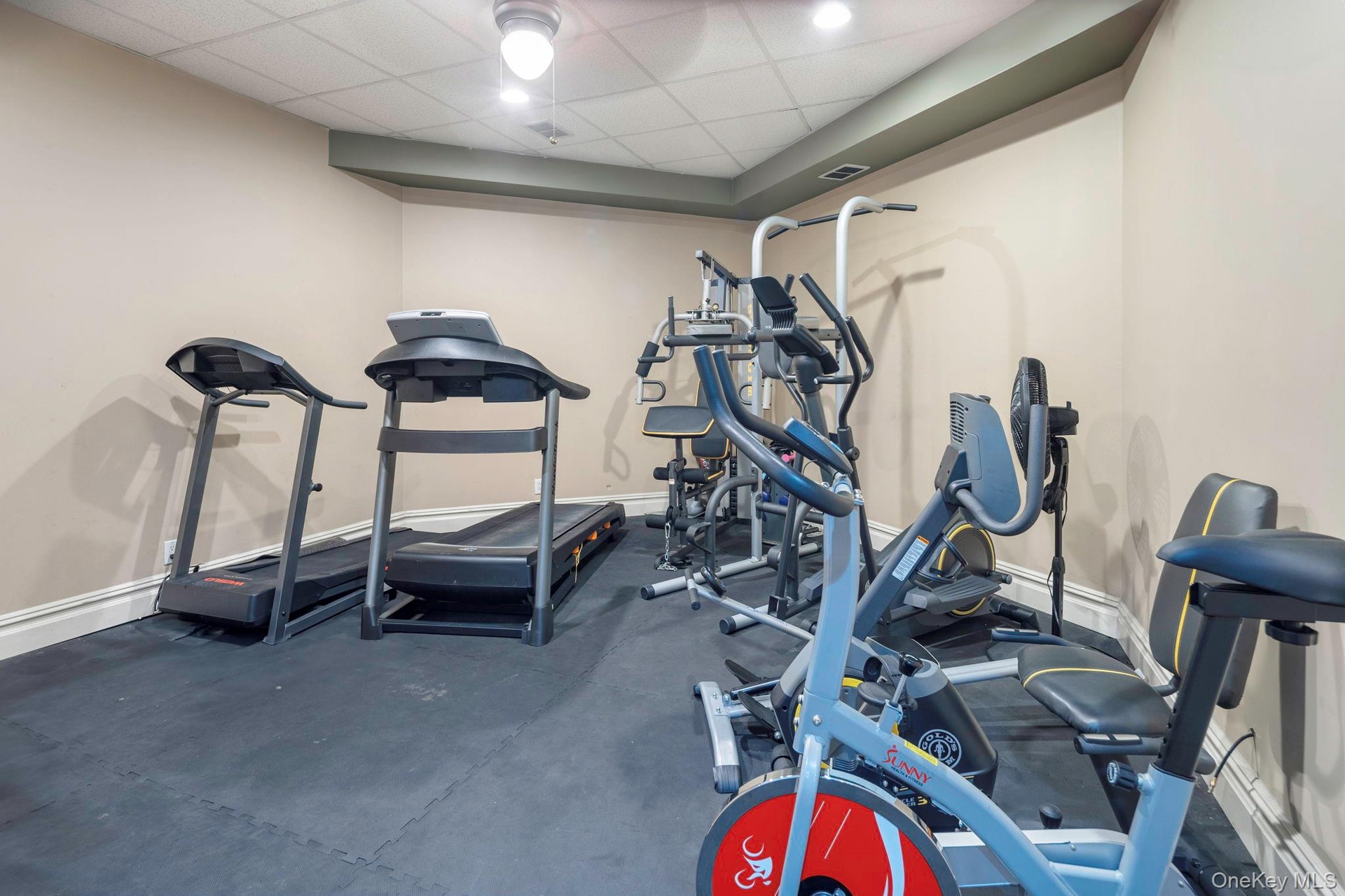 - Large recreation room in lower level with movie screen and doors out to the yard.