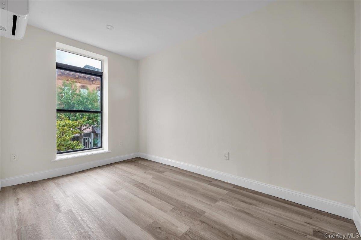 - Spare room featuring a wall mounted AC and light wood-style floors