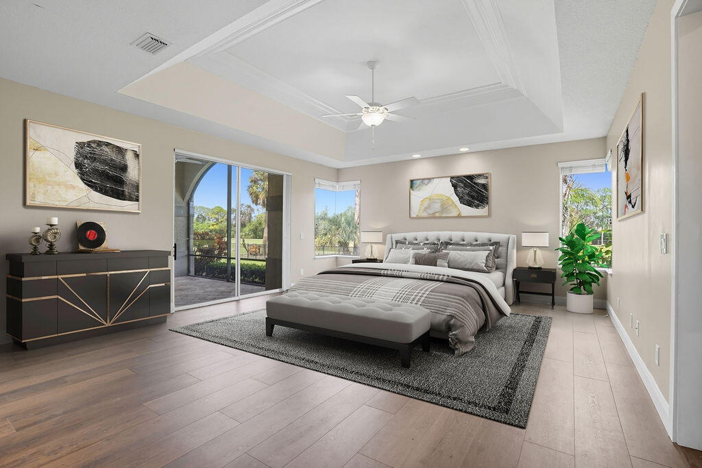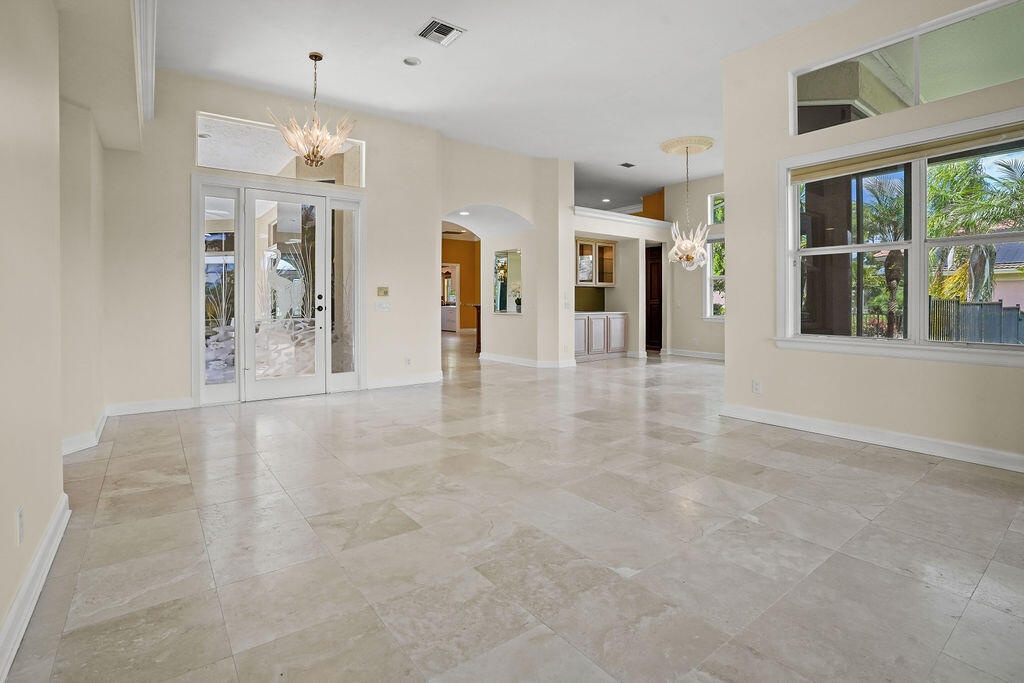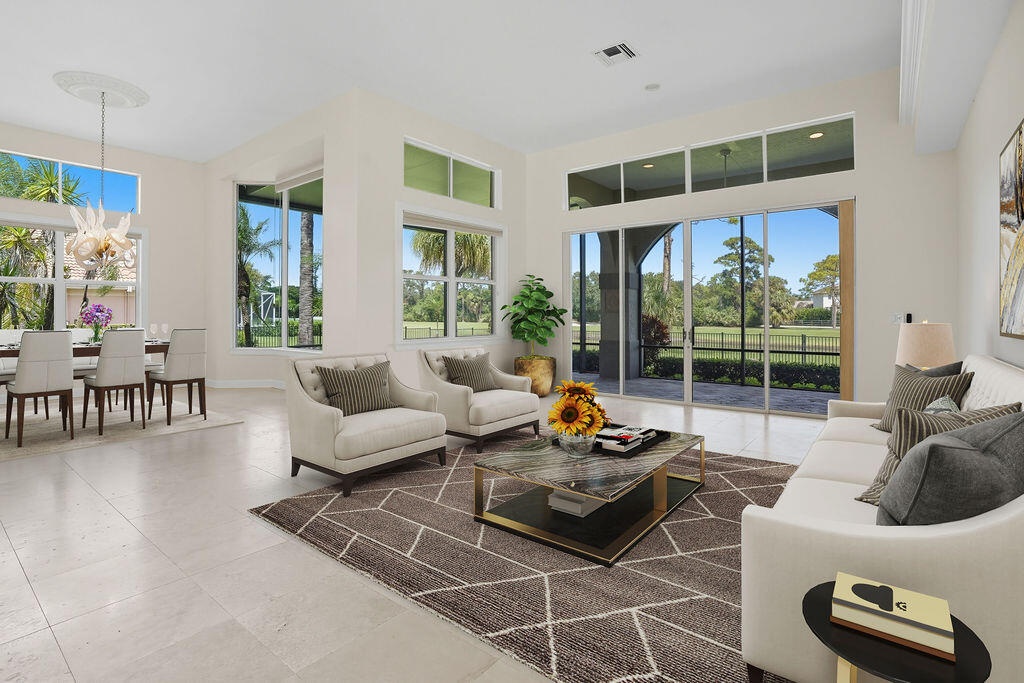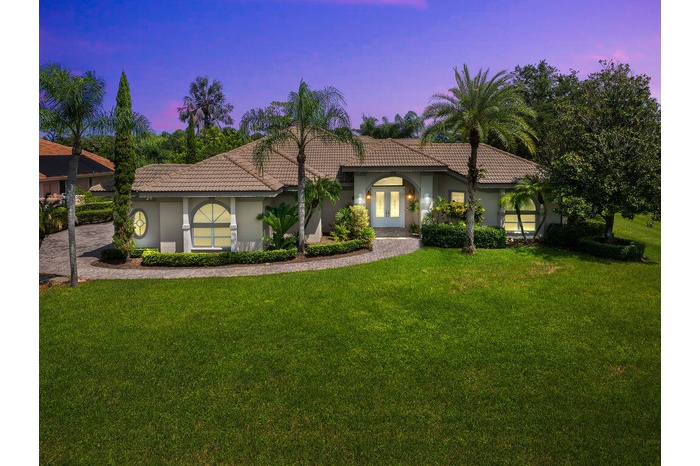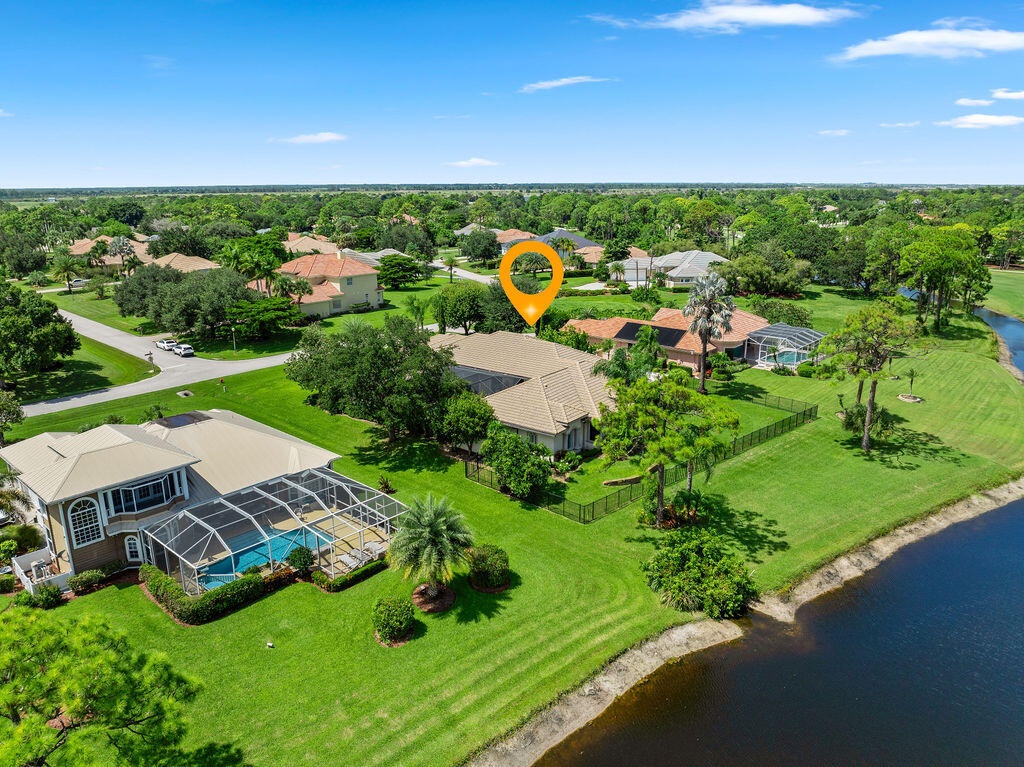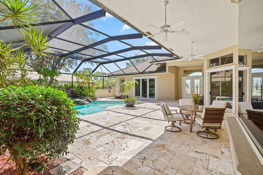 DescriptionWelcome to 10255 SW Stones Throw Terrace, an exceptional residence located in the highly sought-after gated golf community of Cobblestone in Palm City. This expansive courtyard pool home is designed for both elegance and versatility, offering a 2 bedroom, 2.5 bath main house along with a fully renovated guest house featuring its own bathroom and kitchenette.At the heart of the home is a freeform heated pool with a screened enclosure, perfect for entertaining or enjoying peaceful Florida evenings. A separate screened lanai extends the living space and provides sweeping views of the 8th hole, tranquil lake, and golf course, where you can often spot native wildlife from birds to deer. Inside, the main residence boasts an expansive floor plan with volume ceilings, large butted windows allow