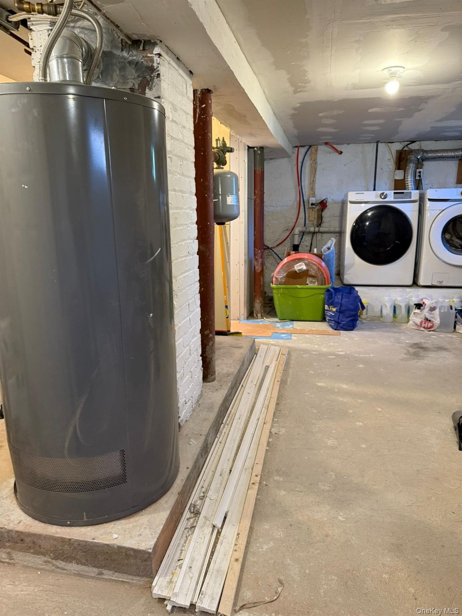 - Unfinished below grade area with electric water heater and independent washer and dryer