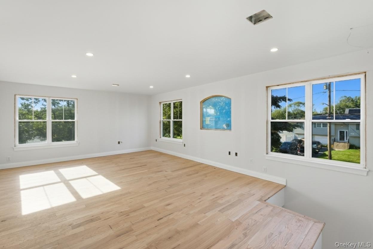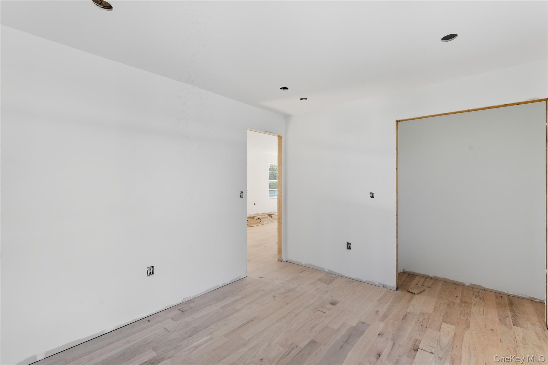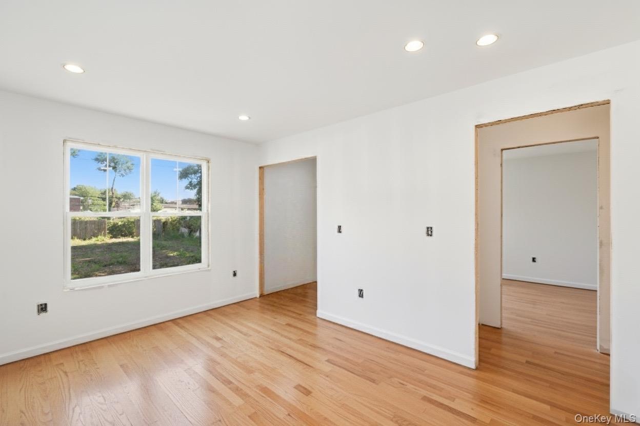 - Unfurnished room with recessed lighting and light wood-style flooring
