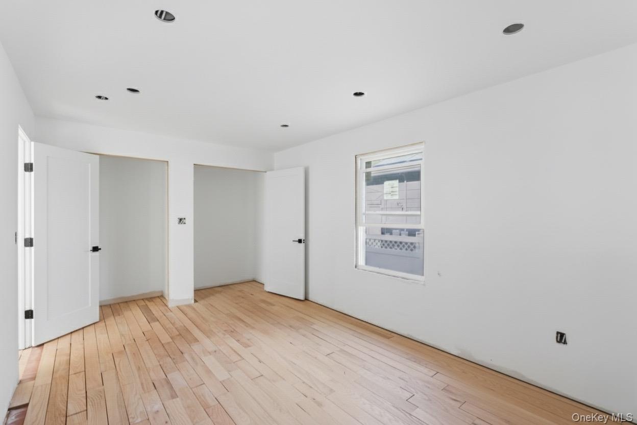 - Unfurnished bedroom featuring light wood-style floors and a closet