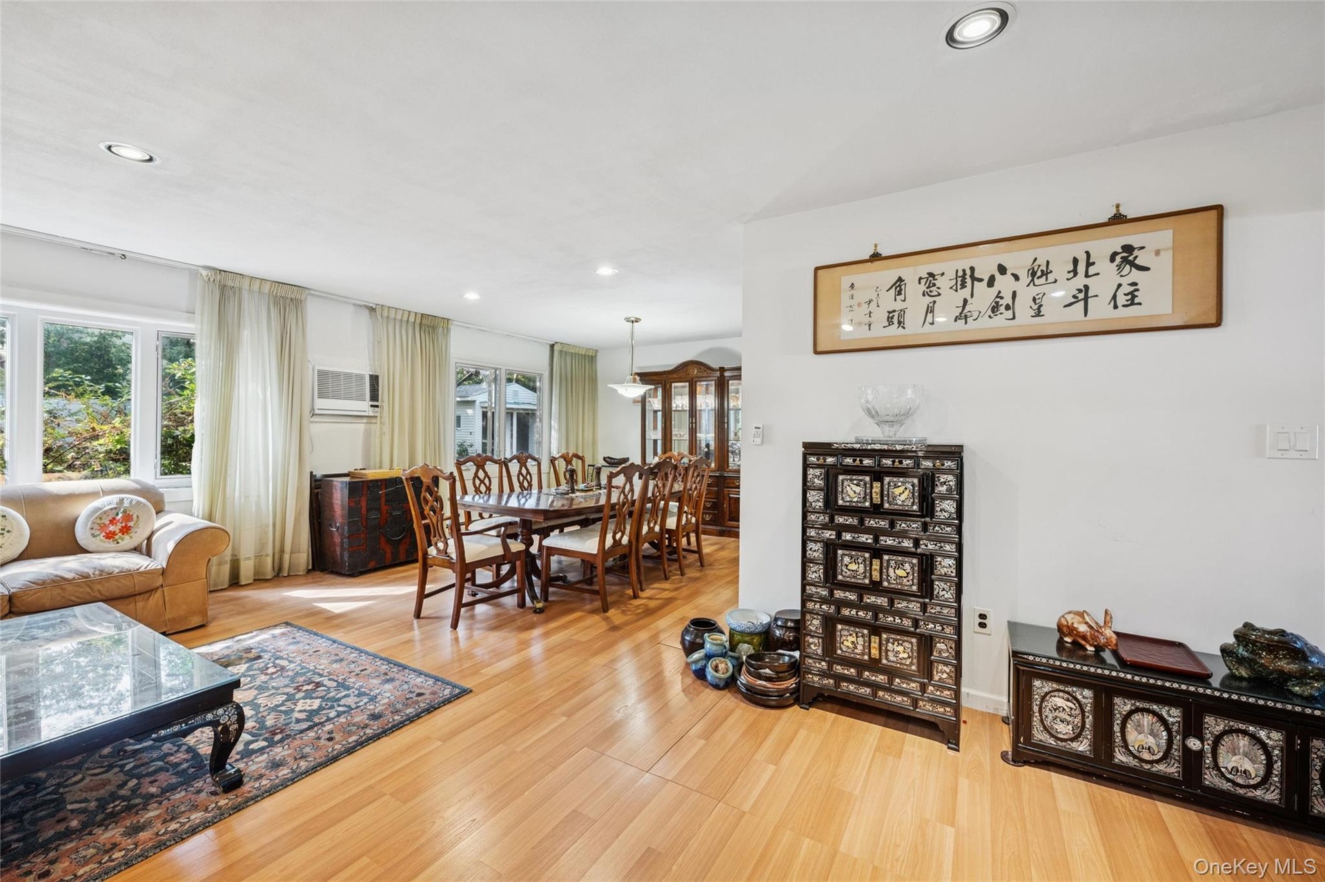 - Foyer with recessed lighting, light wood finished floors, and a wall mounted AC