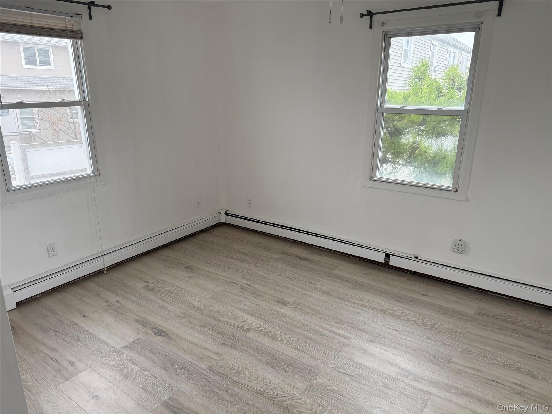 - Spare room featuring a baseboard radiator and light wood-type flooring