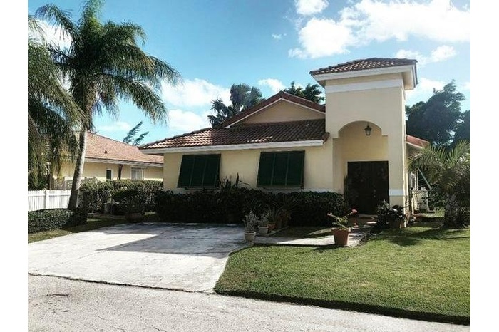 This well maintained Bimini model home is situated in the private gated community of Treasure Cove. It is an excellent starter home for a young family or a family looking to downsize. The home boasts 3 bedrooms and 2 full bathrooms and beautiful Mediterranean style porcelain tiles. The kitchen has been upgraded with wood cabinets and granite countertops. A new washer and dryer, full standby generator, new central air conditioning, Bahama style hurricane shutters are additional features offered with this charming home. The partially enclosed yard boasts a covered brick tiled patio. The gated community of Treasure Cove provides 24 hour security, a private beach, children’s playground and is within close proximity to St. Andrew's International school and grocery stores.