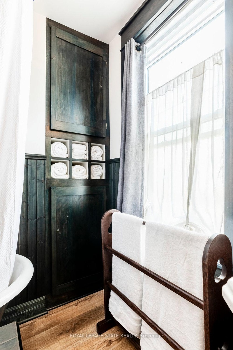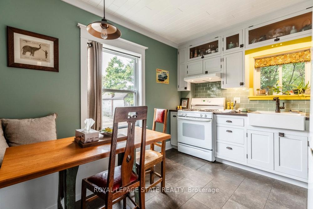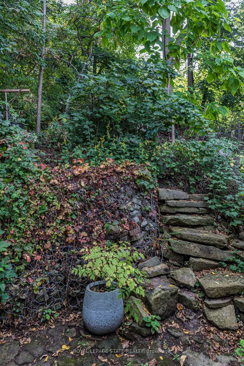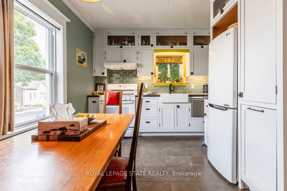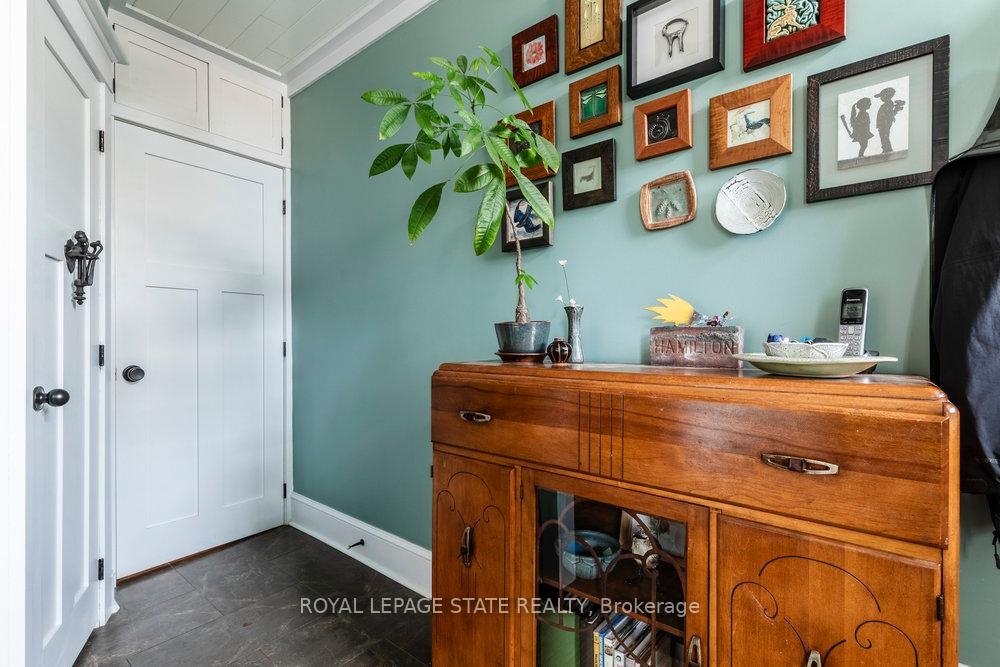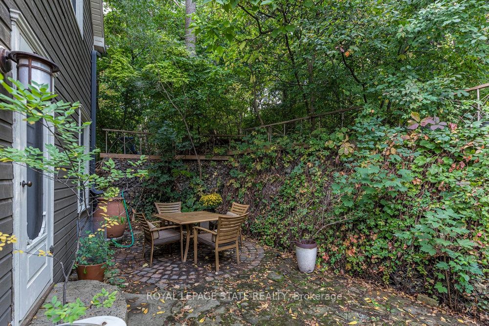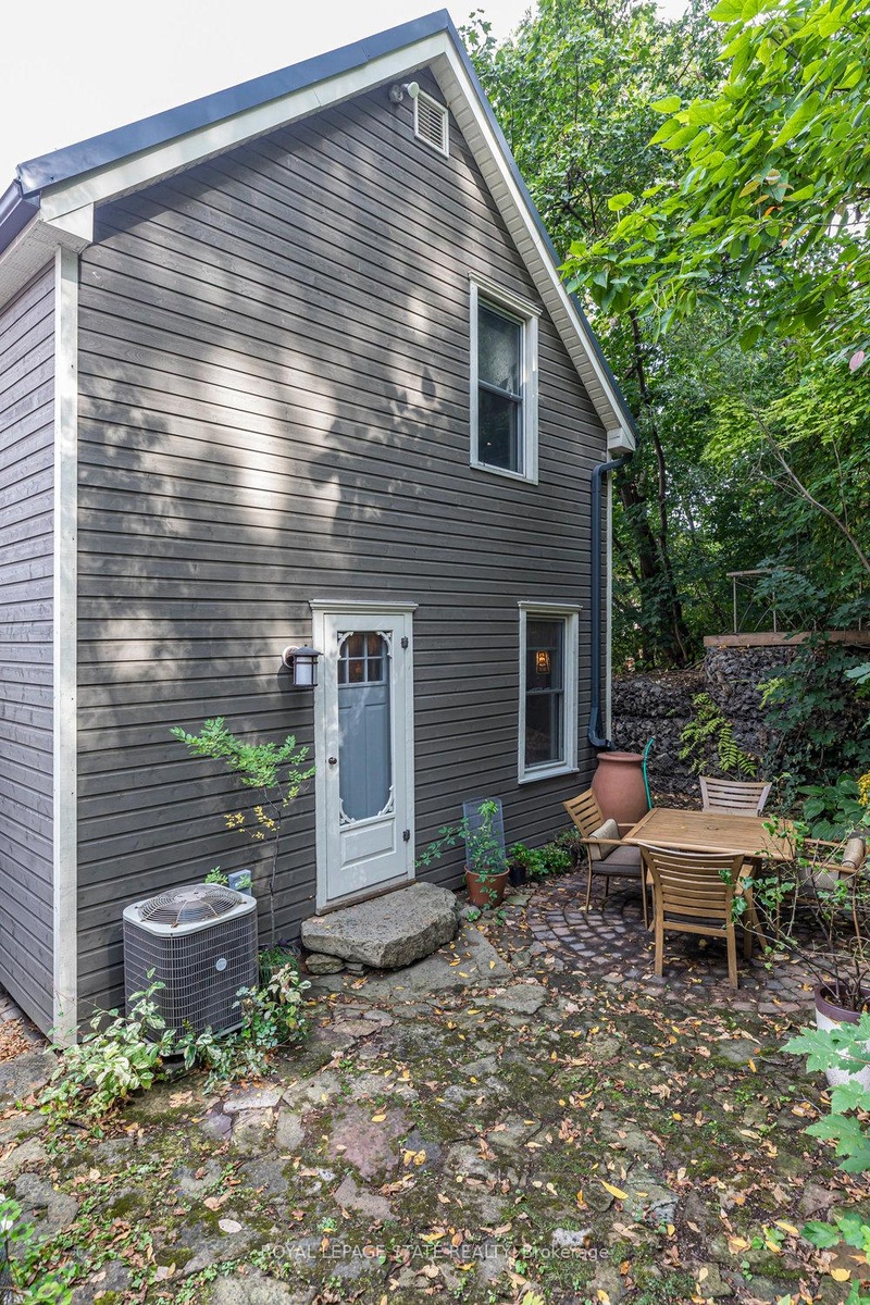 Outstanding transformation inside & out with no stone left unturned! Tucked away at the base of the escarpment, this thoughtfully renovated 2-storey, 2-bedroom, 1-bath home is full of character, creativity, and modern convenience. From its clever storage solutions to its private secret garden patio, every detail has been carefully designed to make the most of both space and style. Step inside to discover an updated kitchen thats as functional as it is beautiful, featuring built-in banquette seating with custom cushions (and hidden storage!), a pull-out butcher block for added prep space, subway tile backsplash, and generous cabinetry. The living room offers a walkout to a stunning interlock and flagstone patio a private oasis perfect for morning coffee or evening gatherings w/ built-ins & glass display shelves to add ambiance and charm. Upstairs, the primary bedroom delights with a hidden secret closet concealed behind a bookshelf, while the elegant 4-piece bathroom features a classic clawfoot tub and pedestal sink for a touch of vintage luxury. Additional highlights include two-car private parking a rare and valuable find and a unique sense of privacy and tranquility. This one-of-a-kind home offers the perfect blend of historic charm, smart updates, and whimsical details. This Corktown gem is steps to St. Jos, the GO & amenities. A must-see for those seeking something truly special.