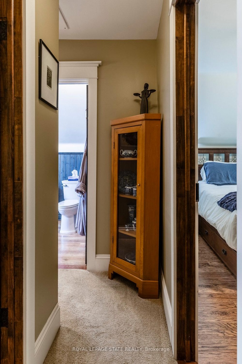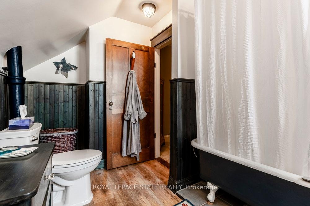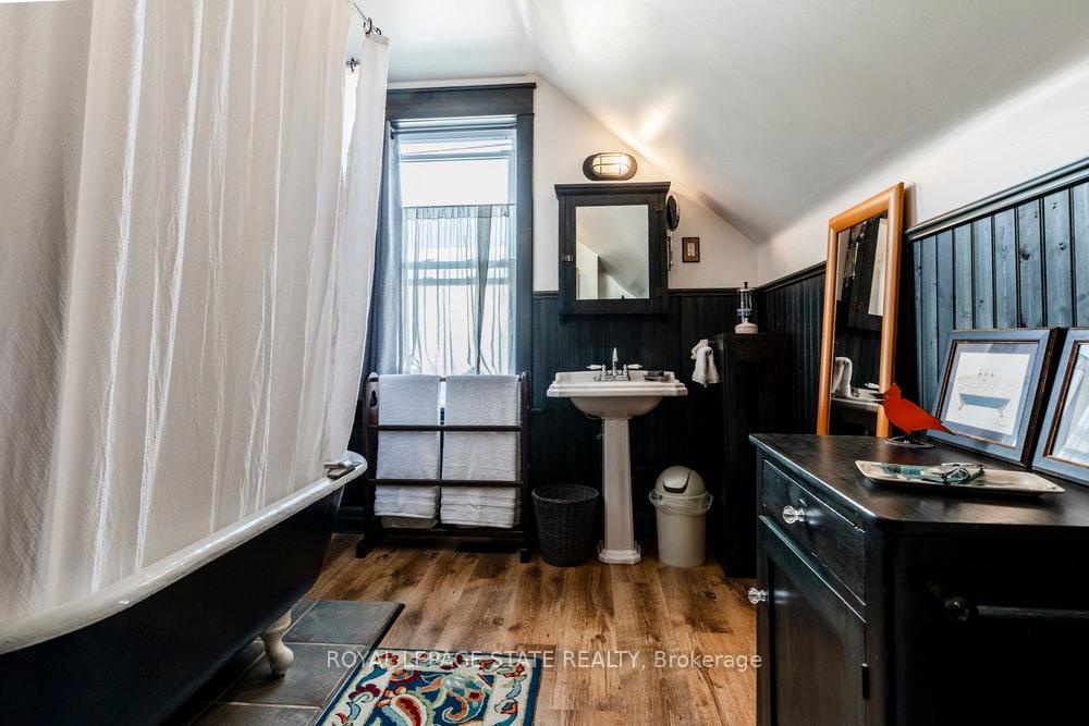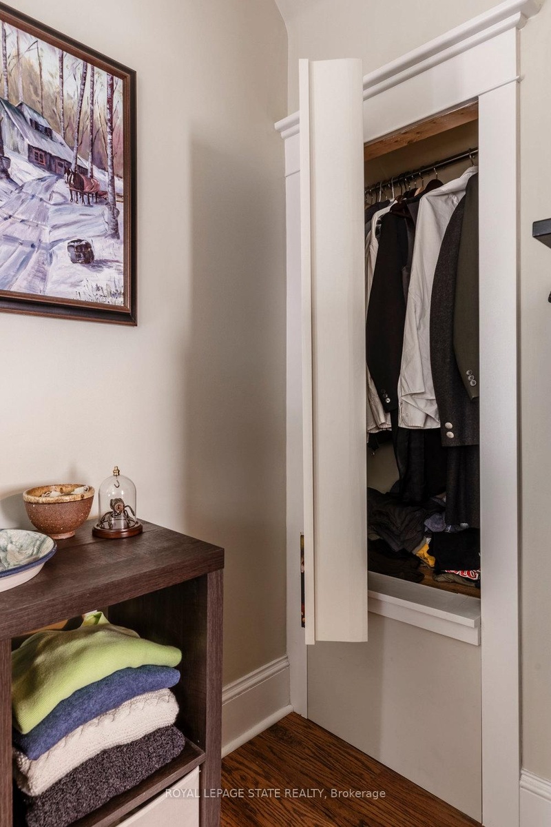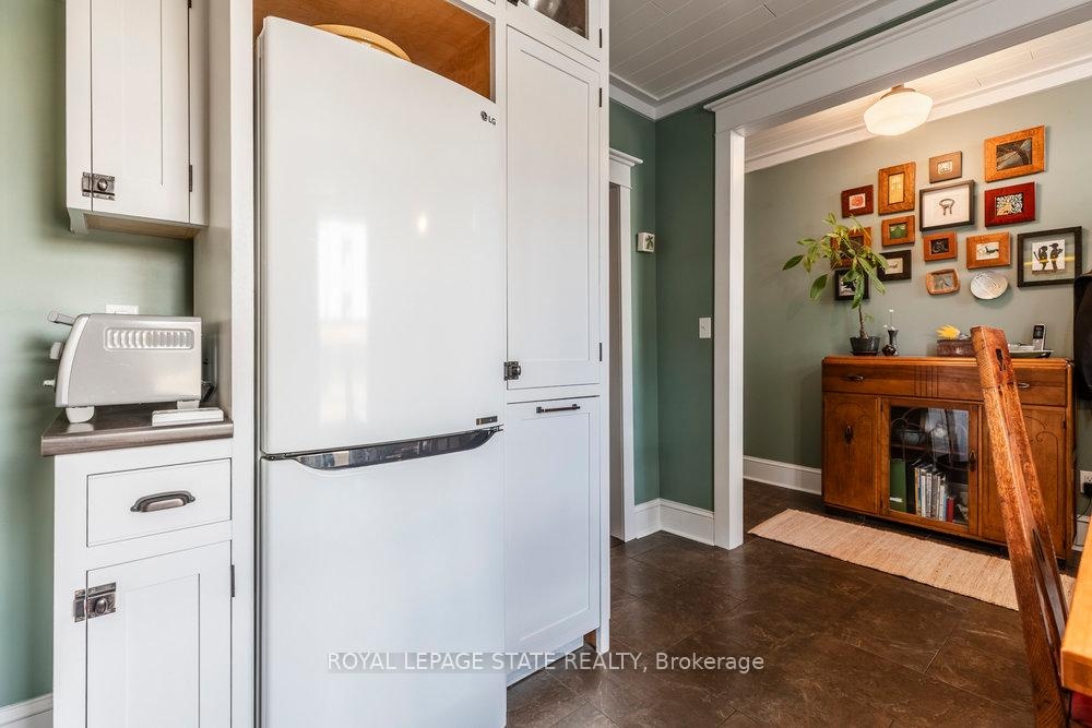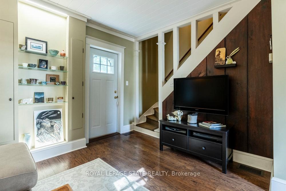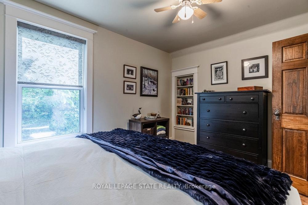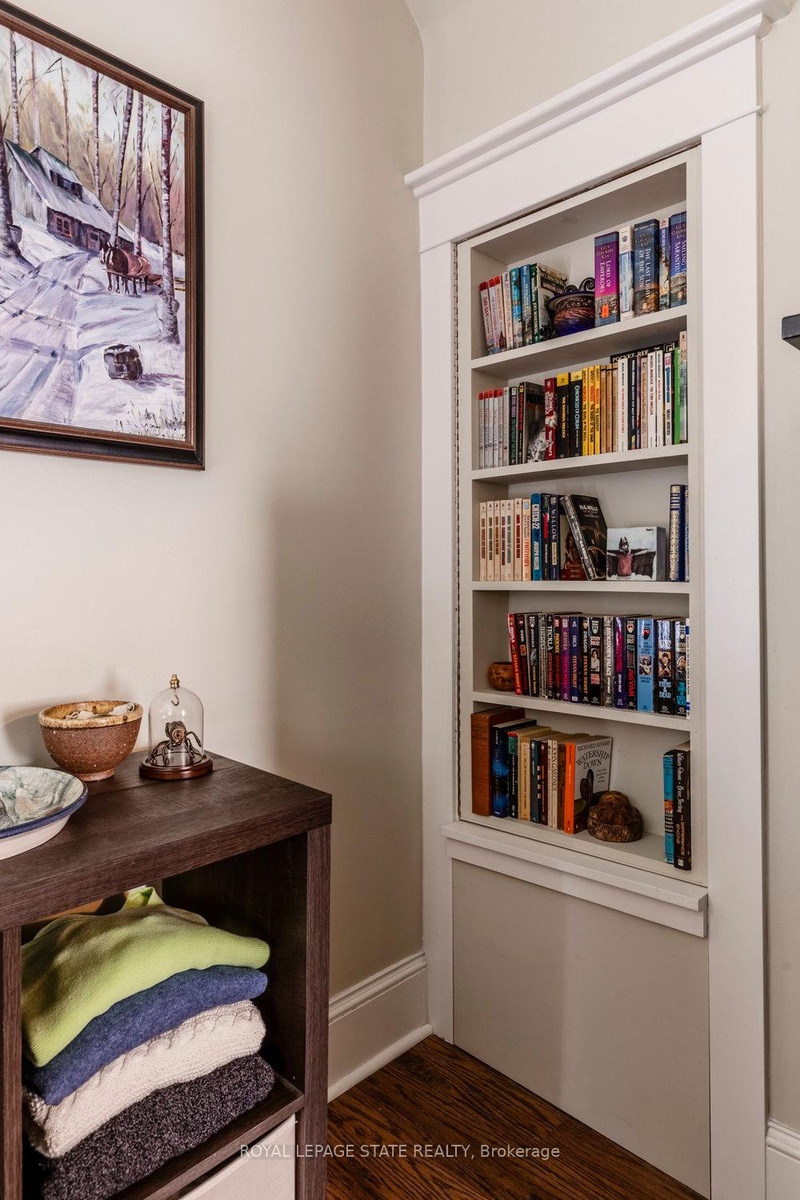 Outstanding transformation inside & out with no stone left unturned! Tucked away at the base of the escarpment, this thoughtfully renovated 2-storey, 2-bedroom, 1-bath home is full of character, creativity, and modern convenience. From its clever storage solutions to its private secret garden patio, every detail has been carefully designed to make the most of both space and style. Step inside to discover an updated kitchen thats as functional as it is beautiful, featuring built-in banquette seating with custom cushions (and hidden storage!), a pull-out butcher block for added prep space, subway tile backsplash, and generous cabinetry. The living room offers a walkout to a stunning interlock and flagstone patio a private oasis perfect for morning coffee or evening gatherings w/ built-ins & glass display shelves to add ambiance and charm. Upstairs, the primary bedroom delights with a hidden secret closet concealed behind a bookshelf, while the elegant 4-piece bathroom features a classic clawfoot tub and pedestal sink for a touch of vintage luxury. Additional highlights include two-car private parking a rare and valuable find and a unique sense of privacy and tranquility. This one-of-a-kind home offers the perfect blend of historic charm, smart updates, and whimsical details. This Corktown gem is steps to St. Jos, the GO & amenities. A must-see for those seeking something truly special.