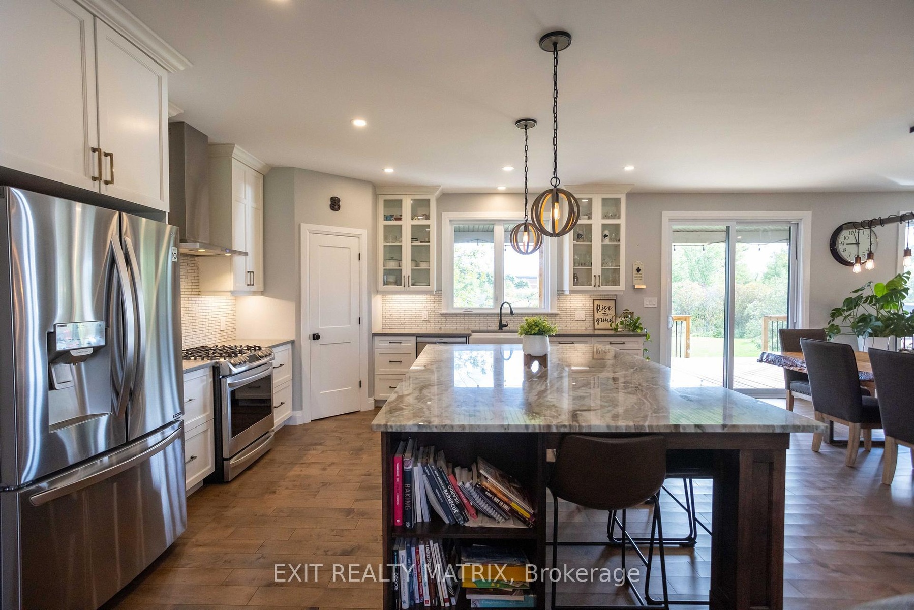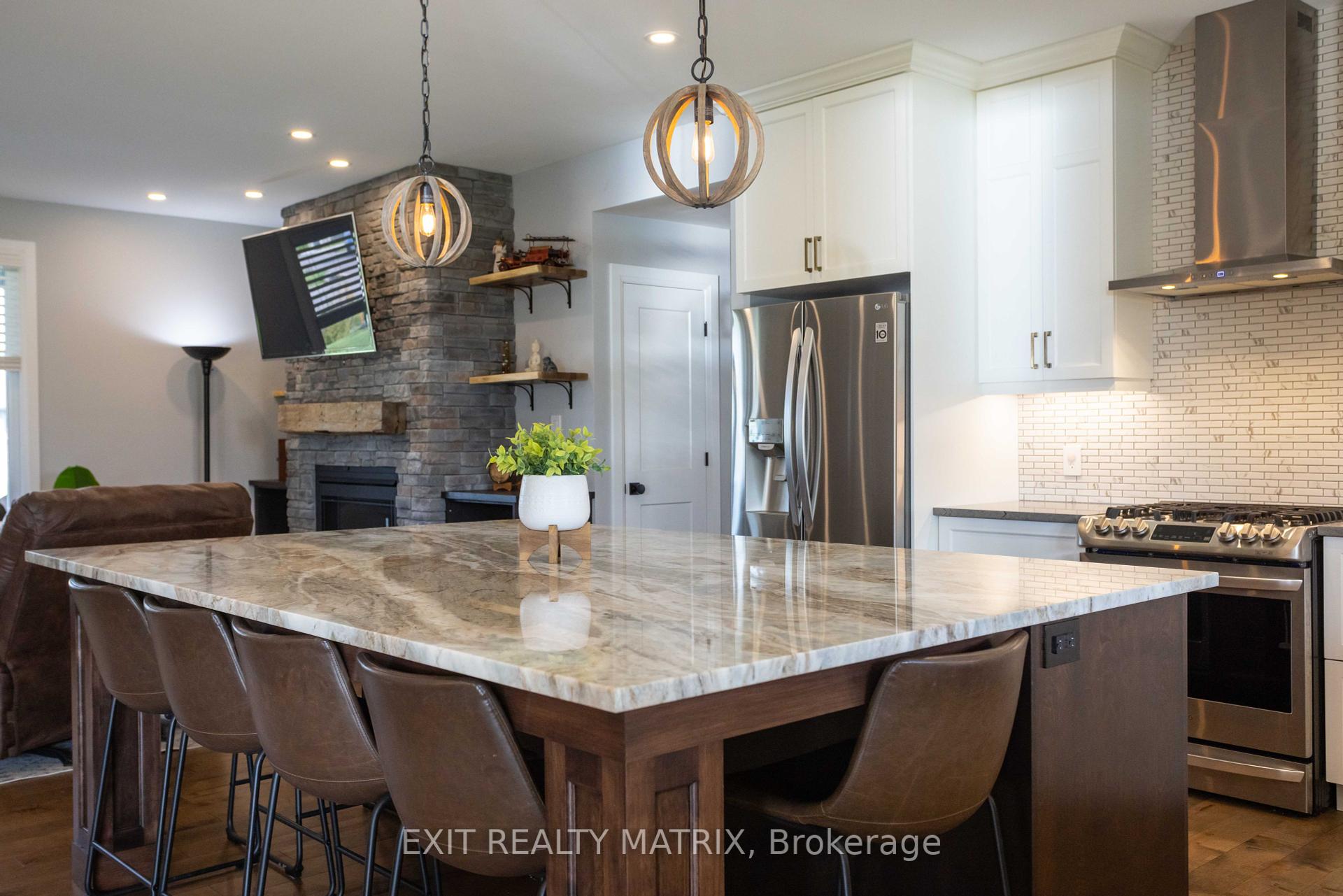Welcome to 2825 Eldo Street, a stunning 3-bed, 3-bath home designed with both comfort and flexibility in mind. Perfect for a growing family, or a couple who loves to entertain, this home blends modern finishes with practical living. Step inside to a bright, airy foyer that flows seamlessly into a true open-concept living space. The heart of the home is a spacious living room anchored by a striking stone-accented gas fireplace, ideal for cozy evenings with family or hosting guests. The kitchen is a showstopper!.. A pure Chef's delight, featuring a large island with seating for six, stainless steel appliances, a farmhouse apron sink, a walk-in pantry, and plenty of workspace for both everyday cooking and special gatherings. The thoughtful split-bedroom layout ensures privacy. On one side, you'll find the primary suite complete with a walk-in closet and spa-like ensuite featuring a luxurious walk-in shower. On the other side, two generous bedrooms share a stylish full bathroom, creating the perfect setup for children, guests, or a home office. Downstairs, the finished basement rec room offers endless potential. A large finished recreation room & office are already in place, while a bathroom rough-in makes it easy to transform the space into a private in-law suite, income property, or expanded living area. A large 3-Car Heated Garage is perfect for toys or a workshop with a direct staircase to the basement. Set in the charming village of Metcalfe, this home offers the best of both worlds, peaceful small-town living with convenient access to amenities. Just minutes from local schools, shops, parks, and recreational facilities, you'll have everything you need nearby. For commuters, downtown Ottawa is less than 30 minutes away, making it easy to balance country-style tranquility with city convenience. Stylish, functional, and full of future potential, 2825 Eldo Street is ready to welcome its next chapter. Don't miss the chance to call this beautiful property home.