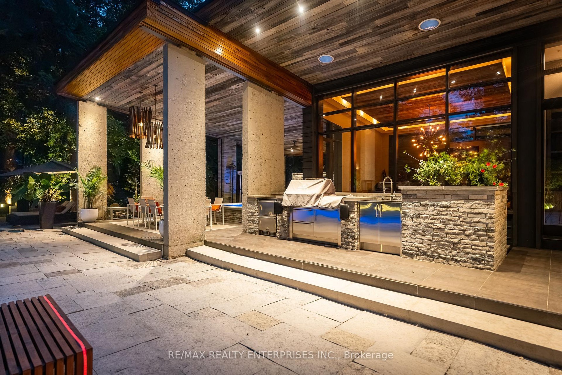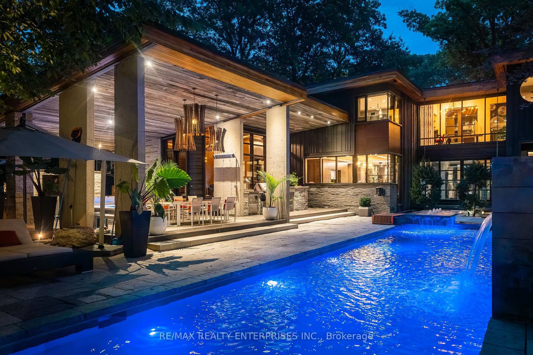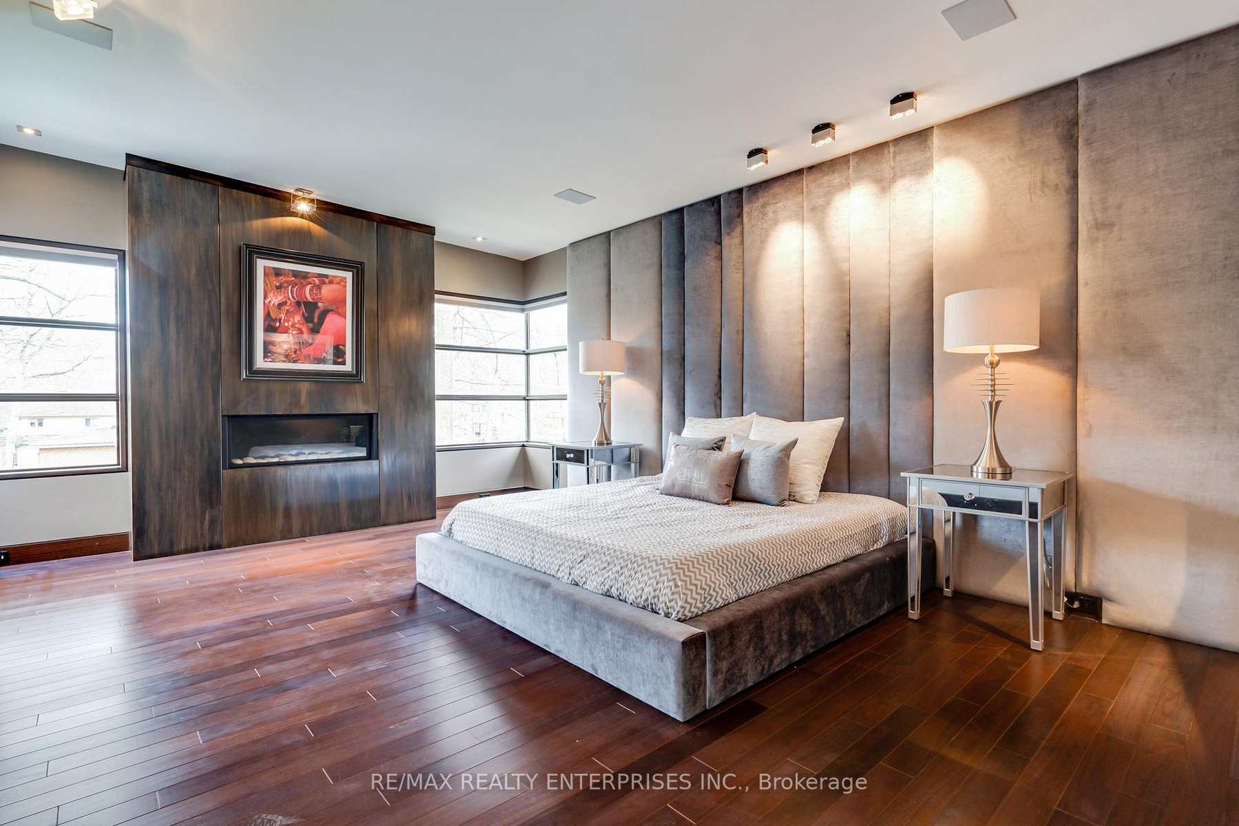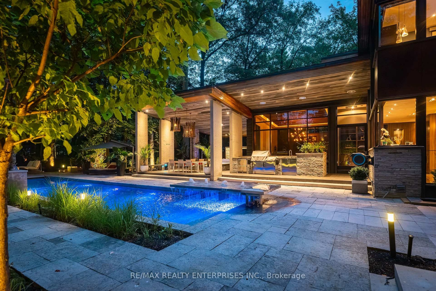 An Unparalleled Masterpiece Of Design & Luxury Located In Highly Coveted Mineola West. This Extraordinary, Detached Home Offers Approx 10,000 Sqft. Blending Architectural Innovation By Dochia Design W/ The Refined Interiors Of Fleur De Lis. Built by Easton Homes W/ Construction Cost Of $6.5M (not including land cost) Plus Over $2M In Owner Upgrades, The Home Exudes Sophistication, From Soaring 9 -14 Ft Ceilngs & Flr-To-Ceil Windows To Multiple W/Os That Connect The Interior W/ Its Serene Surroundings. The Main Level Welcomes You W/ A Grand Foyer Featuring A Free-Floating Staircase W/ Shattered Glass Panels, Porcelain Flrs & Massive Sliding Doors Leading To The Bkyd Oasis. Sunken Living & Dining Rooms Showcase Coffered Ceils, Gas F/P, Backlit Onyx Walls, Exposed Brick Accents & Custom B/I Cabinetry, While The Chefs Scavolini Kitchen Impresses W/ Red Iron Marble Countertops, Top Miele Appls, A Lrg Centre Island & Abundant Cabinetry. The Family Room Offers An Indoor-Outdoor Transition W/ Flr-To-Ceil Windows Overlooking The Terrace & Pool, A Linear Gas F/P & Advanced Sound System. 5 Luxurious Bdrms Plus A Nanny/In-Law Suite Ensure Comfort For The Entire Family. The Primary Suite Is A Private Retreat W/ A Corner F/P, Expansive Windows, A Custom W/I Closet & A Spa-Inspired 5-Pc Ensuite Featuring A Deep Soaker Tub, Curbless Walk-In Shower & Dornbracht Fixtures. Addnl Bdrms Each Feature Ensuite Baths & Bespoke Storage. The Lower Lvl Is A Resort-Style Haven, Incl A Home Theatre W/ Atmos Surround Sound, Rec Room W/ Onyx Wet Bar, Gym, Massage & Spa Area & Hidden Panic Room. Every Detail, From Radiant Heated Flrs & Motion-Activated Staircase Lighting To Integrated Leutron & Control 4 Automation, Ensures Comfort & Convenience. Outdoors, The Property Is A Private Sanctuary. A Gunite Saltwater Pool, HotTub W/ Fire Table, Waterfalls, 4 Heated Ponds W/ Koi, Custom Play Area, Outdoor Kitchen, Zen Garden & Multiple Terraces Create A Resort-Style Environment & Offer Exceptional Privacy