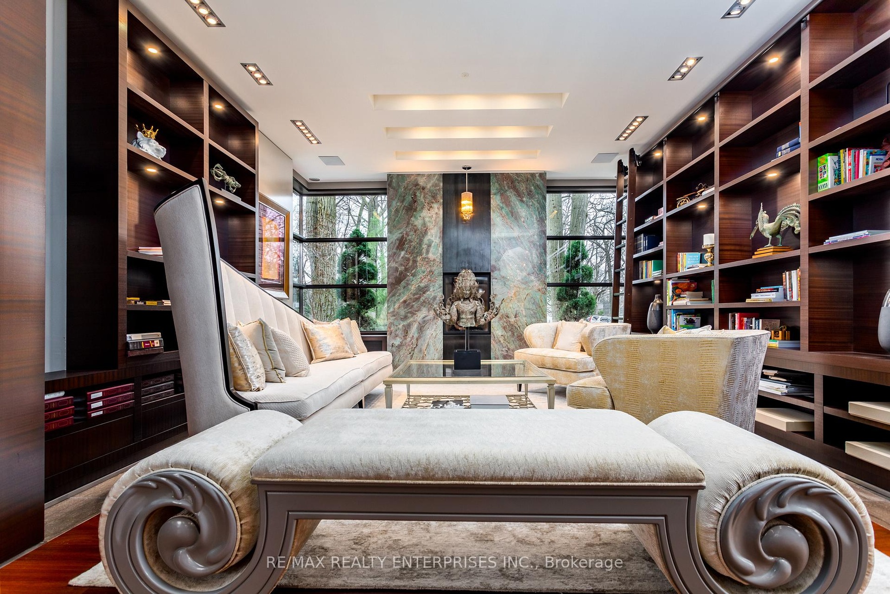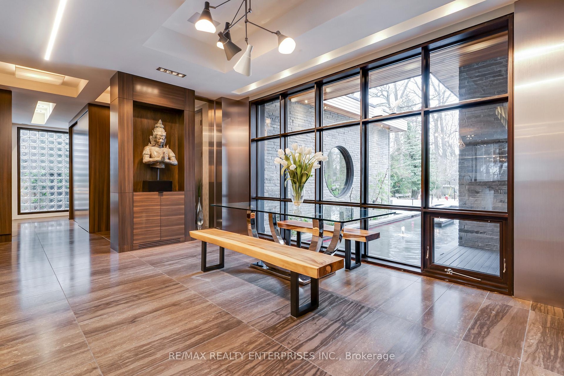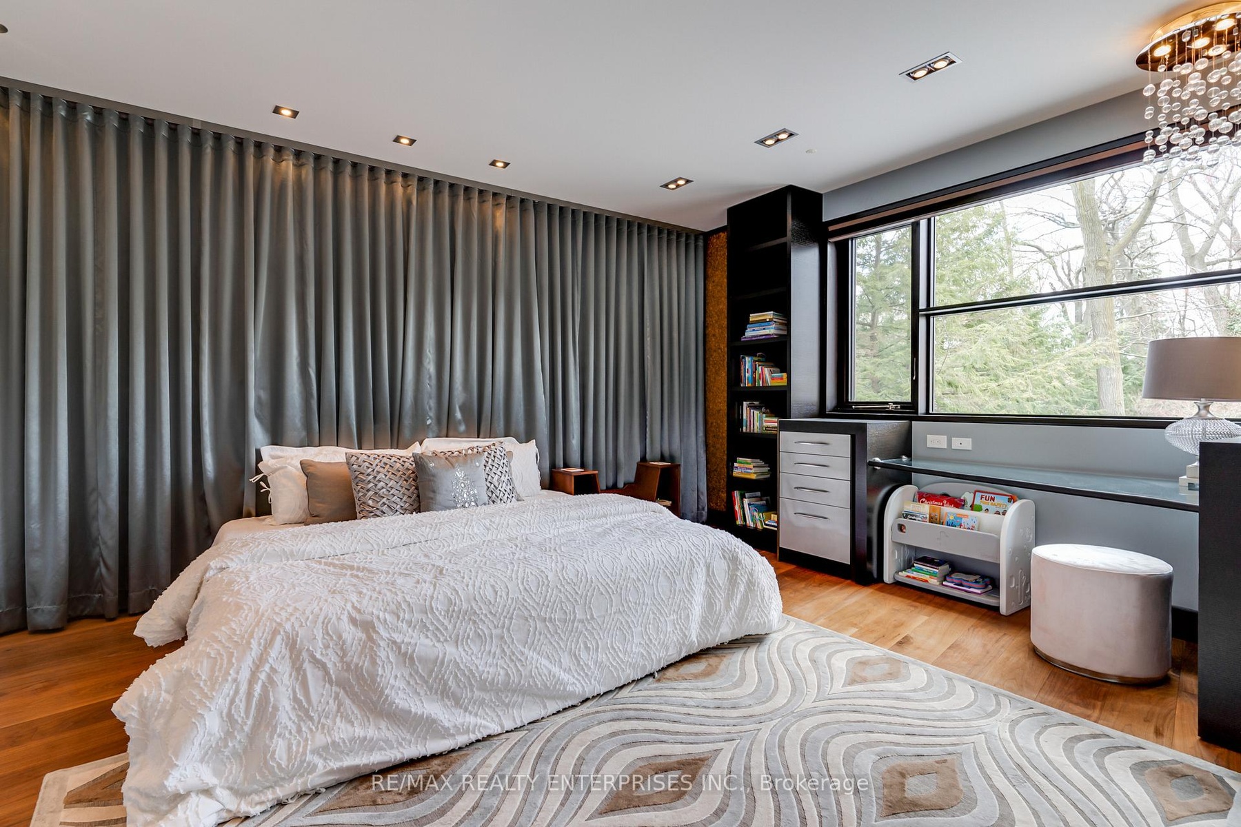 An Unparalleled Masterpiece Of Design & Luxury Located In Highly Coveted Mineola West. This Extraordinary, Detached Home Offers Approx 10,000 Sqft. Blending Architectural Innovation By Dochia Design W/ The Refined Interiors Of Fleur De Lis. Built by Easton Homes W/ Construction Cost Of $6.5M (not including land cost) Plus Over $2M In Owner Upgrades, The Home Exudes Sophistication, From Soaring 9 -14 Ft Ceilngs & Flr-To-Ceil Windows To Multiple W/Os That Connect The Interior W/ Its Serene Surroundings. The Main Level Welcomes You W/ A Grand Foyer Featuring A Free-Floating Staircase W/ Shattered Glass Panels, Porcelain Flrs & Massive Sliding Doors Leading To The Bkyd Oasis. Sunken Living & Dining Rooms Showcase Coffered Ceils, Gas F/P, Backlit Onyx Walls, Exposed Brick Accents & Custom B/I Cabinetry, While The Chefs Scavolini Kitchen Impresses W/ Red Iron Marble Countertops, Top Miele Appls, A Lrg Centre Island & Abundant Cabinetry. The Family Room Offers An Indoor-Outdoor Transition W/ Flr-To-Ceil Windows Overlooking The Terrace & Pool, A Linear Gas F/P & Advanced Sound System. 5 Luxurious Bdrms Plus A Nanny/In-Law Suite Ensure Comfort For The Entire Family. The Primary Suite Is A Private Retreat W/ A Corner F/P, Expansive Windows, A Custom W/I Closet & A Spa-Inspired 5-Pc Ensuite Featuring A Deep Soaker Tub, Curbless Walk-In Shower & Dornbracht Fixtures. Addnl Bdrms Each Feature Ensuite Baths & Bespoke Storage. The Lower Lvl Is A Resort-Style Haven, Incl A Home Theatre W/ Atmos Surround Sound, Rec Room W/ Onyx Wet Bar, Gym, Massage & Spa Area & Hidden Panic Room. Every Detail, From Radiant Heated Flrs & Motion-Activated Staircase Lighting To Integrated Leutron & Control 4 Automation, Ensures Comfort & Convenience. Outdoors, The Property Is A Private Sanctuary. A Gunite Saltwater Pool, HotTub W/ Fire Table, Waterfalls, 4 Heated Ponds W/ Koi, Custom Play Area, Outdoor Kitchen, Zen Garden & Multiple Terraces Create A Resort-Style Environment & Offer Exceptional Privacy