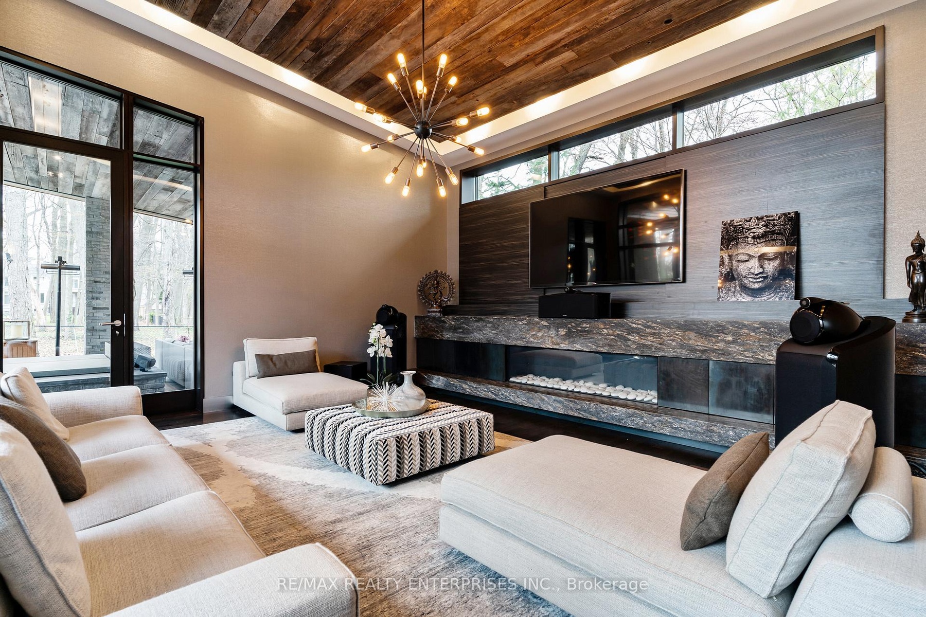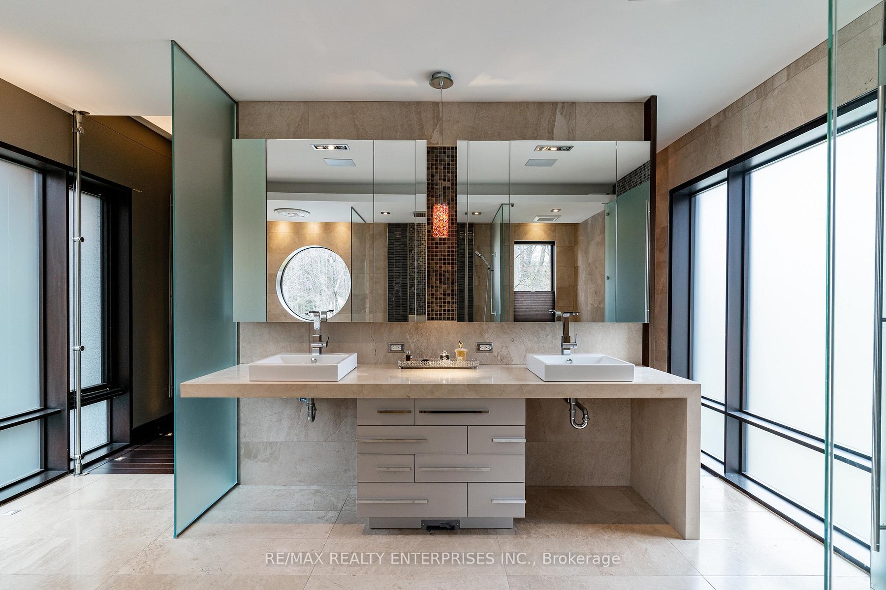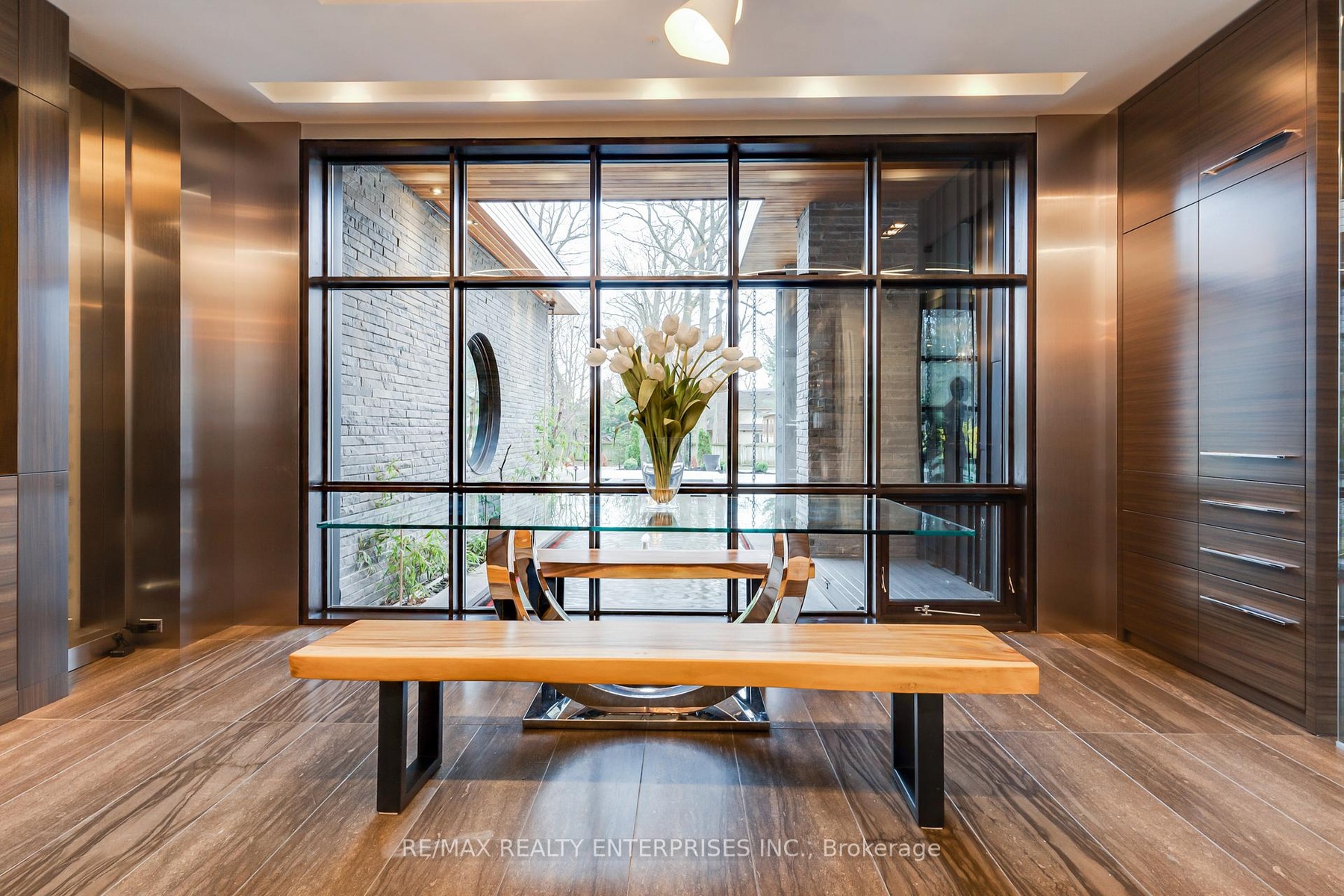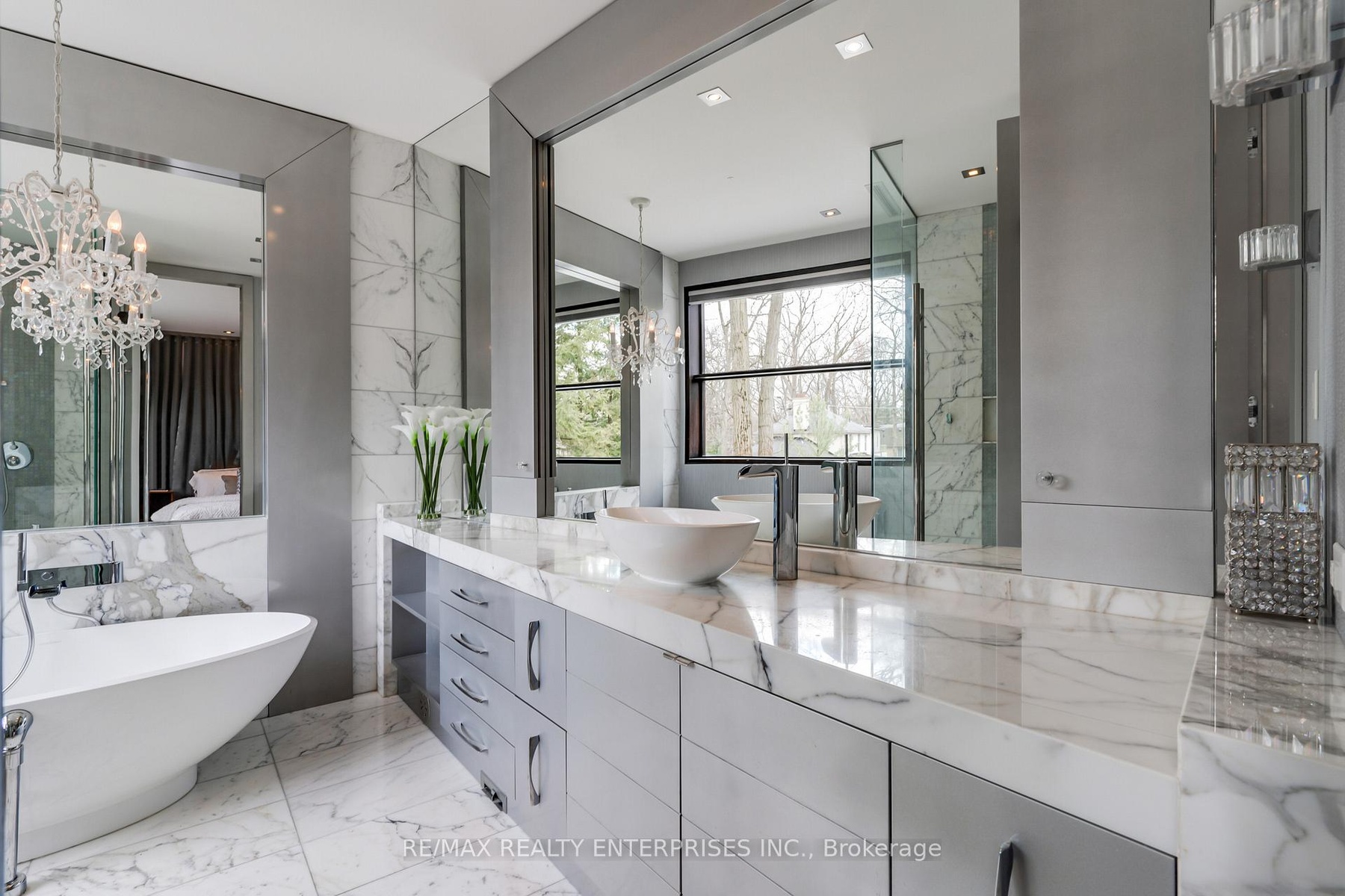 An Unparalleled Masterpiece Of Design & Luxury Located In Highly Coveted Mineola West. This Extraordinary, Detached Home Offers Approx 10,000 Sqft. Blending Architectural Innovation By Dochia Design W/ The Refined Interiors Of Fleur De Lis. Built by Easton Homes W/ Construction Cost Of $6.5M (not including land cost) Plus Over $2M In Owner Upgrades, The Home Exudes Sophistication, From Soaring 9 -14 Ft Ceilngs & Flr-To-Ceil Windows To Multiple W/Os That Connect The Interior W/ Its Serene Surroundings. The Main Level Welcomes You W/ A Grand Foyer Featuring A Free-Floating Staircase W/ Shattered Glass Panels, Porcelain Flrs & Massive Sliding Doors Leading To The Bkyd Oasis. Sunken Living & Dining Rooms Showcase Coffered Ceils, Gas F/P, Backlit Onyx Walls, Exposed Brick Accents & Custom B/I Cabinetry, While The Chefs Scavolini Kitchen Impresses W/ Red Iron Marble Countertops, Top Miele Appls, A Lrg Centre Island & Abundant Cabinetry. The Family Room Offers An Indoor-Outdoor Transition W/ Flr-To-Ceil Windows Overlooking The Terrace & Pool, A Linear Gas F/P & Advanced Sound System. 5 Luxurious Bdrms Plus A Nanny/In-Law Suite Ensure Comfort For The Entire Family. The Primary Suite Is A Private Retreat W/ A Corner F/P, Expansive Windows, A Custom W/I Closet & A Spa-Inspired 5-Pc Ensuite Featuring A Deep Soaker Tub, Curbless Walk-In Shower & Dornbracht Fixtures. Addnl Bdrms Each Feature Ensuite Baths & Bespoke Storage. The Lower Lvl Is A Resort-Style Haven, Incl A Home Theatre W/ Atmos Surround Sound, Rec Room W/ Onyx Wet Bar, Gym, Massage & Spa Area & Hidden Panic Room. Every Detail, From Radiant Heated Flrs & Motion-Activated Staircase Lighting To Integrated Leutron & Control 4 Automation, Ensures Comfort & Convenience. Outdoors, The Property Is A Private Sanctuary. A Gunite Saltwater Pool, HotTub W/ Fire Table, Waterfalls, 4 Heated Ponds W/ Koi, Custom Play Area, Outdoor Kitchen, Zen Garden & Multiple Terraces Create A Resort-Style Environment & Offer Exceptional Privacy