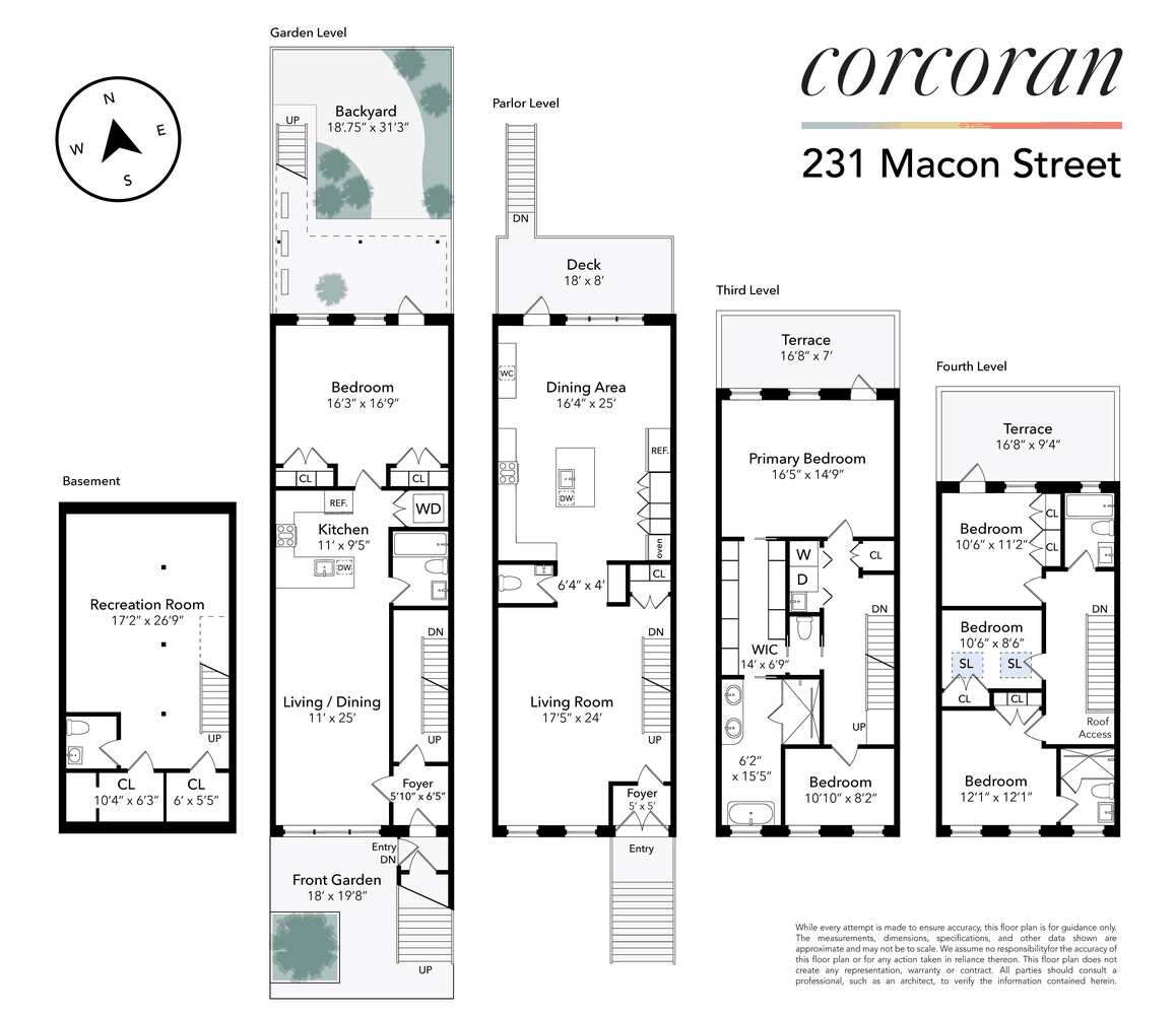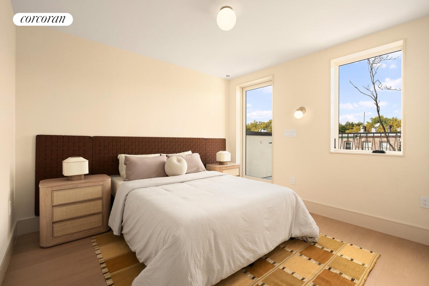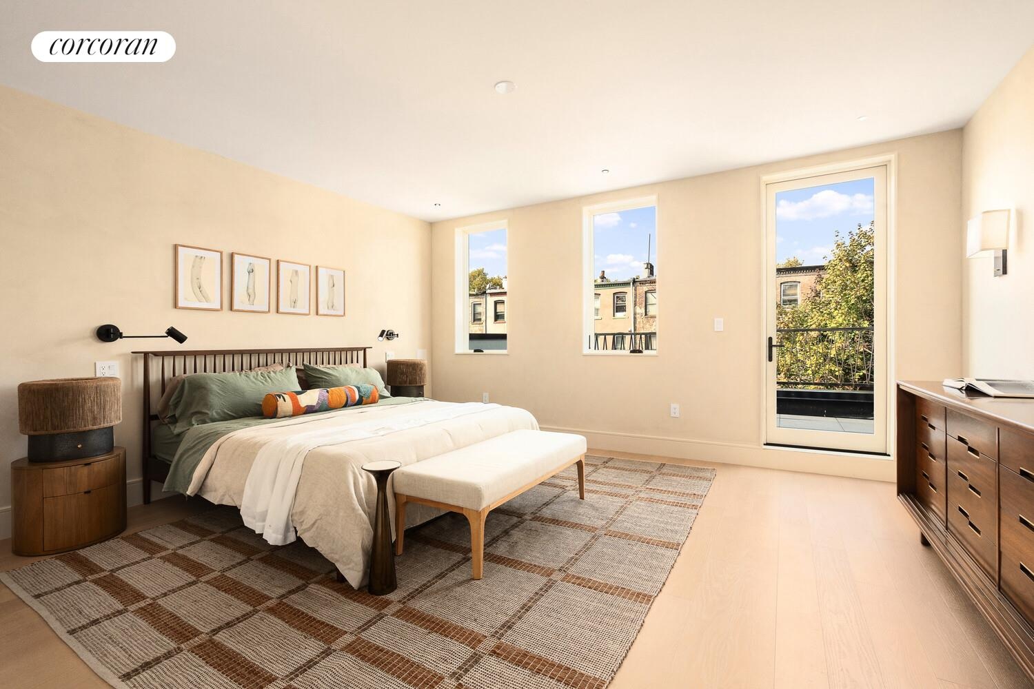 DescriptionWelcome to 231 Macon Street, a custom-crafted two-family townhouse on a tree-lined block in Bedford-Stuyvesant, distinguished by its red brick facade, elegant black cornice, and landscaped, irrigated front yard. Beyond a vestibule with mosaic terrazzo floors and striking double doors, the parlor level stretches 55 feet deep with wide-plank white oak floors, lime-washed walls, and designer lighting.