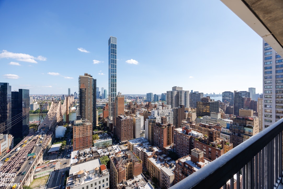 Walls of glass frame panoramic views across the ever-changing East Side skyline, creating a home of many moods and scenes. With balconies on both sides of the apartment, the vistas can be enjoyed from the outdoors as well. As Dezeen observed in its feature on the residence, the architects sought "a balance between the feeling of being in the air, while being grounded by the weight of the building."