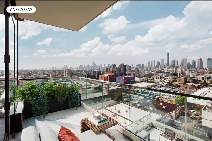 Northwestern Facing, Limited-Edition Designer Corner Penthouse two bedroom/2 bath with a massive private balcony, boasting panoramic views of Park Slope Lower Manhattan, Downtown Brooklyn and NY Harbor.