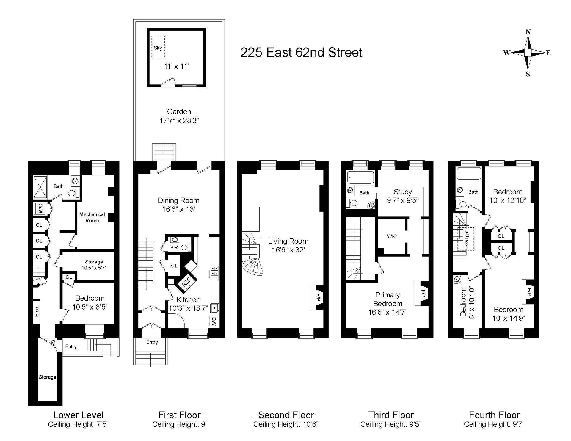 The façade of 225 retains much of the original integrity of its formal French Second Empire style and has been lovingly renovated and maintained with its original four-step stoop, lovely wrought-iron railings, and added Juliette balcony. Blending historic charm with modern living, the interior measures nearly 18’ wide spread across four stories plus a finished English Basement. The finished house depth of 34’ ensures that radiant southern sunlight floods each floor of this home throughout the day. Encompassing a total of approximately 2,850 square feet, this townhouse consists of 4 bedrooms, one home office, one study, 3 full bathrooms, one powder room, and a Studio/Carriage House.
