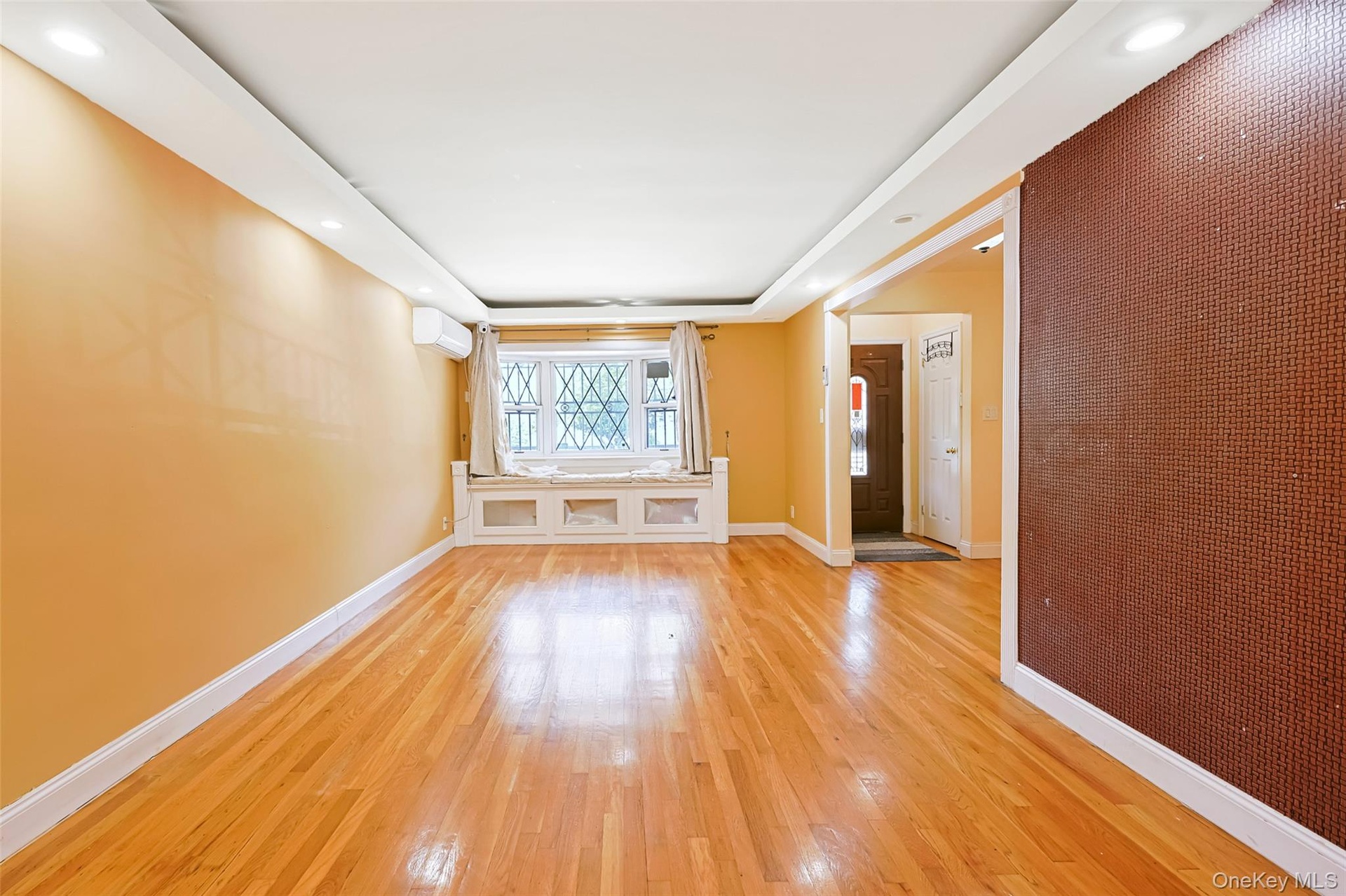 - Spare room with recessed lighting, light wood-style floors, a raised ceiling, and a wall unit AC