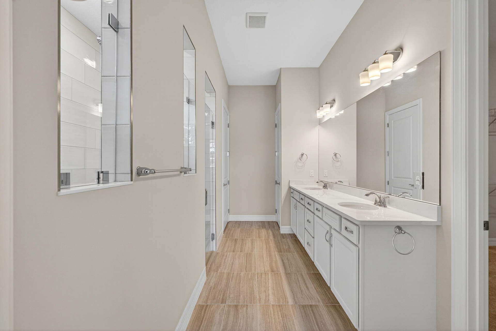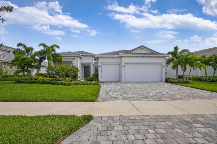 Stunning 3BR/4BA home on an extra-wide 90' premium lot with spectacular water, fountain, park & bridge views! This beautifully upgraded home features a 3-car garage with 4' extension, corner glass rear sliders, and a Coastal elevation. Interior upgrades include a flex/bonus room with double glass French doors, cabana bath, walk-in double shower in the primary suite, and upgraded flooring (porcelain, wood, carpet). Designer kitchen and baths feature upgraded cabinets, countertops, tile, backsplash, hardware & appliances. Additional highlights: upgraded lighting, tankless water heater. Rare opportunity for luxury, space & views in one exceptional property. Avenir offers upscale amenities, incl. pools/spa/waterpark, kids club, fitness center, tennis, pickleball, clubhouse, walking trails.